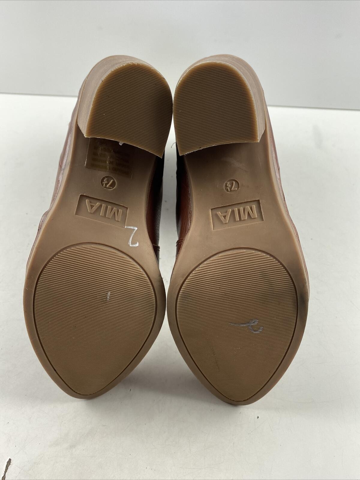 MIA ‘RAYLIN’ Brown Faux Leather Round Toe Pull On Block Heel Boots Women’s 7.5 M