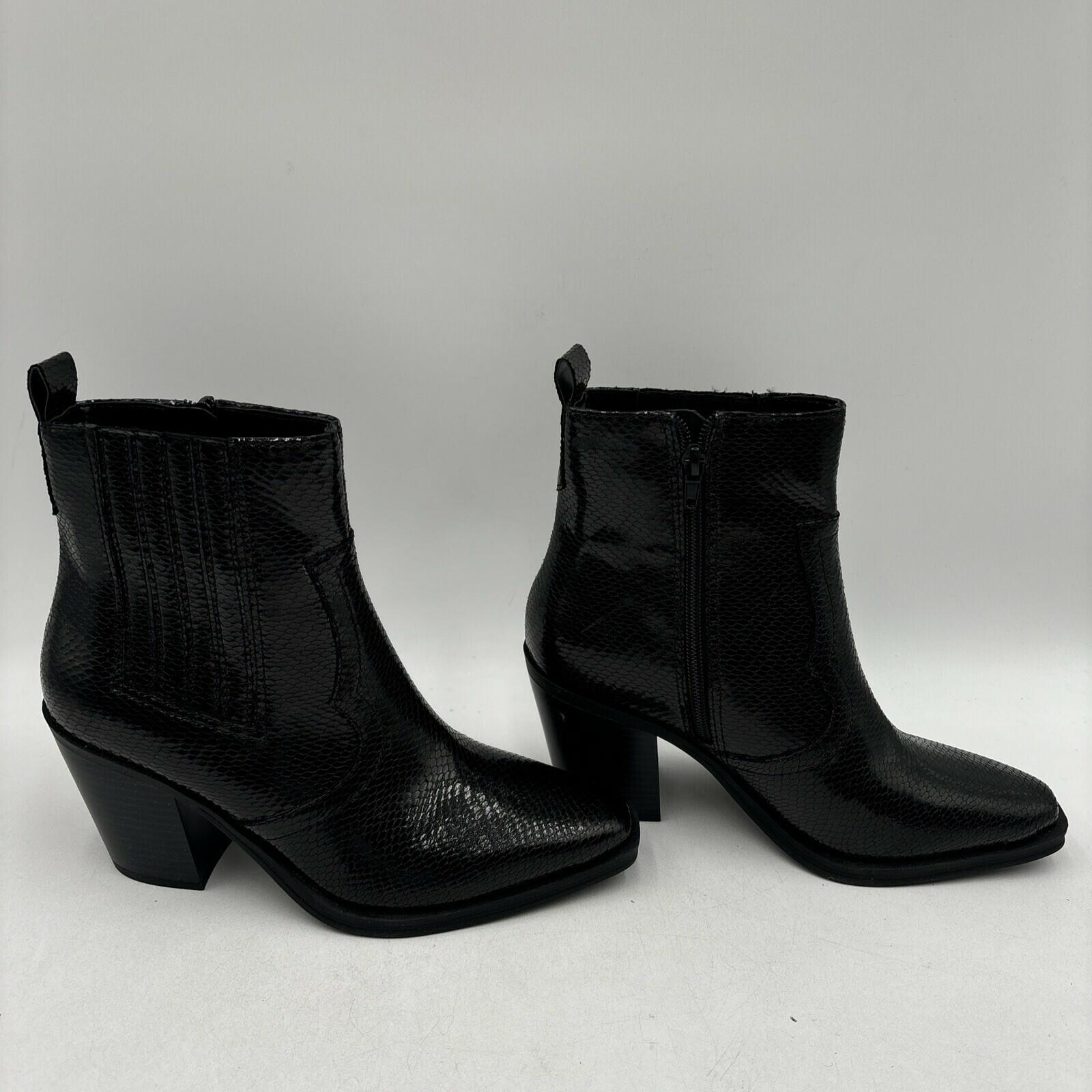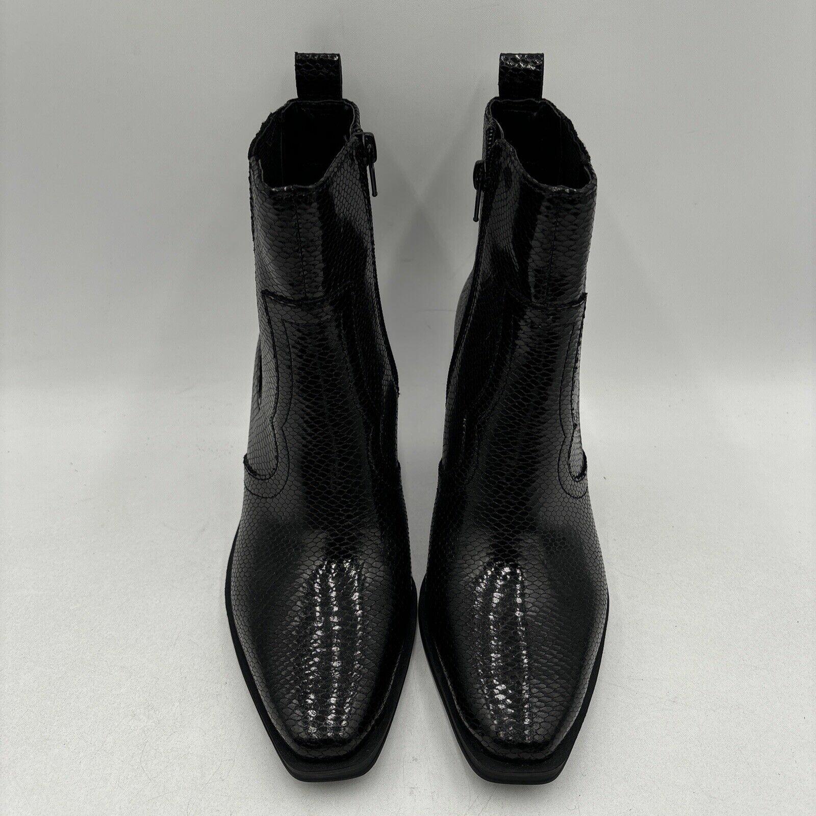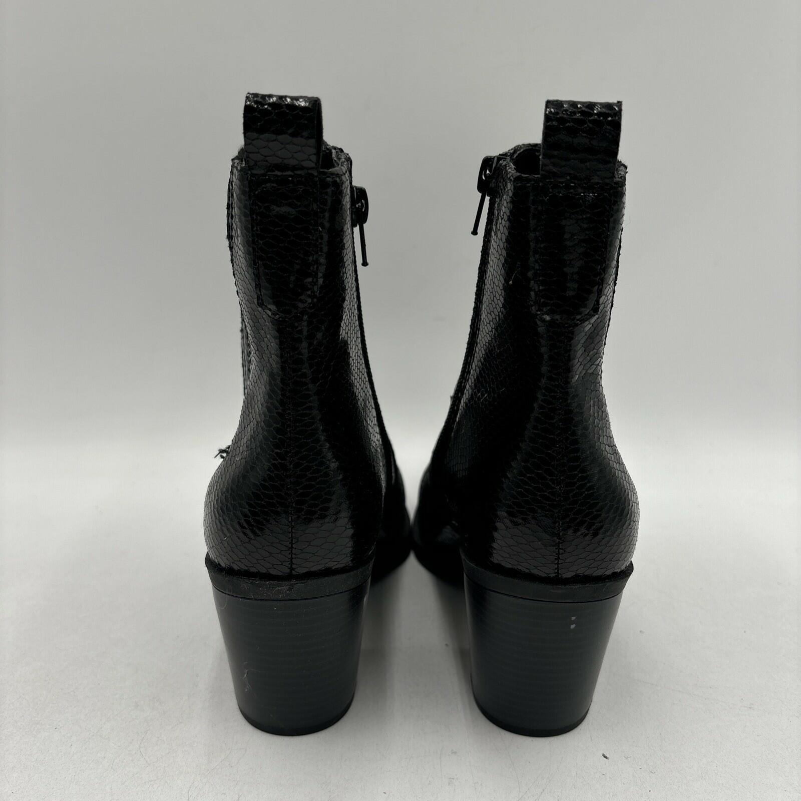 Mix No. 6 EVYLIN Black Embossed Synthetic Square Toe Side Zip Ankle Boots, 8.5M - Very Good