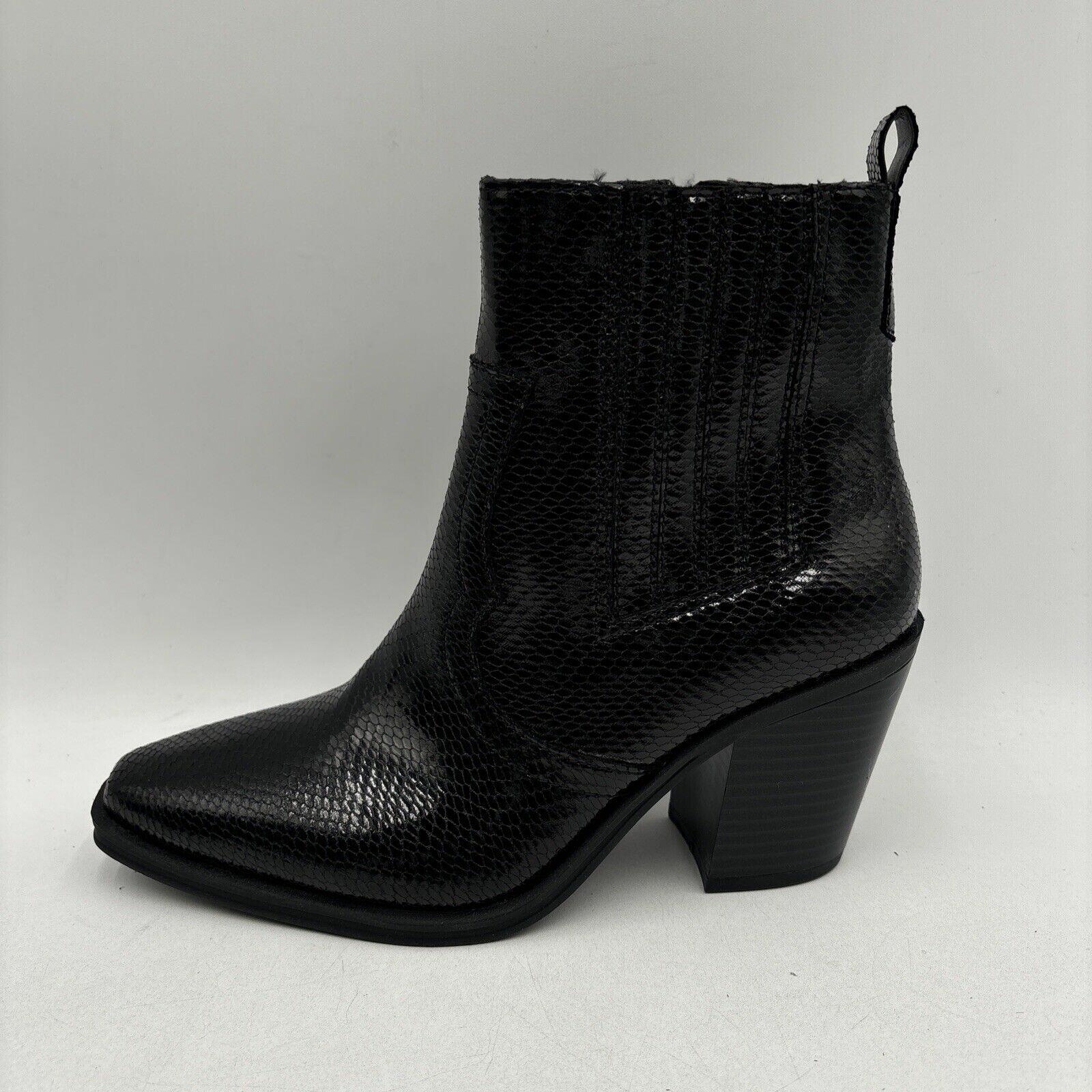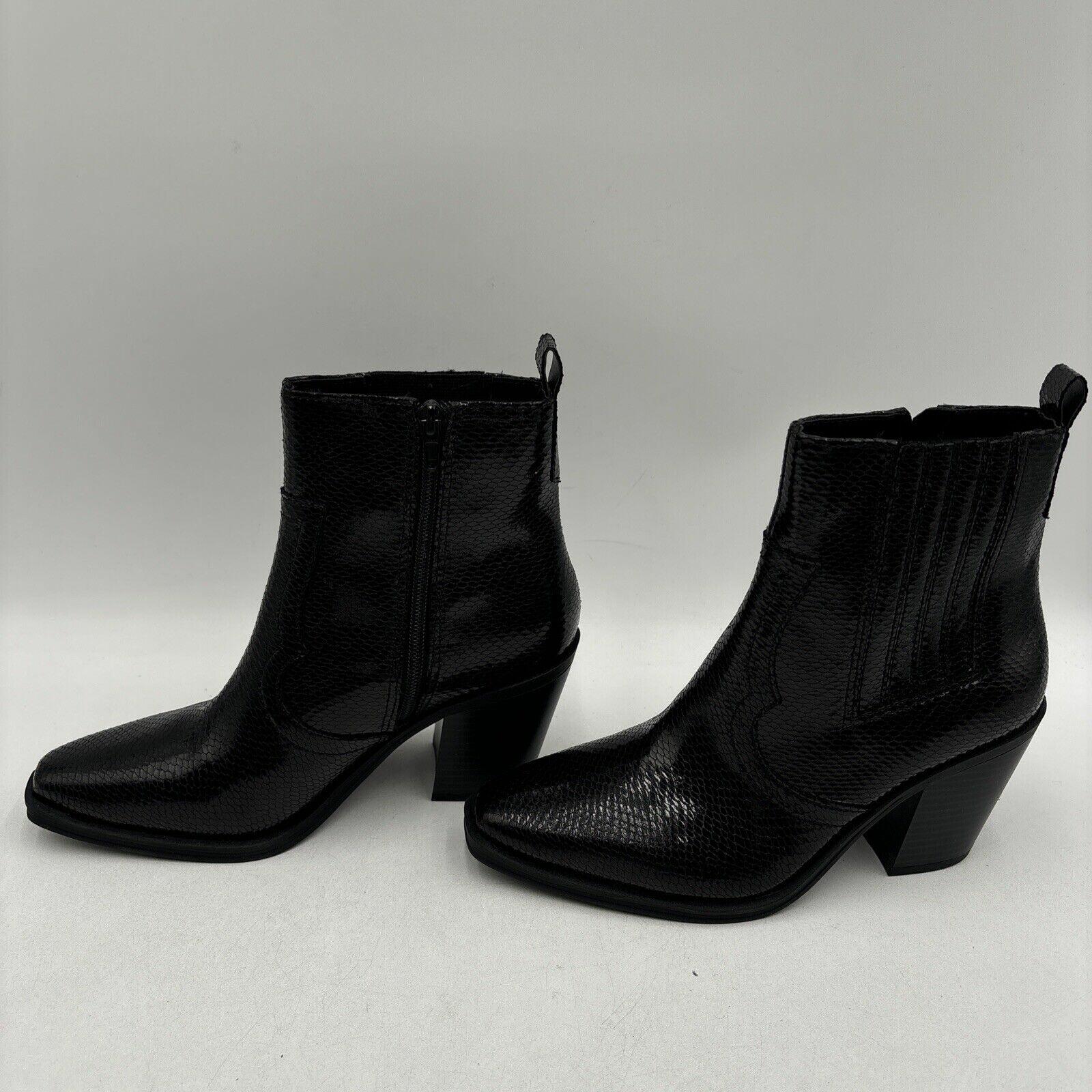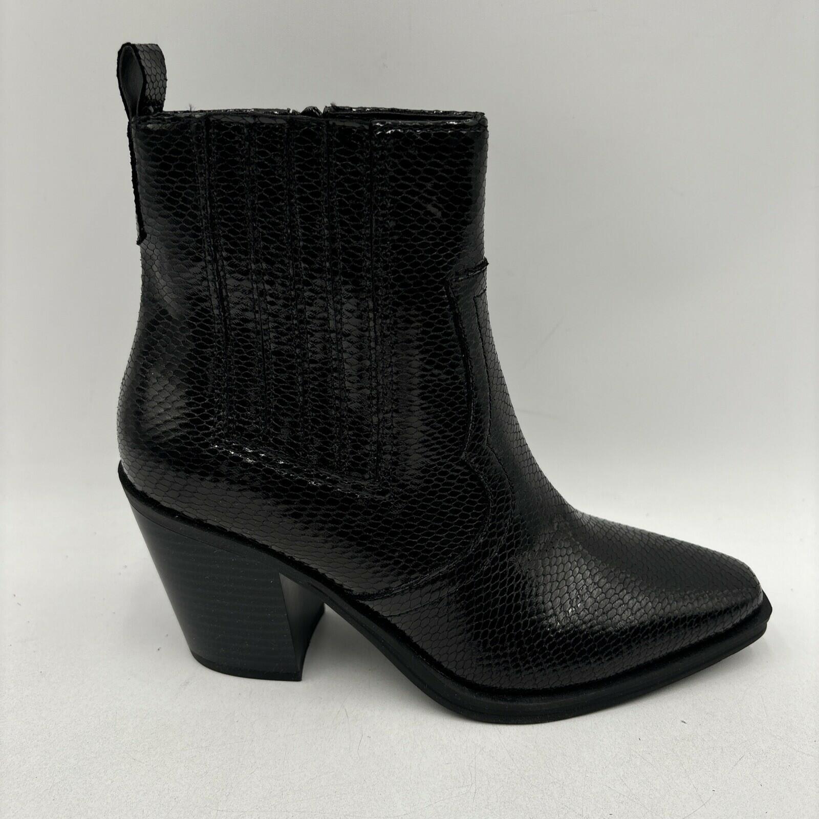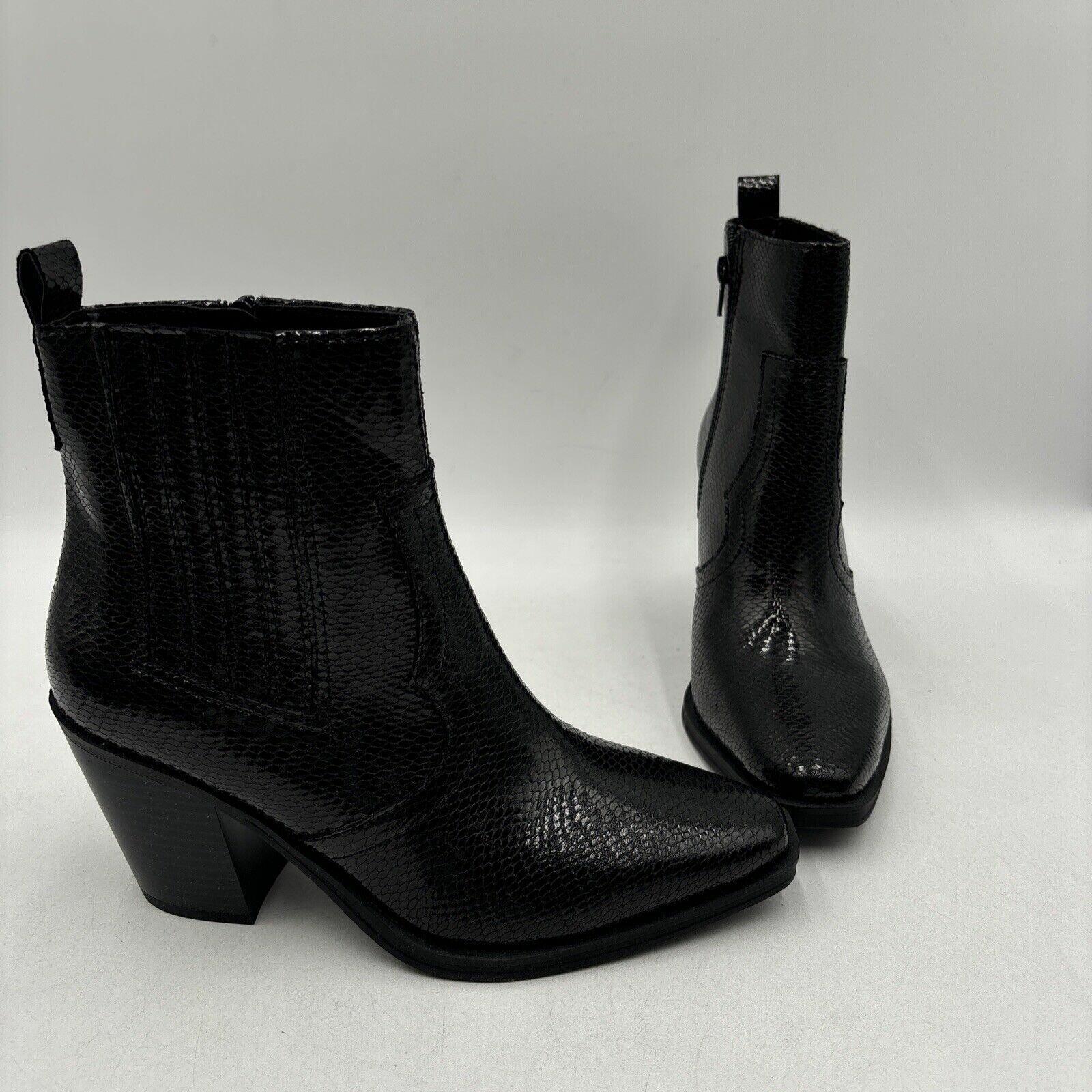 Mix No. 6 EVYLIN Black Embossed Synthetic Square Toe Side Zip Ankle Boots, 8.5M - Very Good