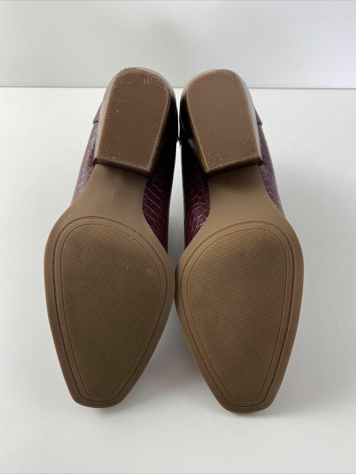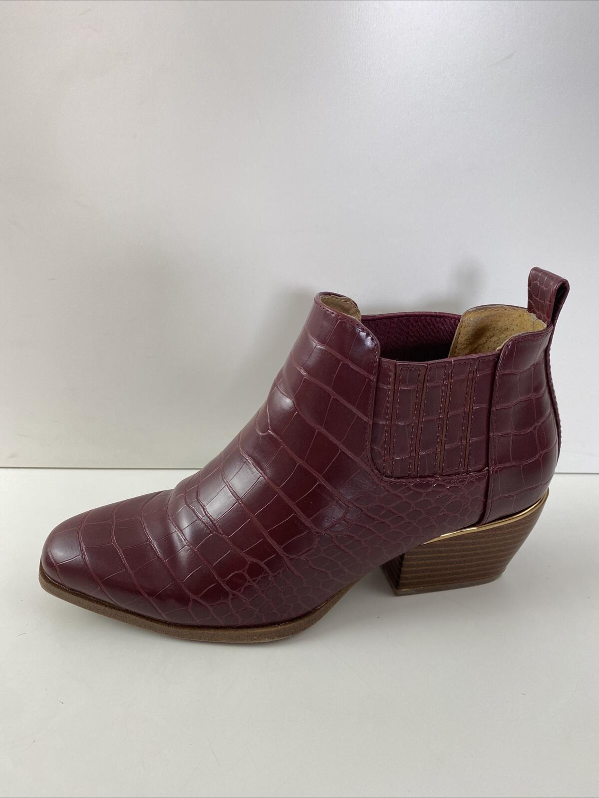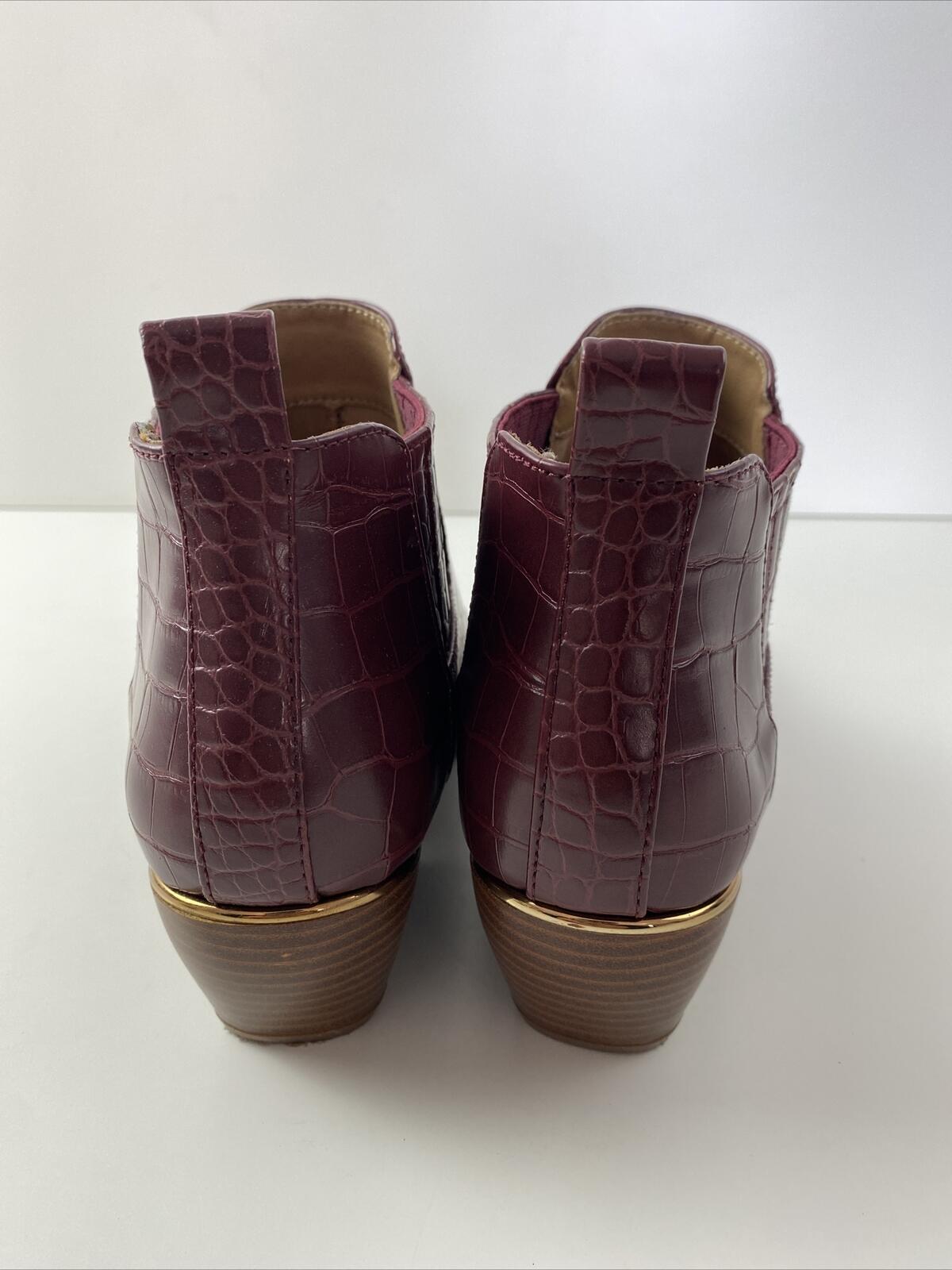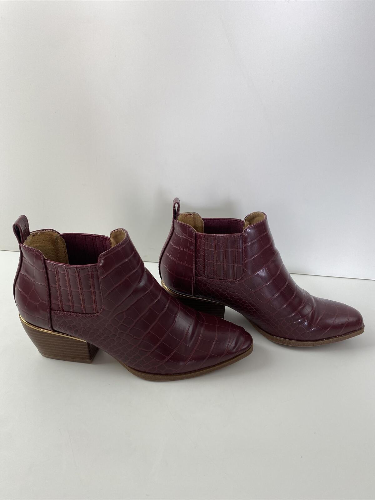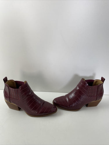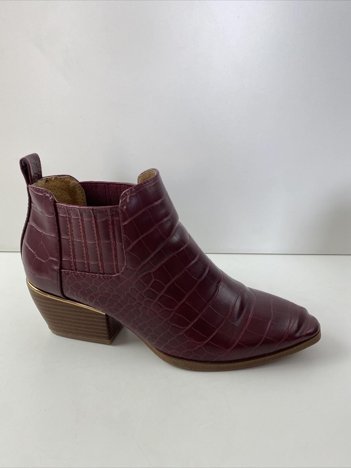 New Directions EDIE Red Croc Print Faux Leather Zip Block Heel Ankle Boots 7.5 M