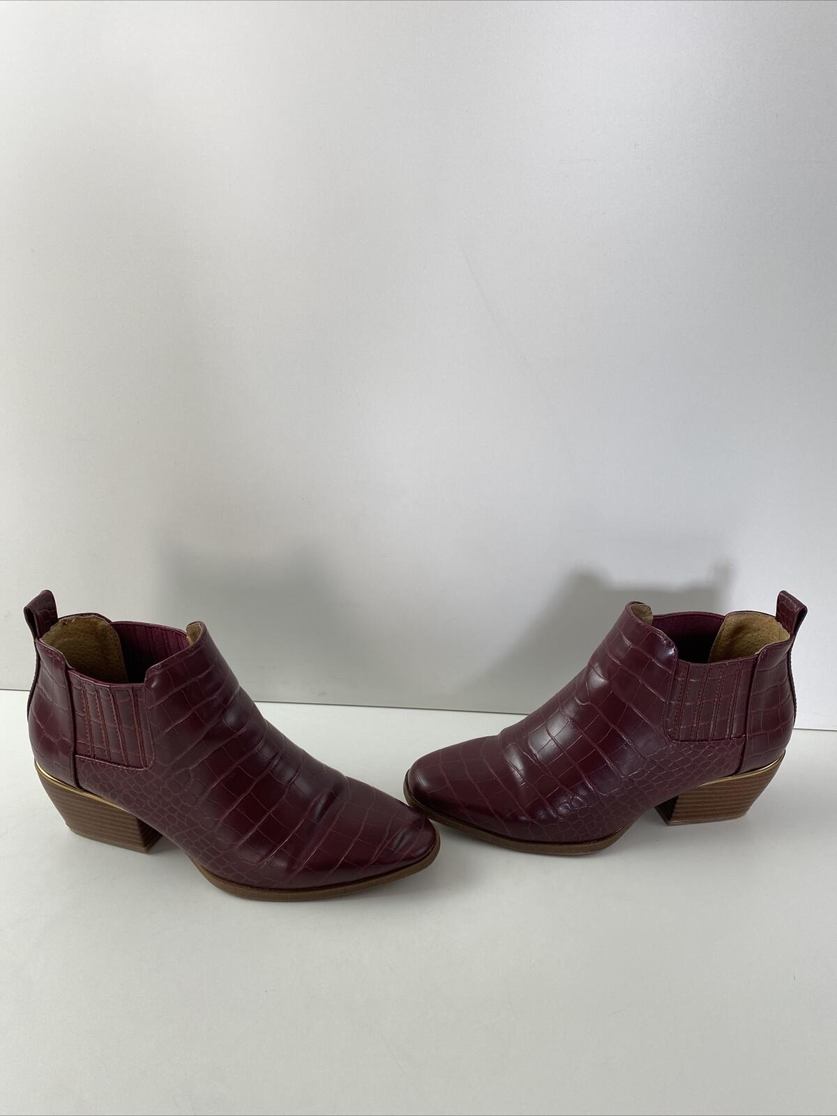 New Directions EDIE Red Croc Print Faux Leather Zip Block Heel Ankle Boots 7.5 MThe Ankle boots are in good condition