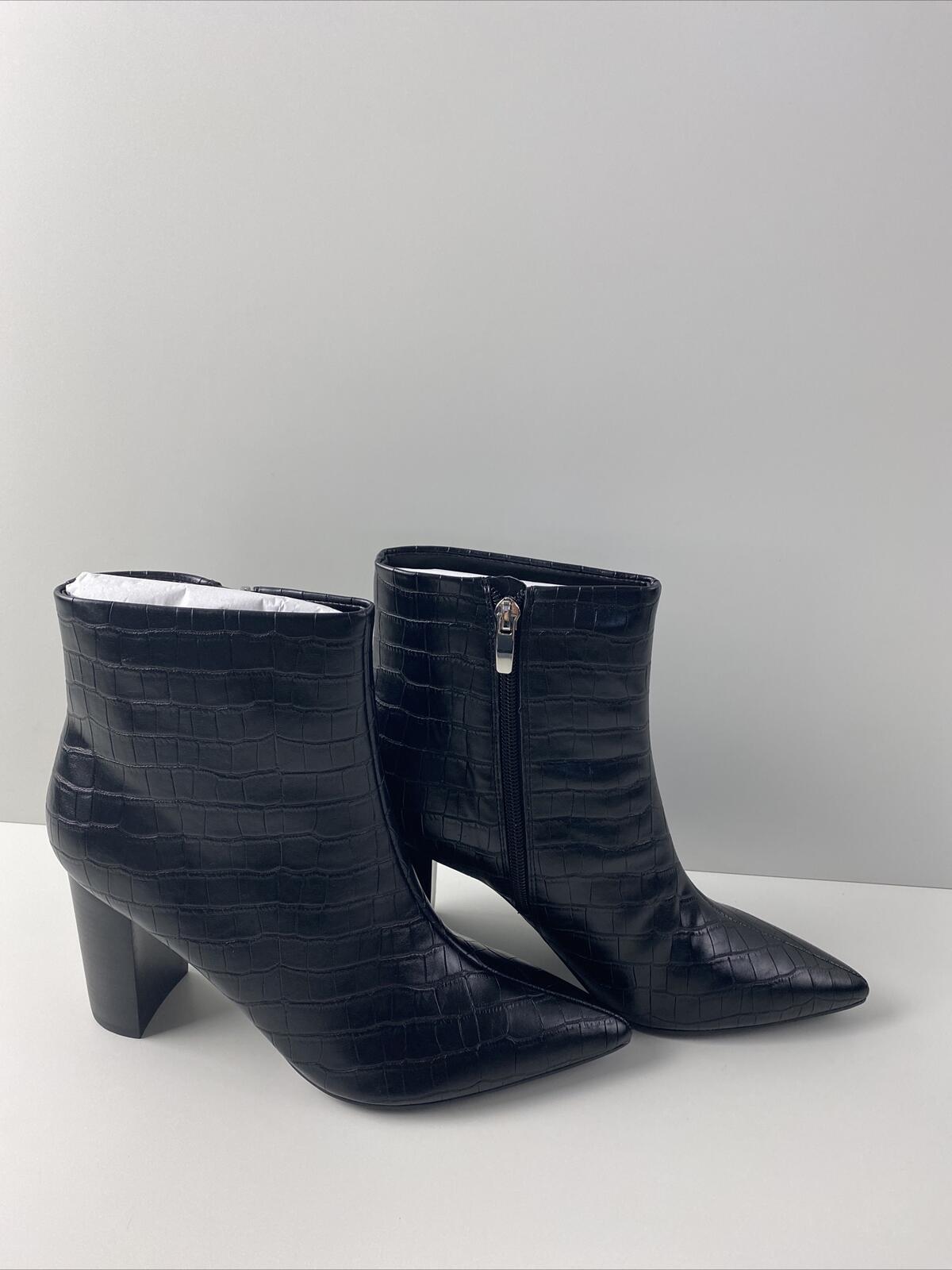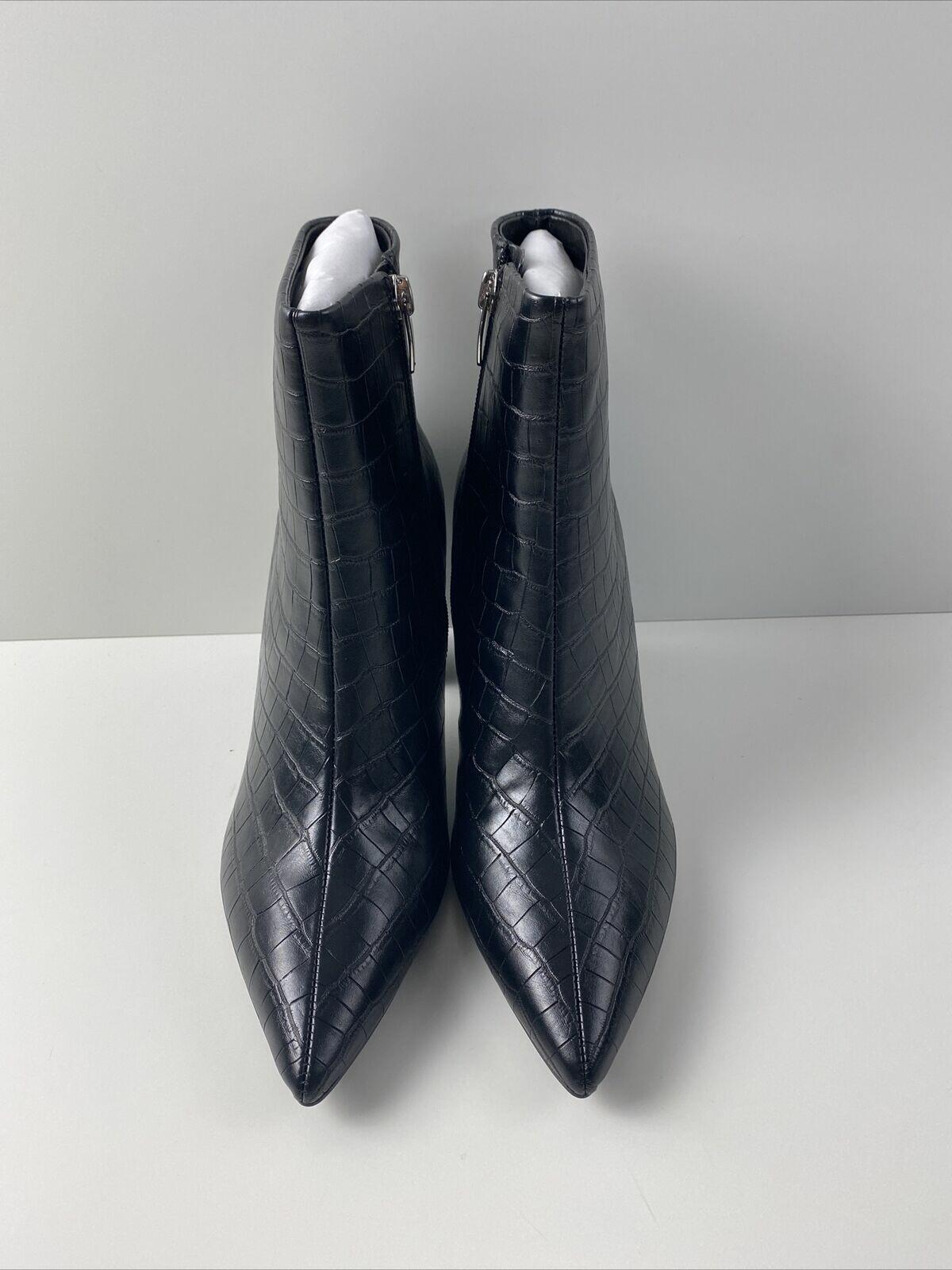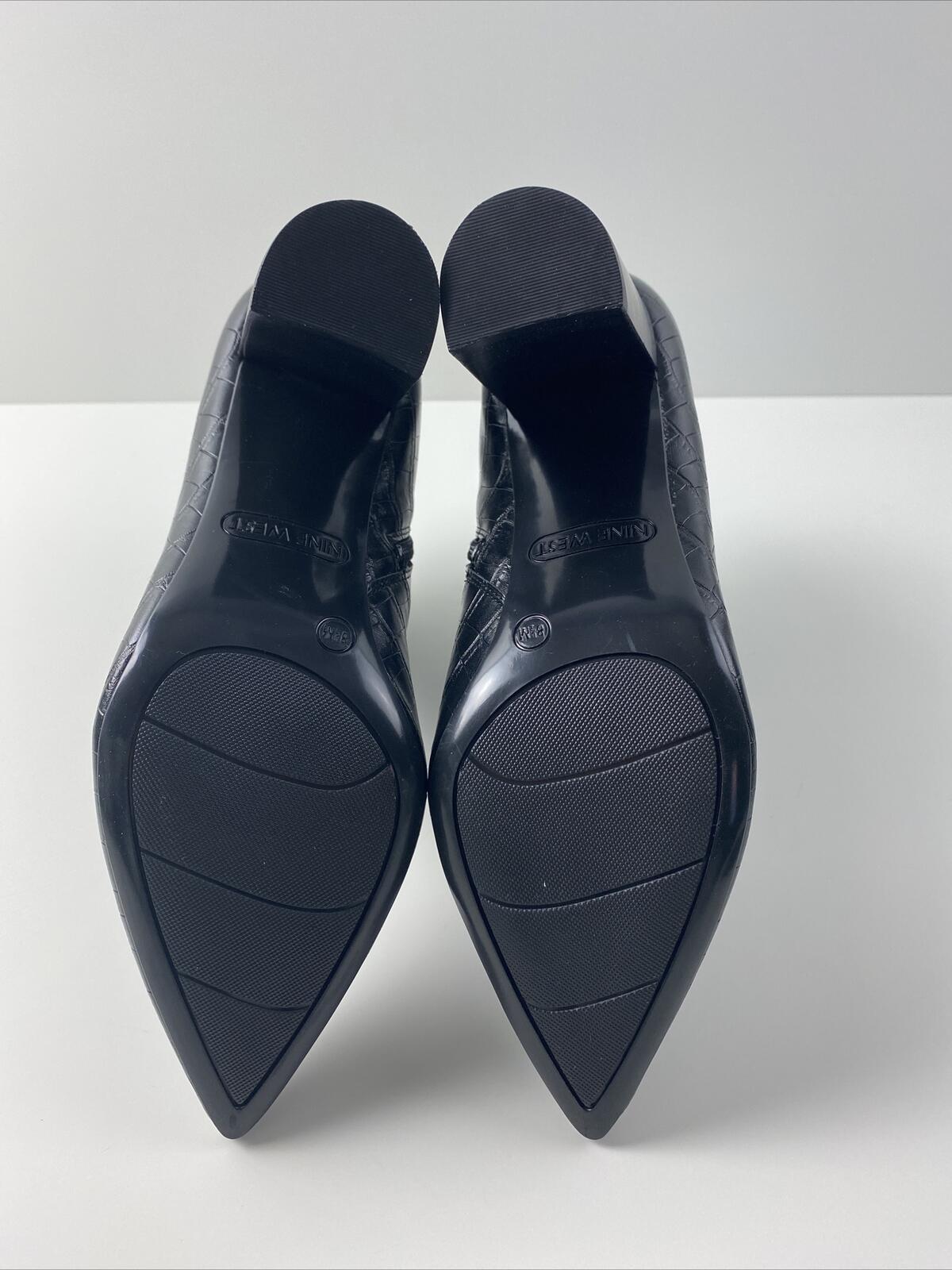 Nine West FANIYA3 Black Leather Pointed Toe Zip Block Heel Booties Women's 8.5 M