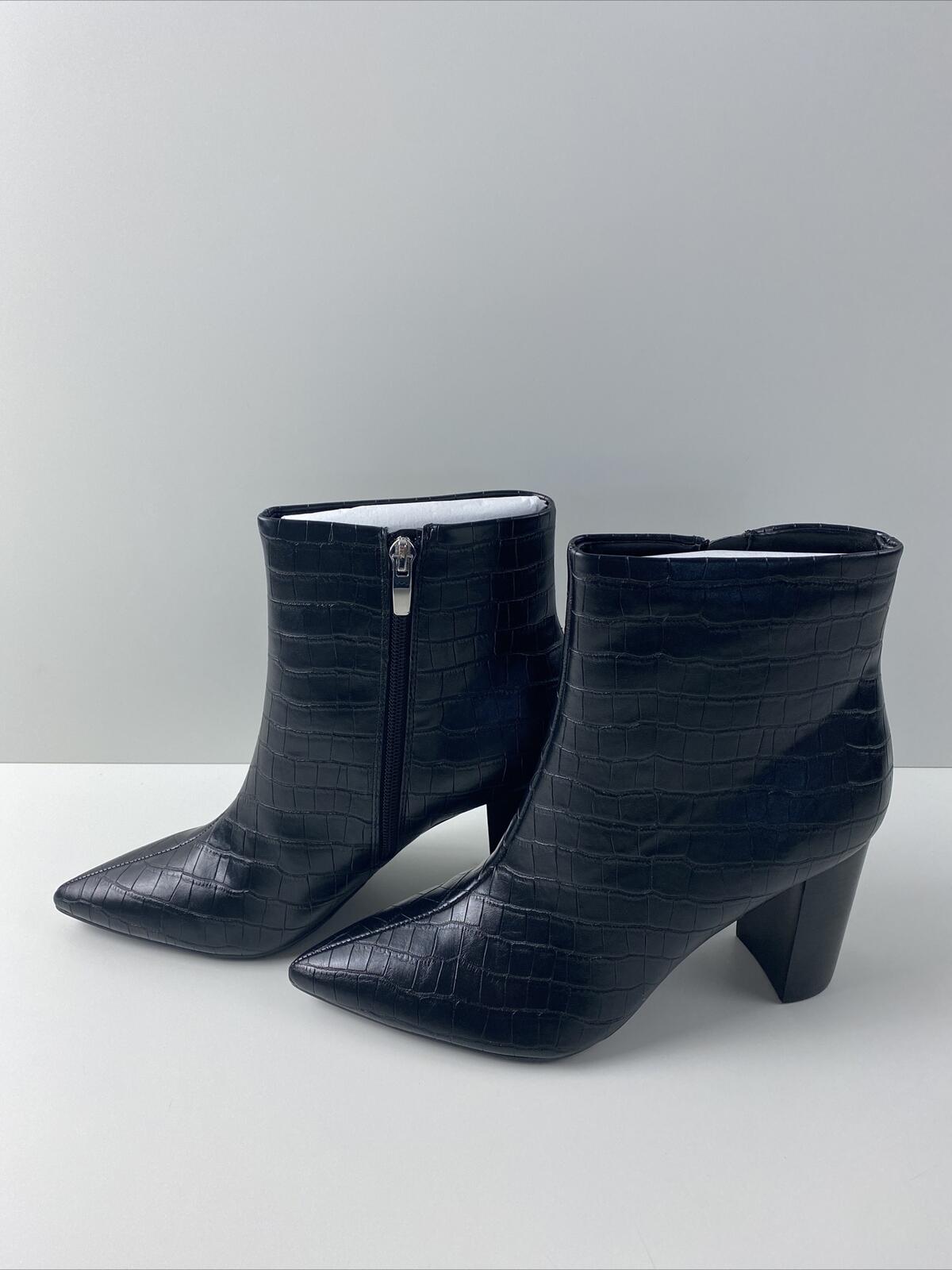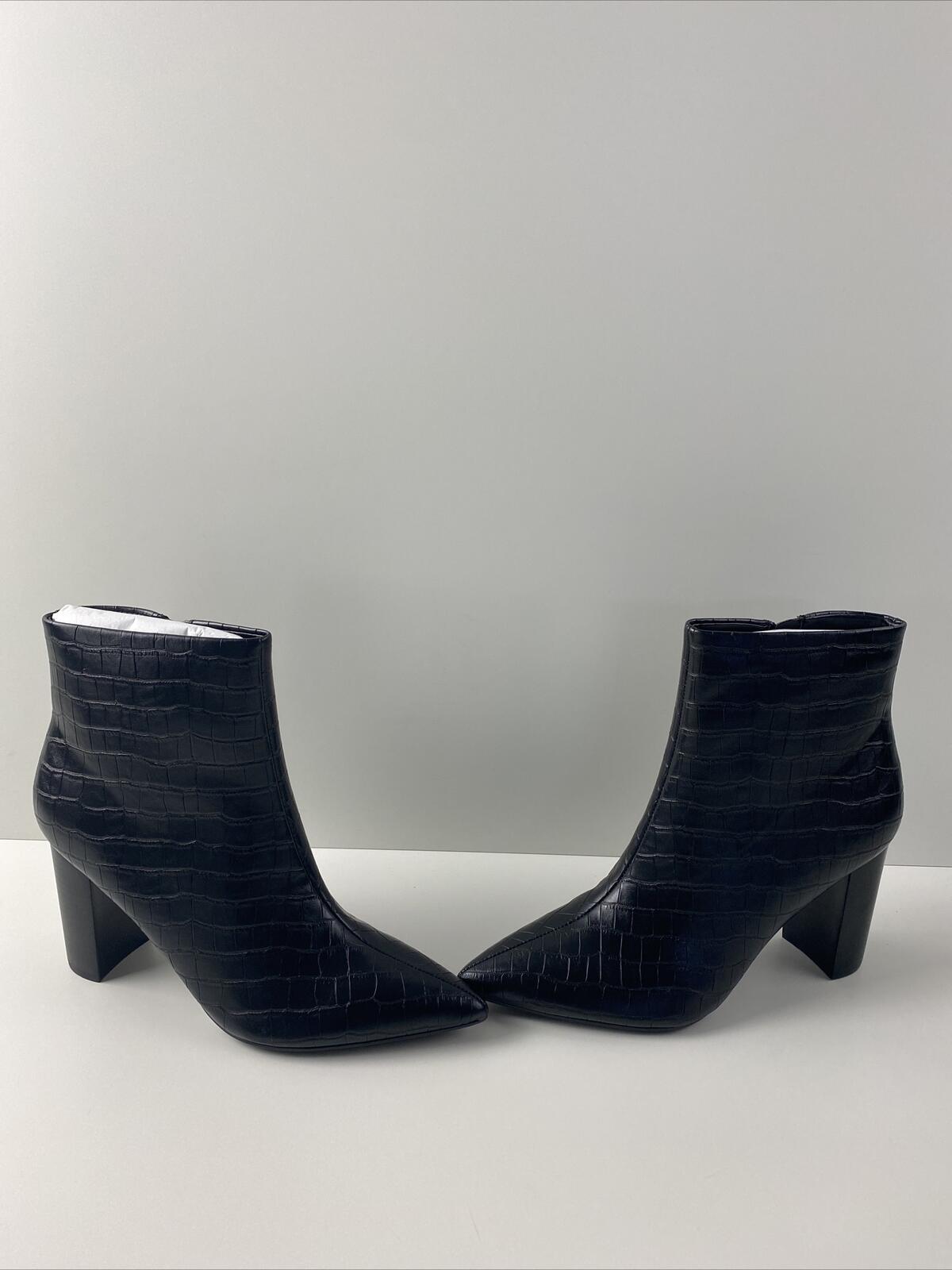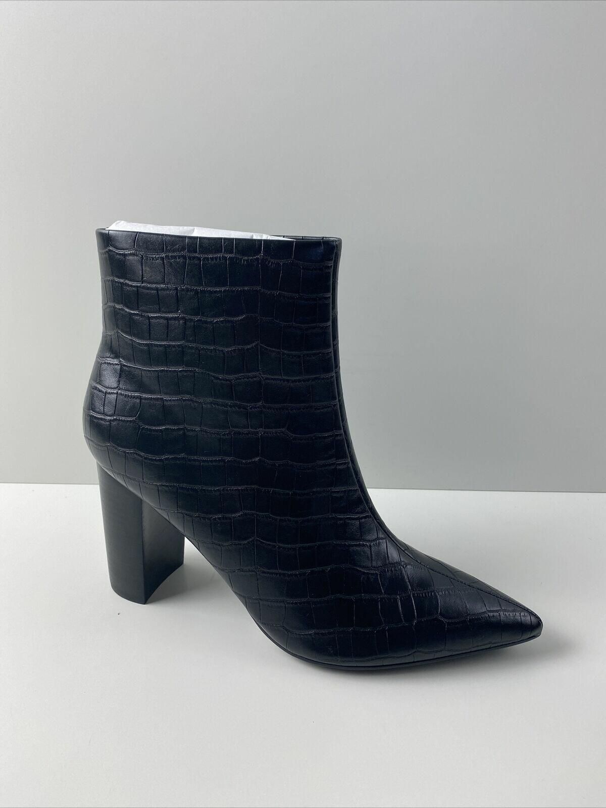 Nine West FANIYA3 Black Leather Pointed Toe Zip Block Heel Booties Women's 8.5 M