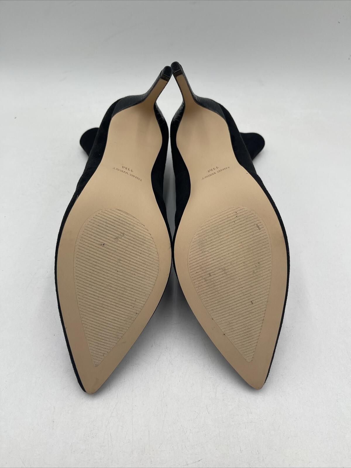 Step up your fashion game with these Nine West Reves dress booties designed for the modern, confident woman. Crafted from high-quality black suede, these ankle boots feature a pointed toe and ultra-high stiletto heel that accentuates your legs, making them perfect for formal occasions. With a size of 11M, these booties are suitable for women who value style and comfort.