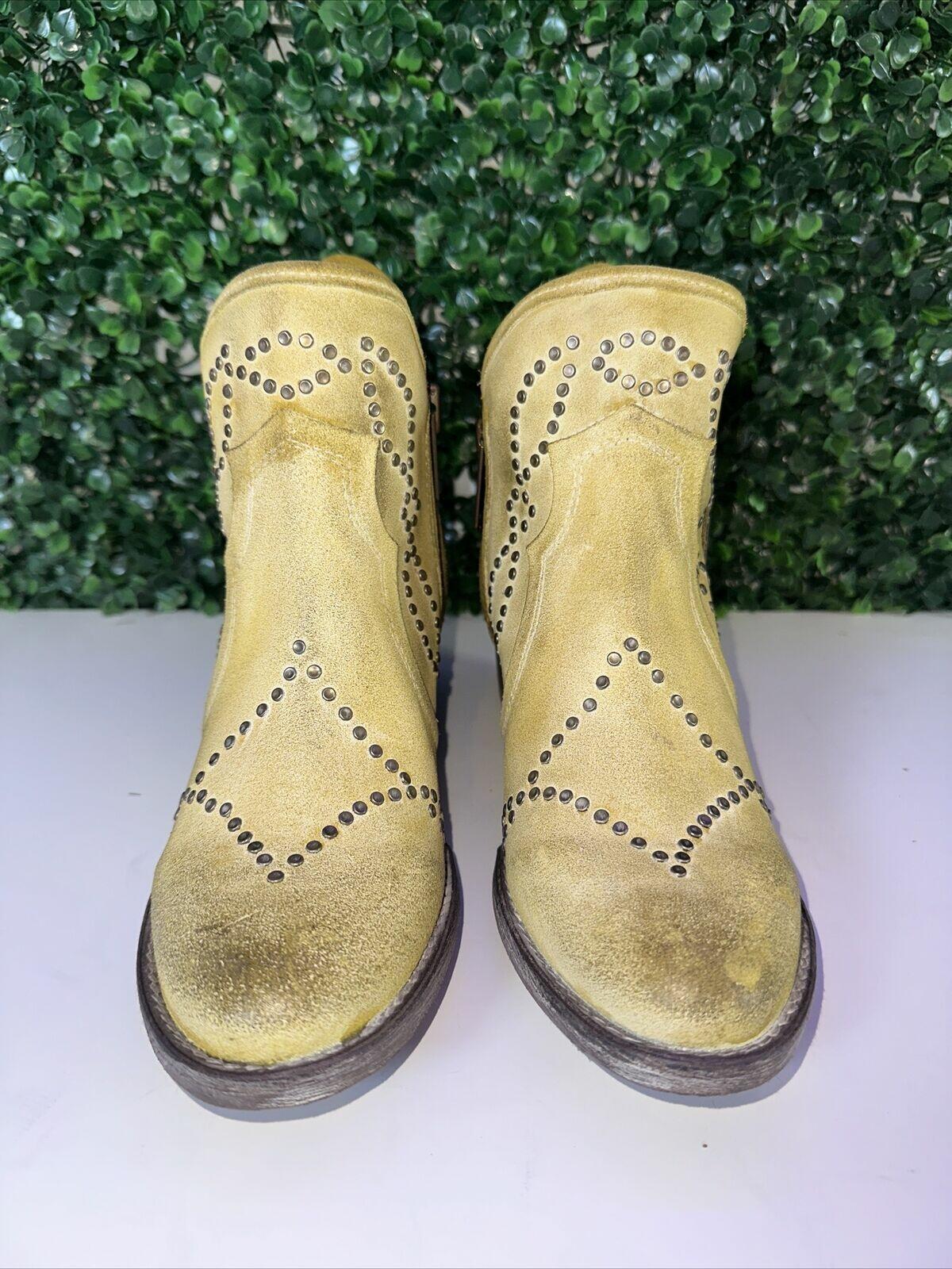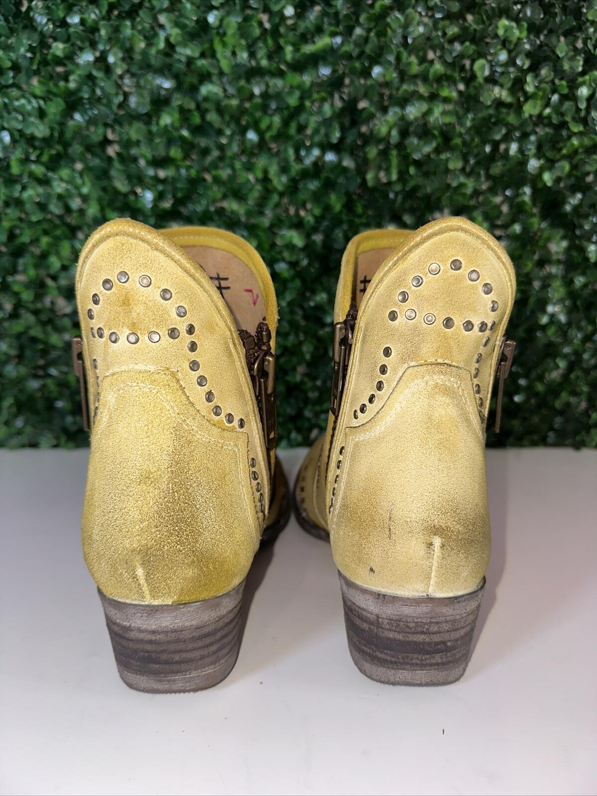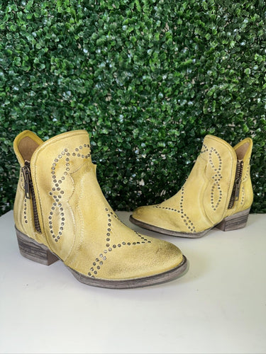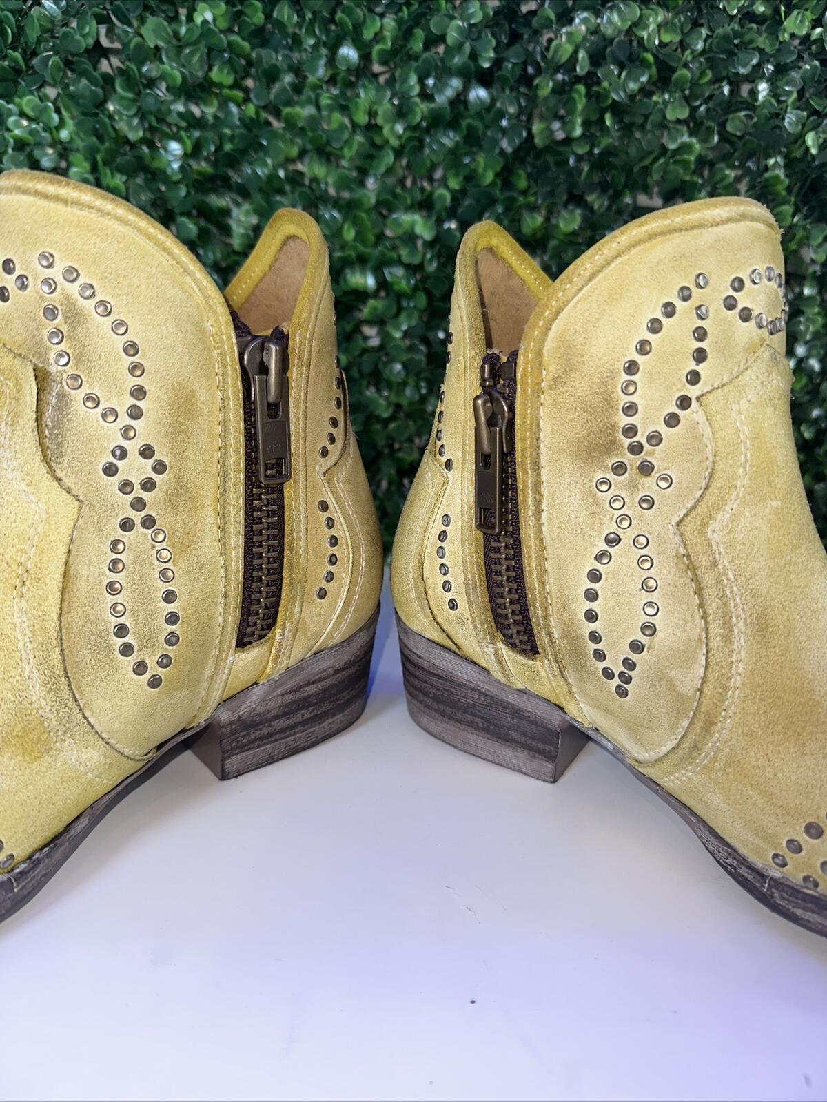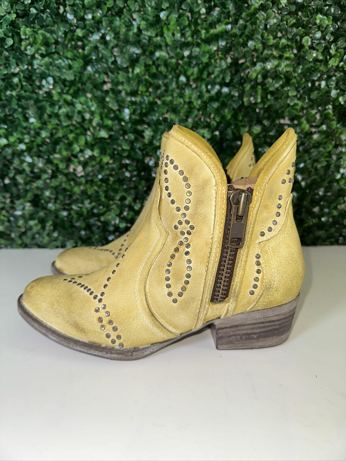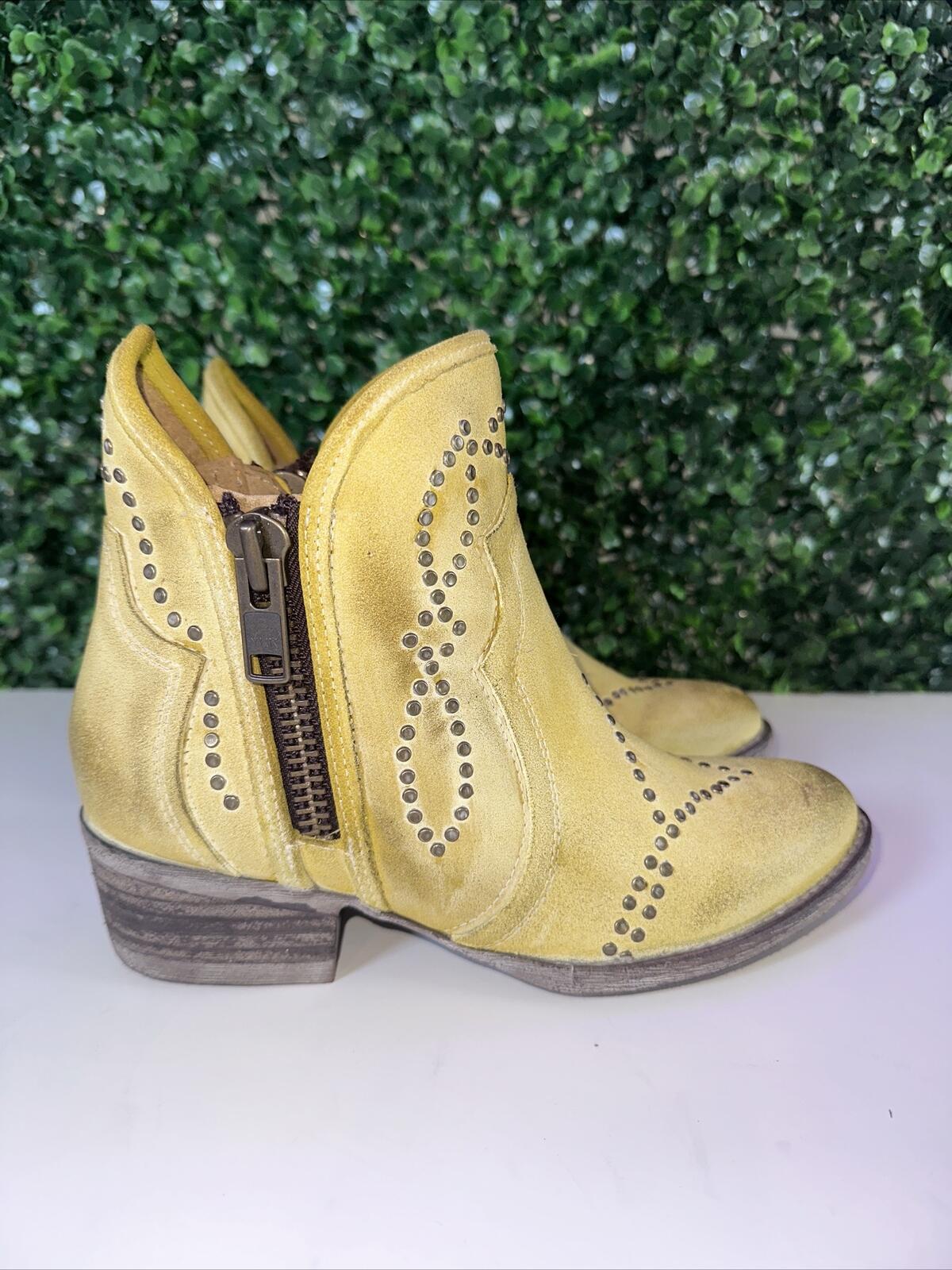 NWOB Circle G Women’s Distressed Yellow Studs & Zipper Booties Size 7 M