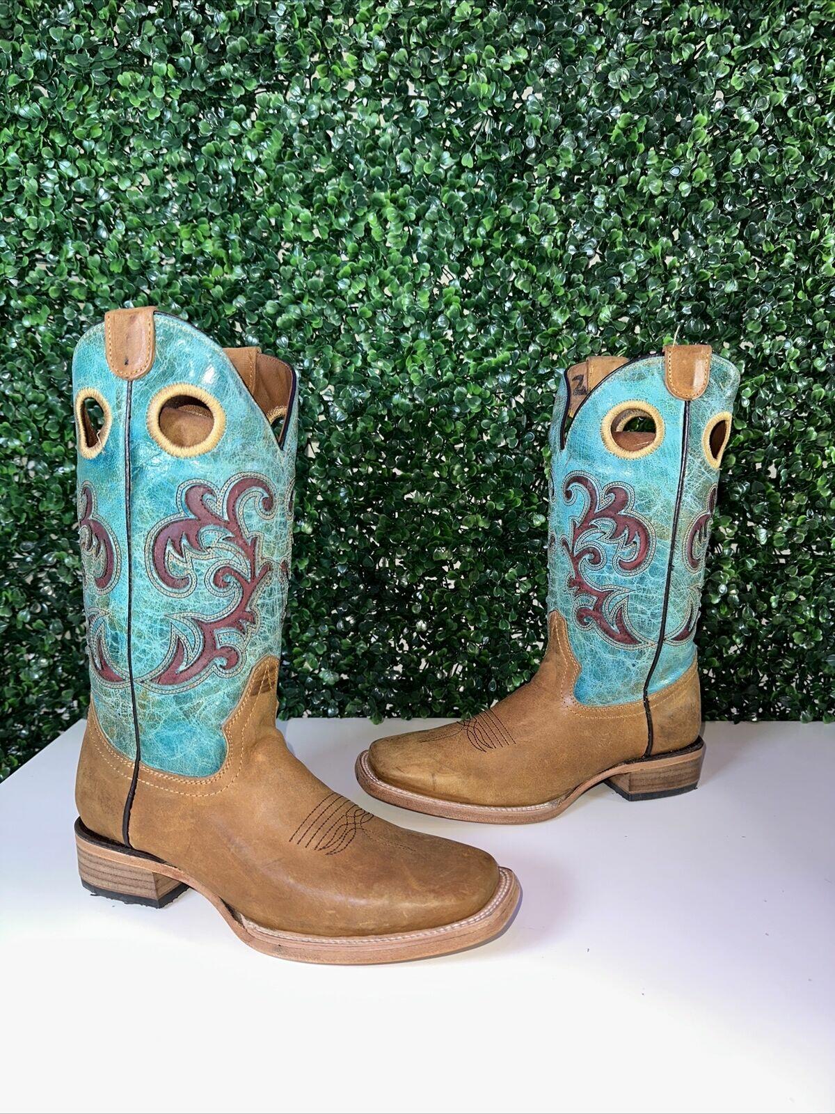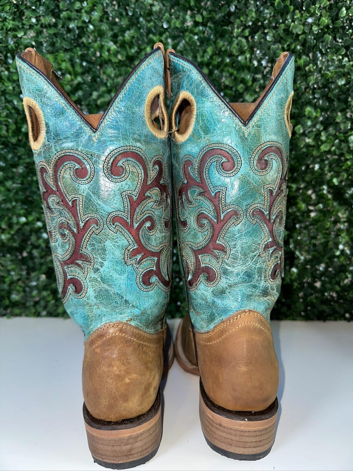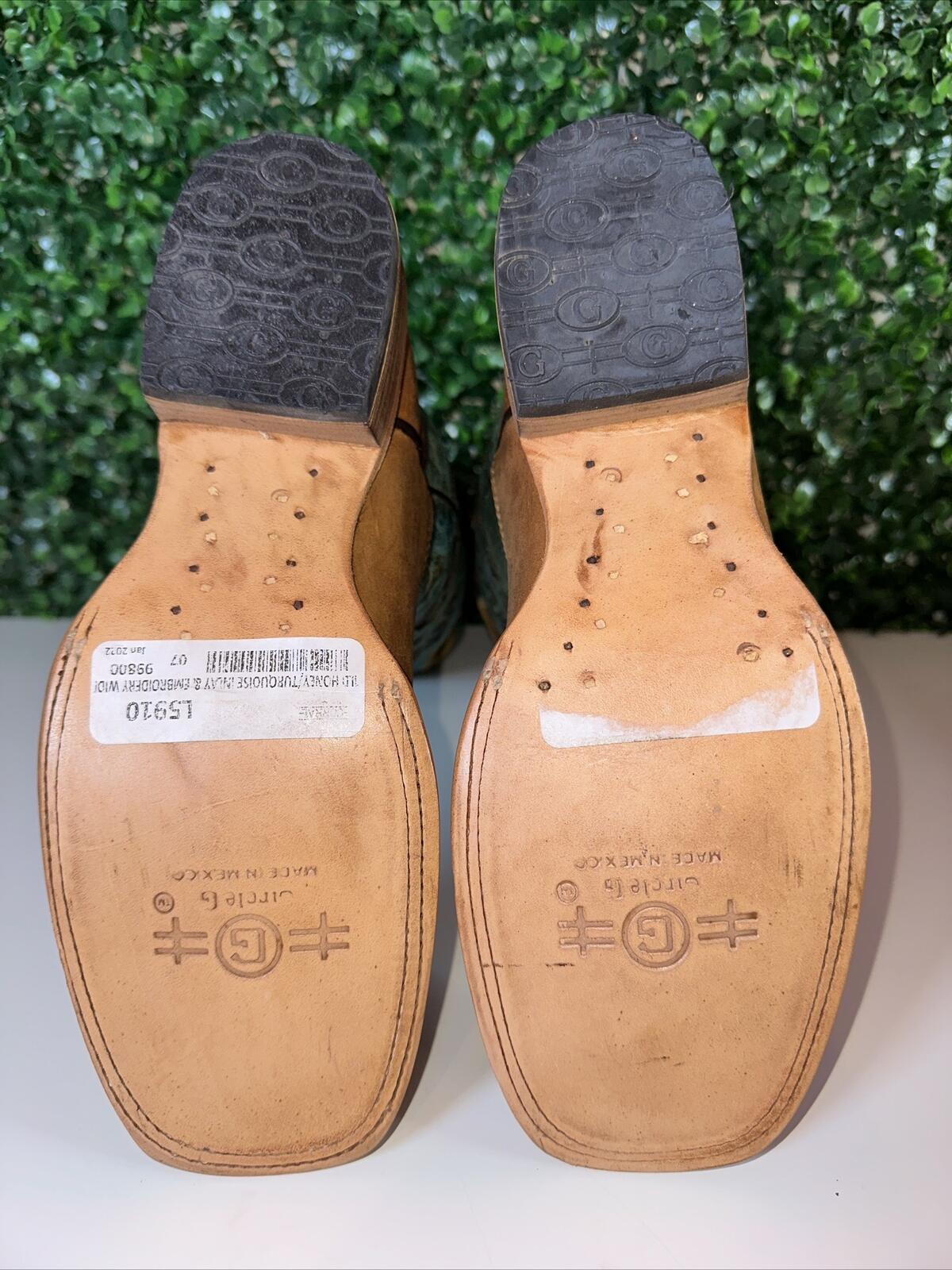 NWOB Circle G Women’s Honey/Turquoise Inlay & Embroidery Wide Square Toe Size 7M - Like New - Ufashion