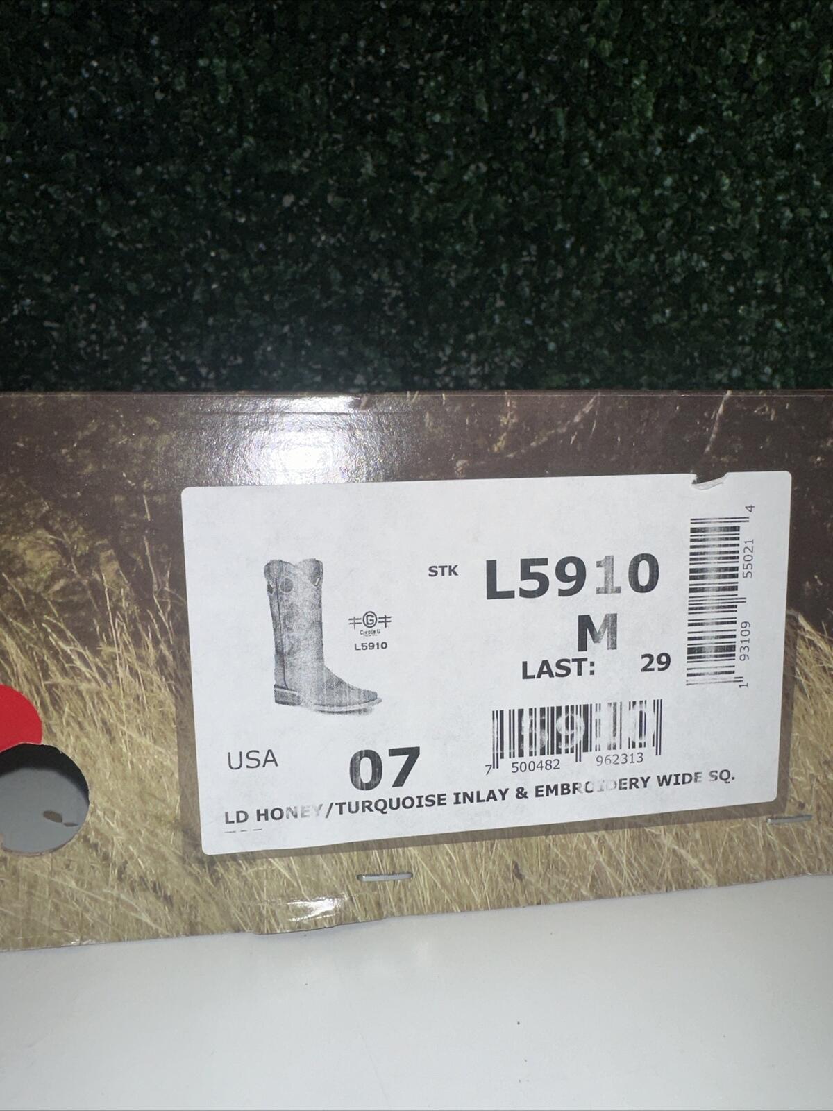 NWOB Circle G Women’s Honey/Turquoise Inlay & Embroidery Wide Square Toe Size 7M - Like New