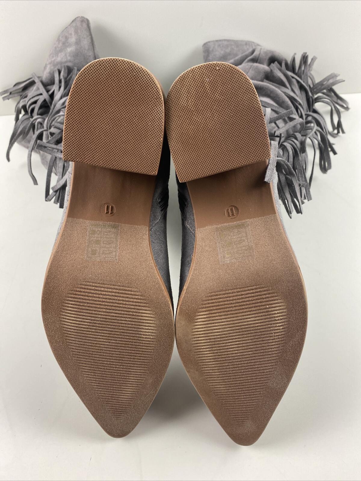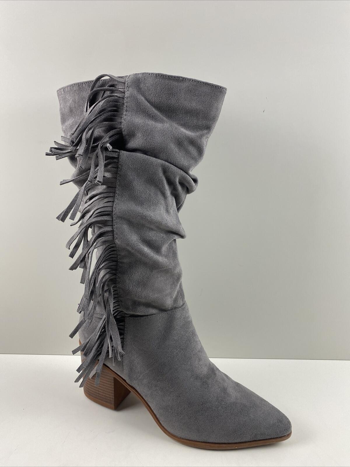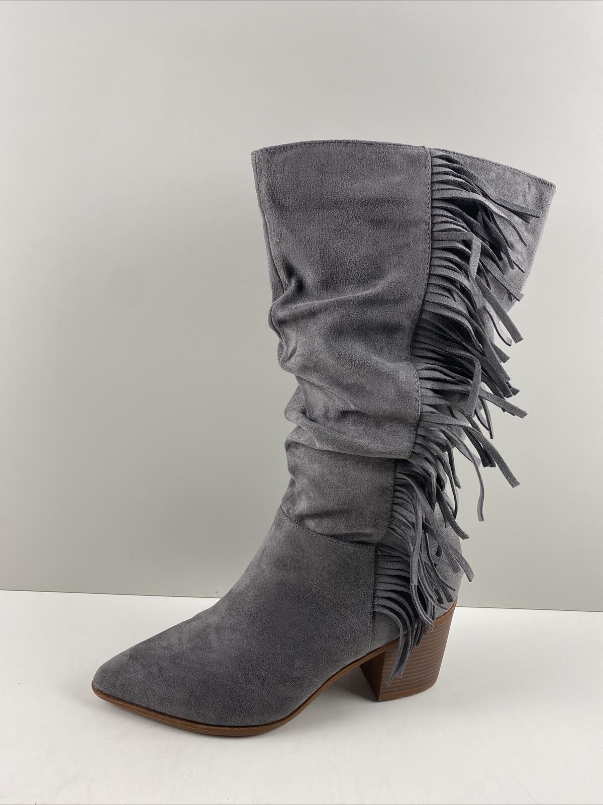 NWOB Journee Collection HARTLY Grey Fabric Pointy Toe Block Heel Fringe Boots Womens 11The boots are new without box