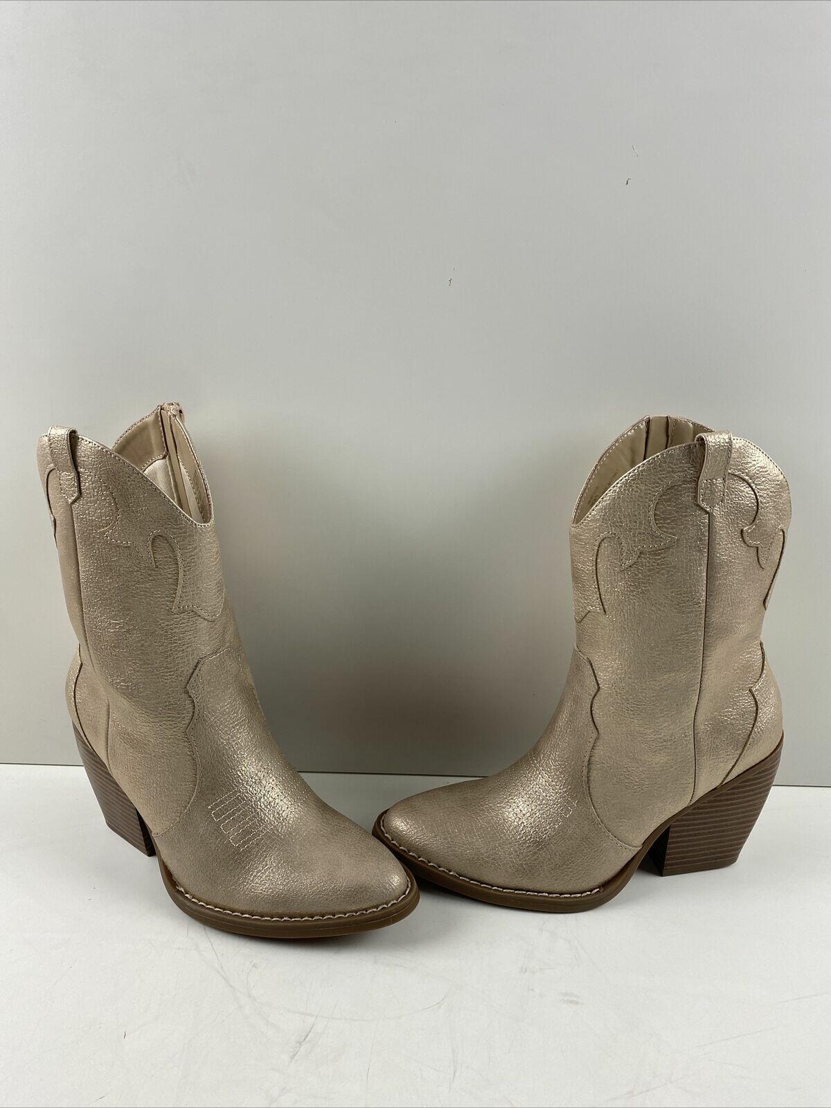NWOB Mix No. 6 BRYCEN Gold Faux Leather Side Zip Western Booties Women Size 6M
