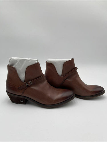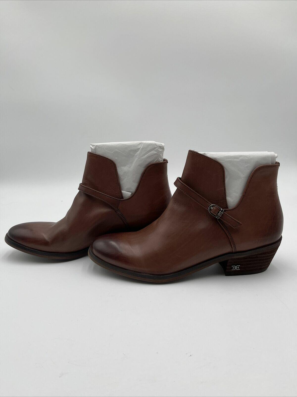 Elevate your style with these stylish ankle boots from Sam Edelman. The dark mahogany veg calf leather gives a chic and sophisticated look, perfect for any casual occasion. The almond toe shape and low block heel add a touch of elegance while the leather lining ensures comfort all day long. Available in size 5.5M, these boots are perfect for any fashion-conscious woman. Add these to your shoe collection today!D1