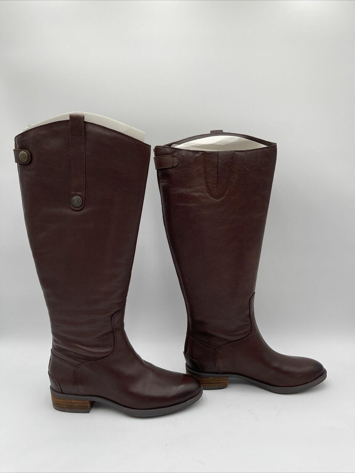 Elevate your style with these women's Sam Edelman Penny 2 wide calf leather riding boots in a rich dark brown color. The boots feature a low block heel and pull-on tabs for easy wear. Perfect for casual occasions, these riding boots are designed with a wide calf width for a comfortable fit.The boots are made with high-quality leather and are without a box. With a timeless riding boot style, these Sam Edelman boots are a must-have for any stylish woman's wardrobe.