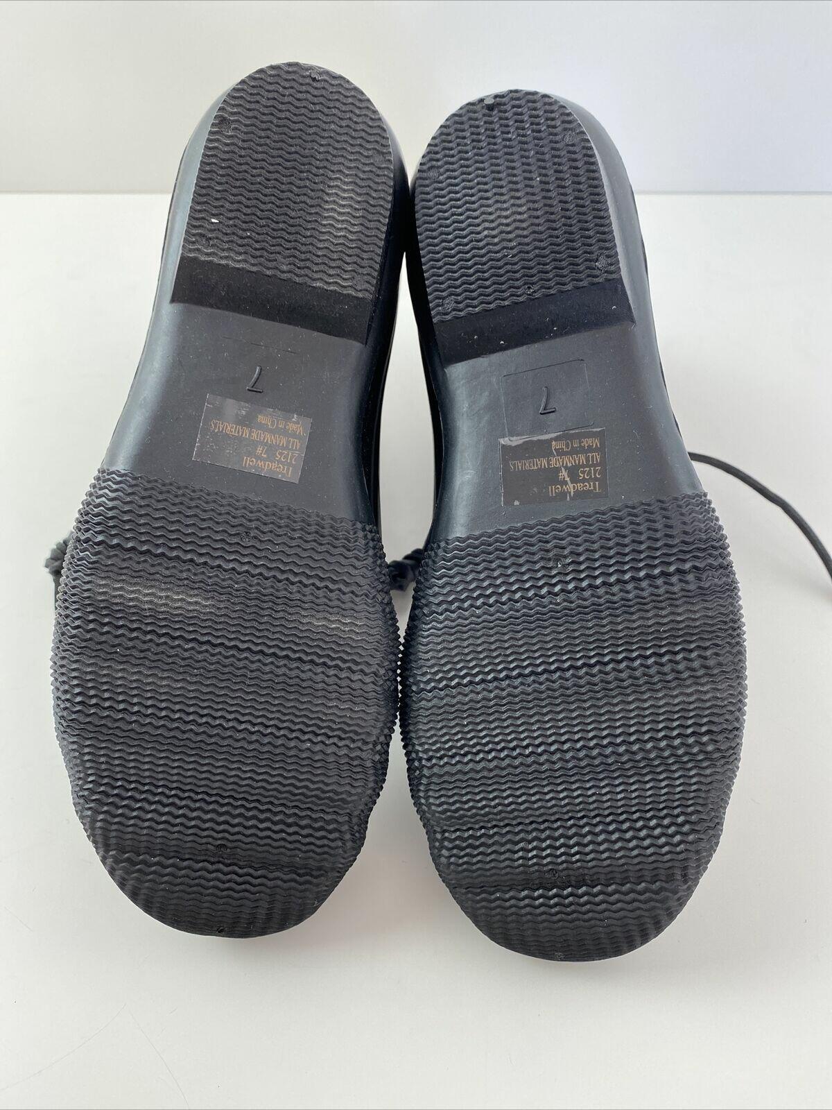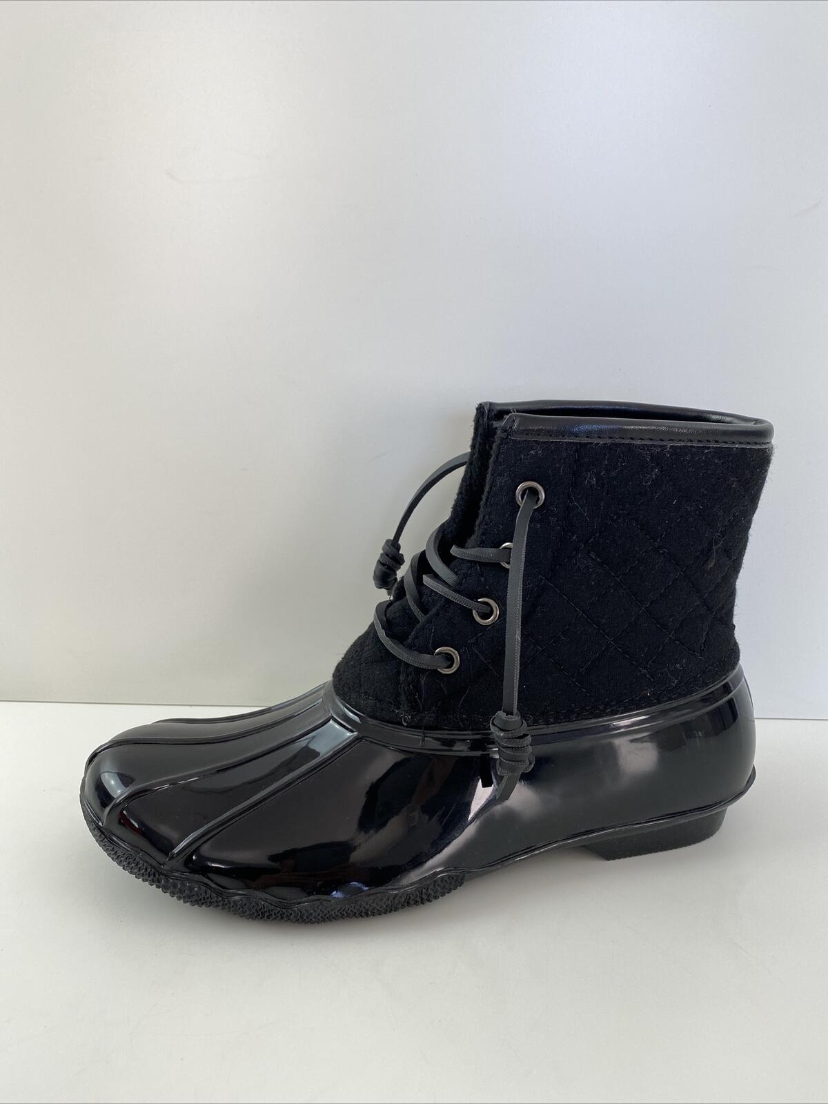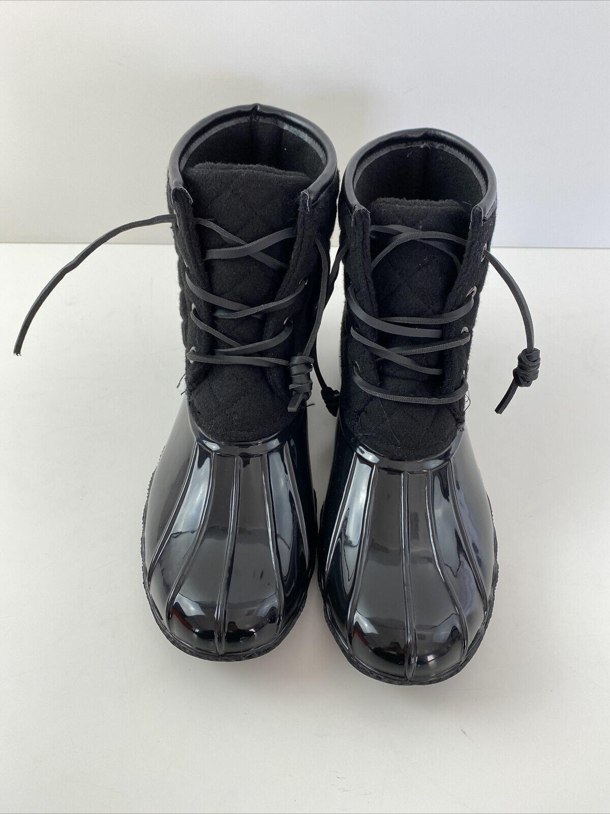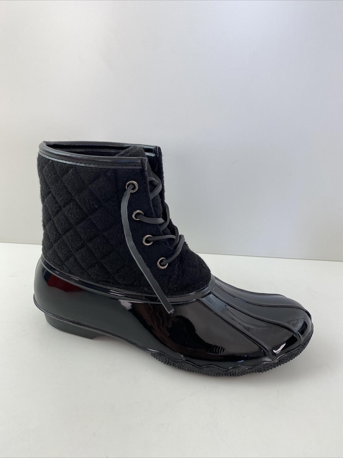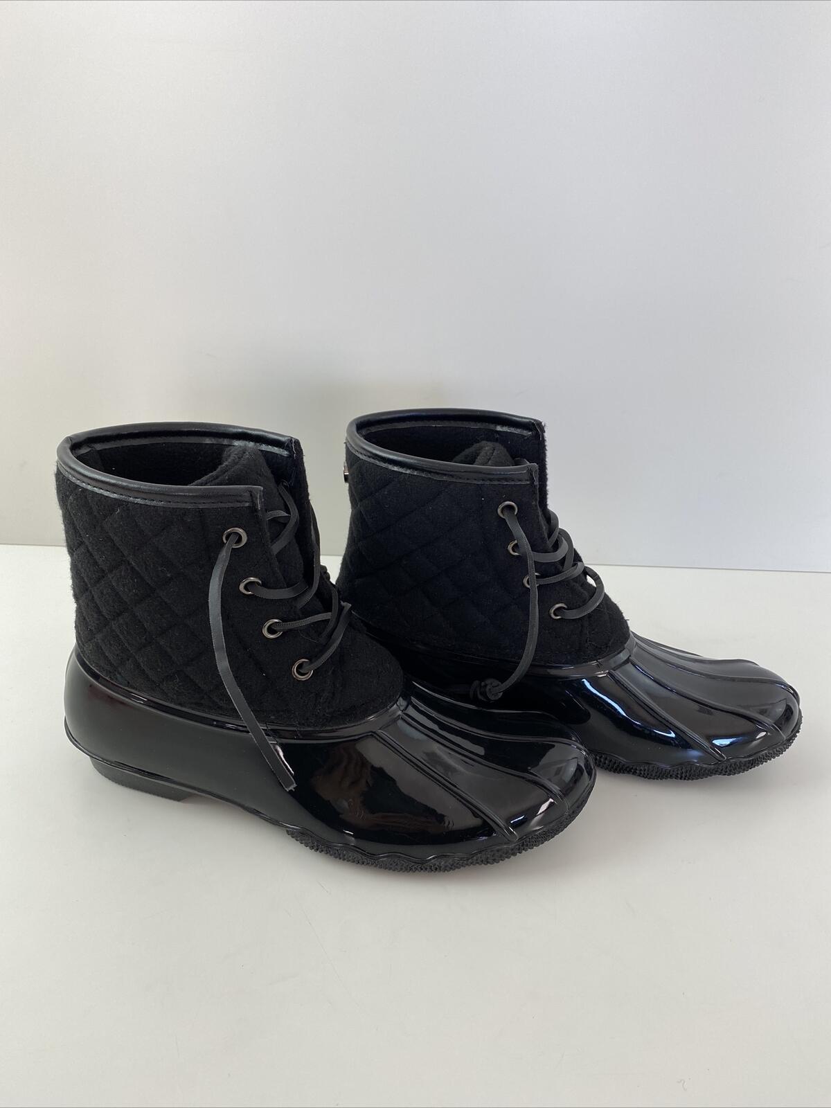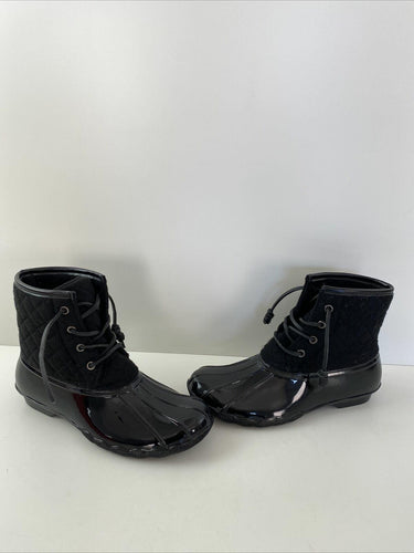 Ocean+Coast TREADWELL Black Quilted Fabric/Rubber Lace Up Rain Boot Women Size 7
