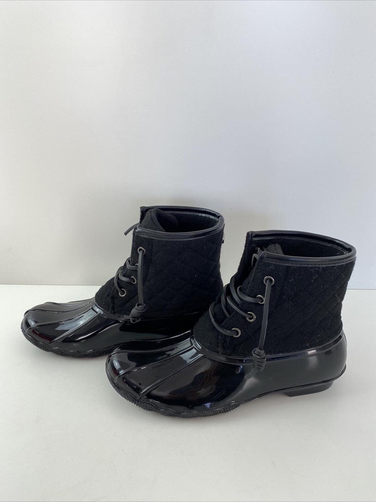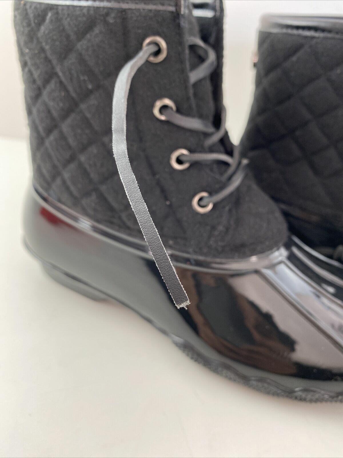 Ocean+Coast TREADWELL Black Quilted Fabric/Rubber Lace Up Rain Boot Women Size 7The boots are in good condition