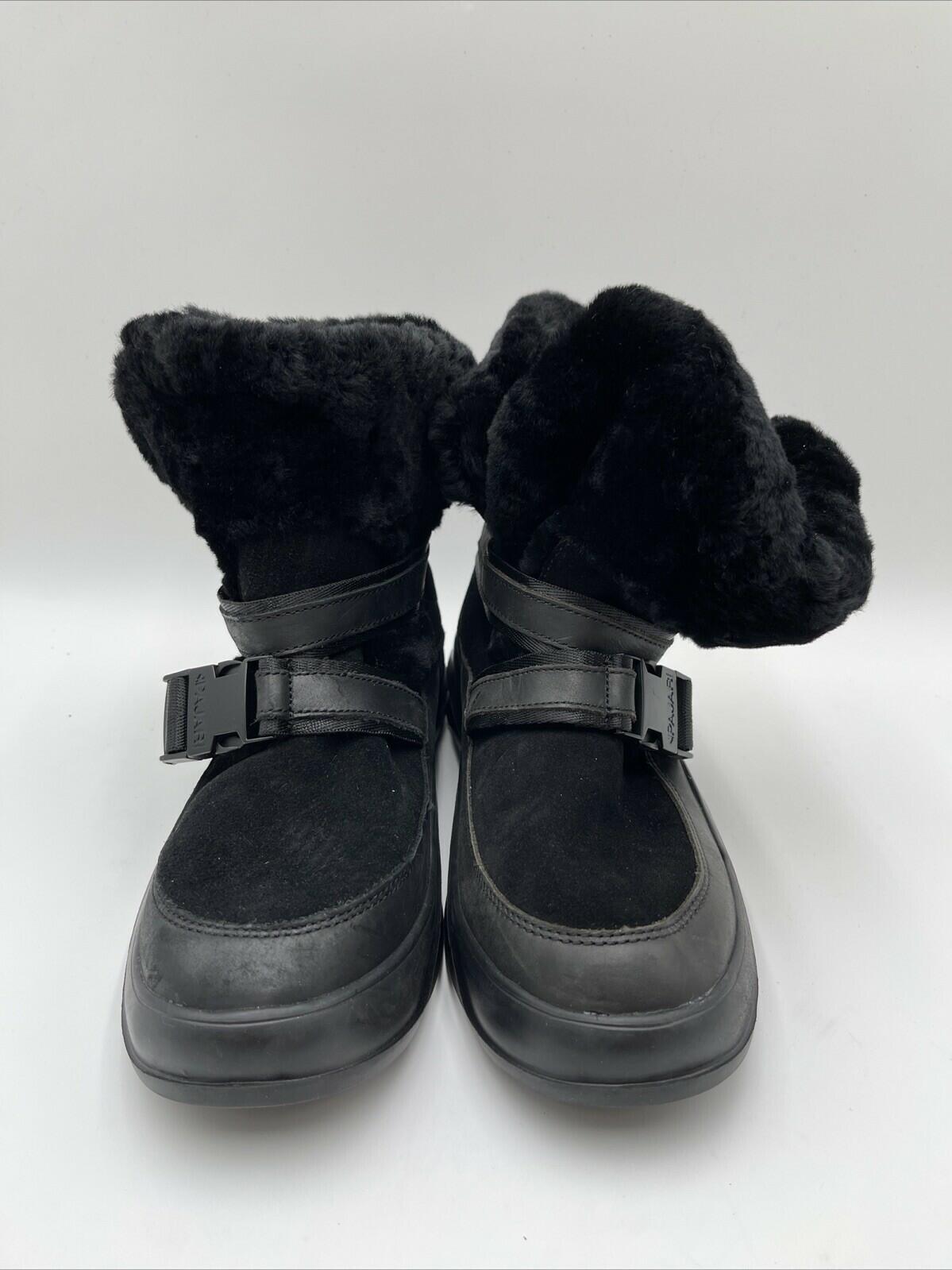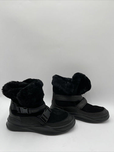 Pajar Women's Avi Shearling Trim, Suede & Leather Ankle Boots Black Size 7-7.5 - Very Good