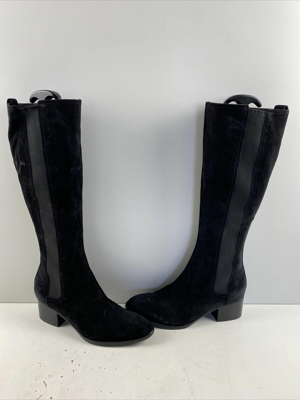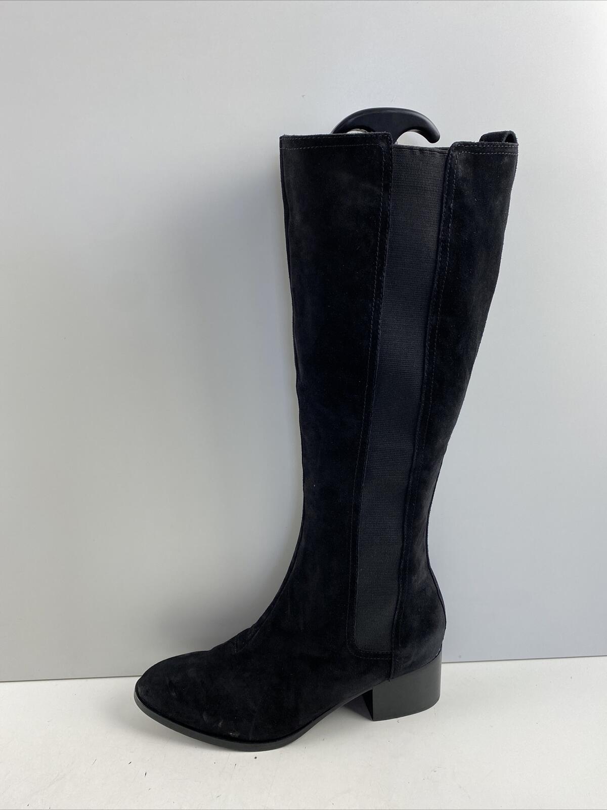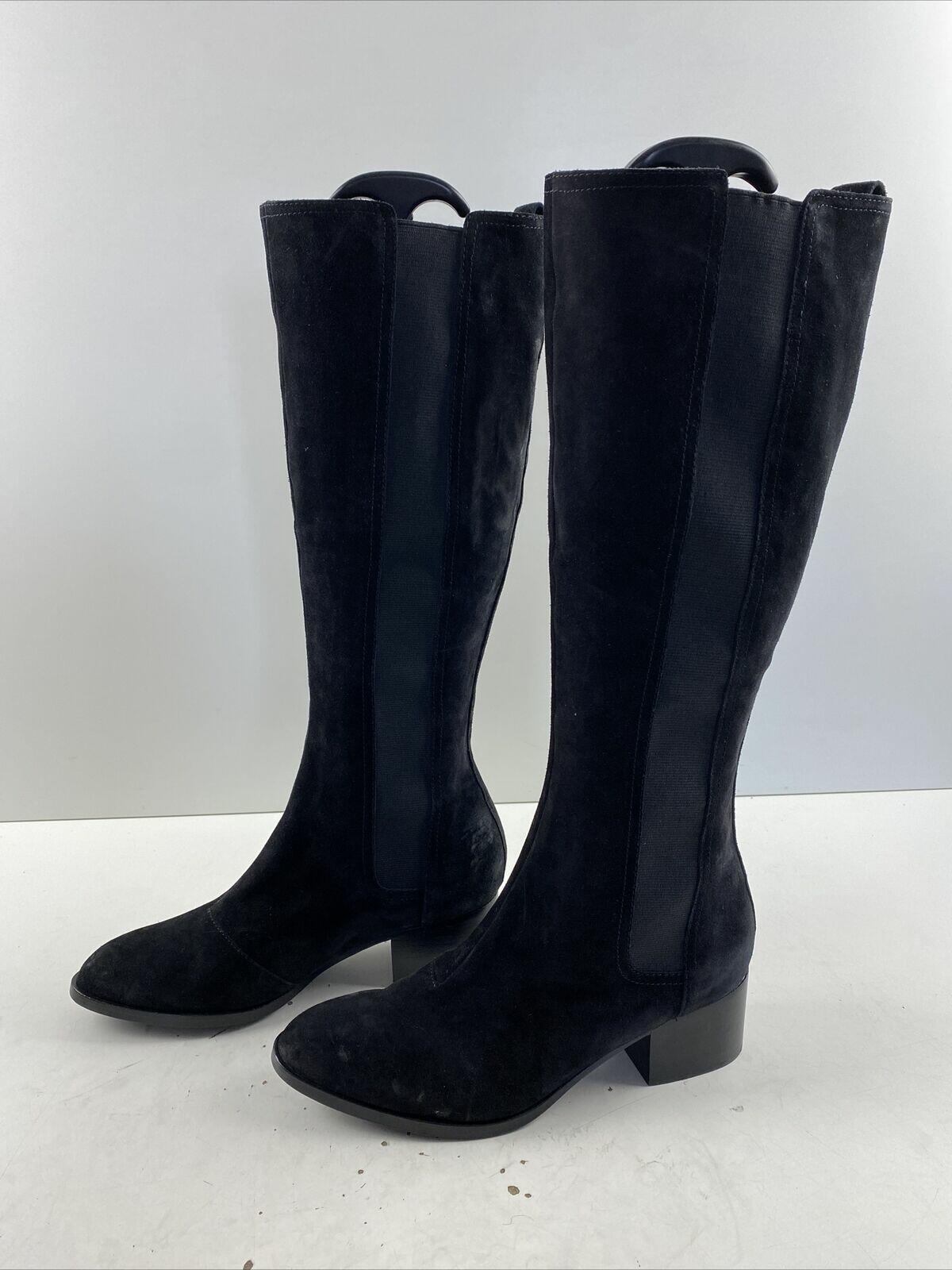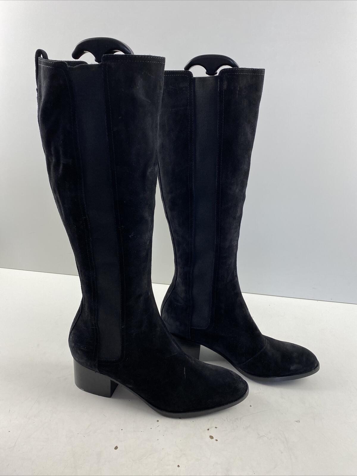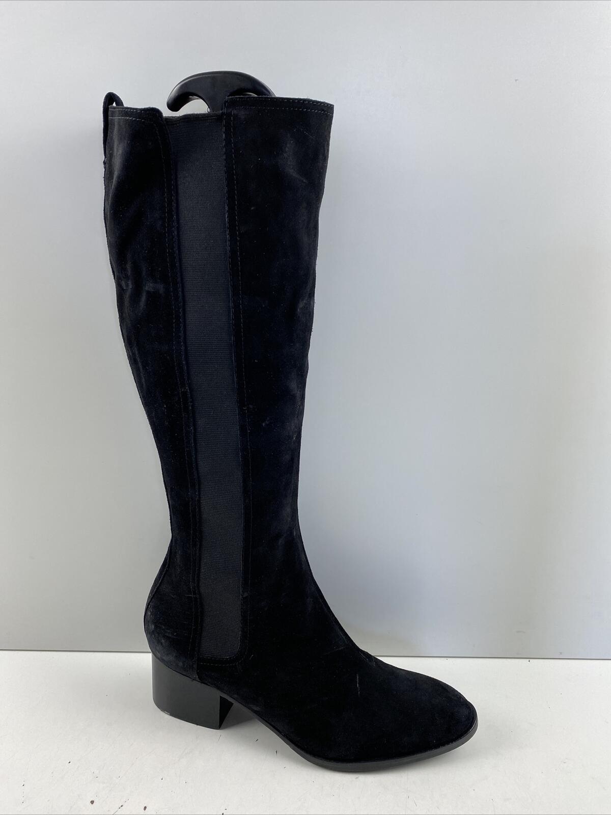 Rag & Bone Black Suede Round Toe Pull On Block Heel Knee High Boots Women’s 38.5