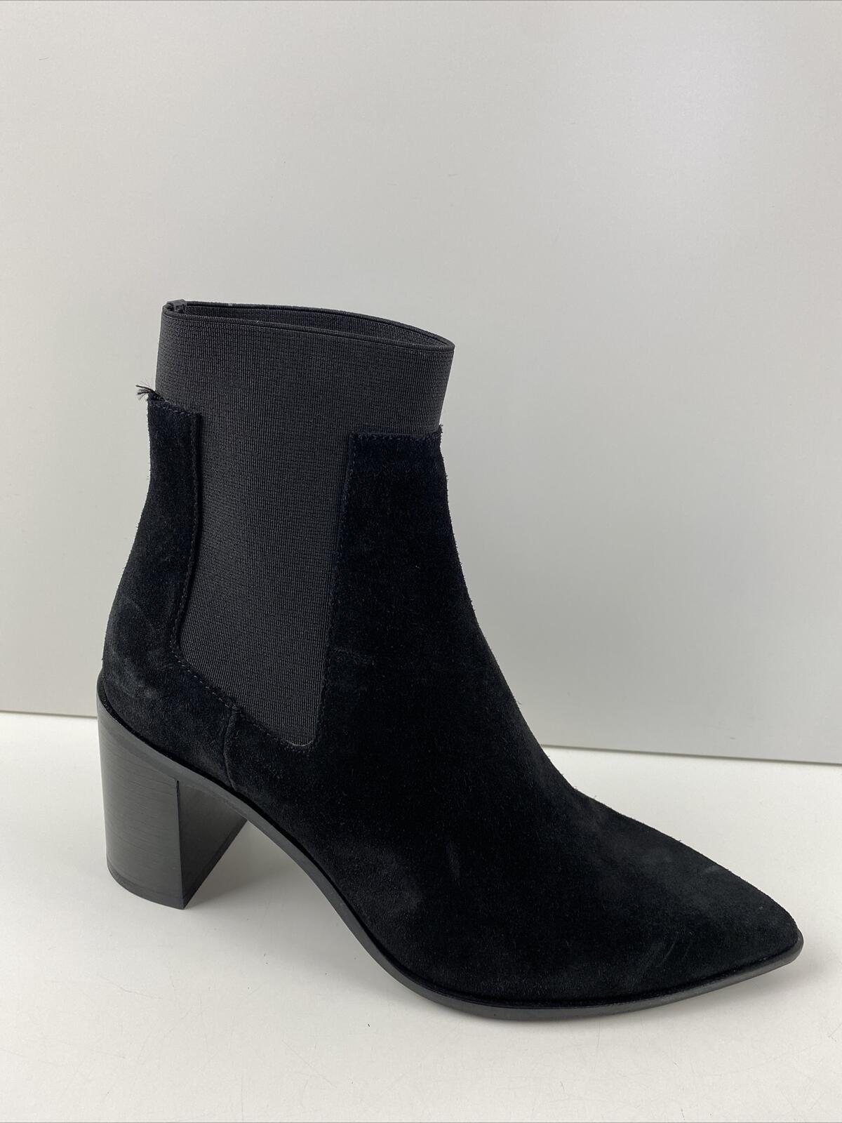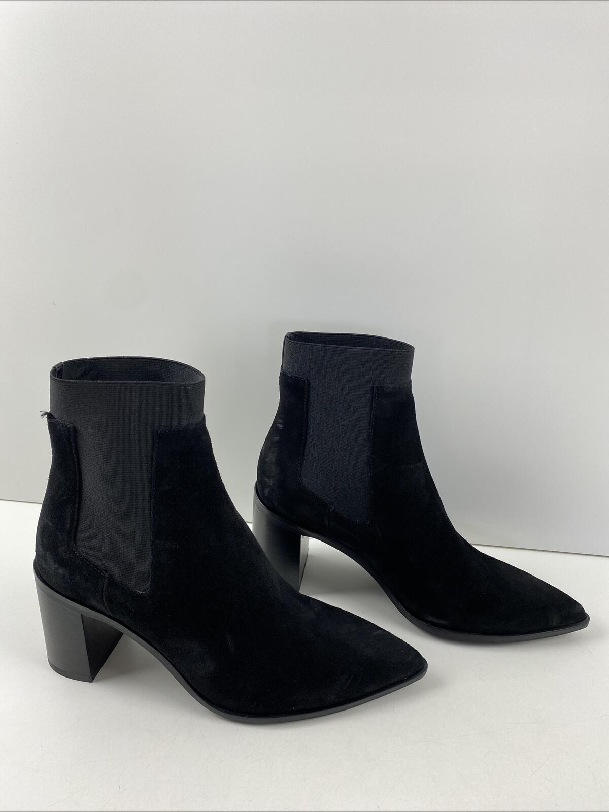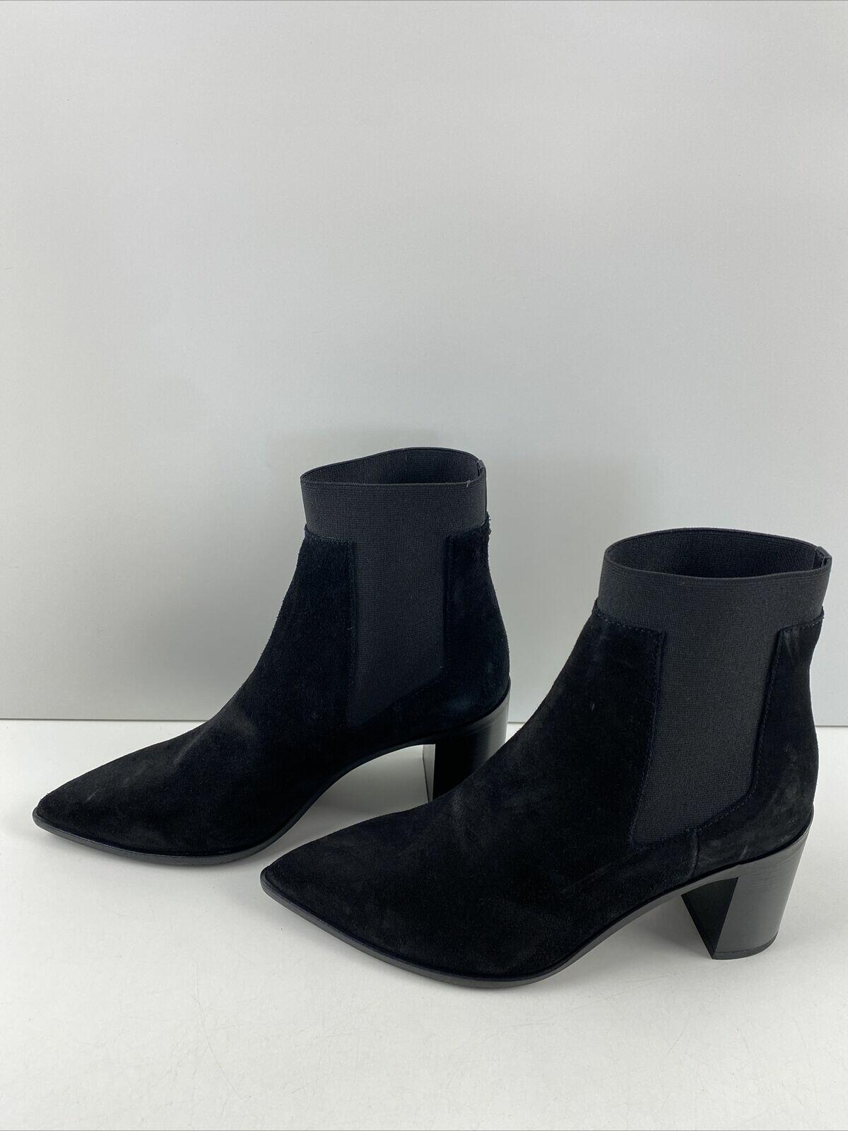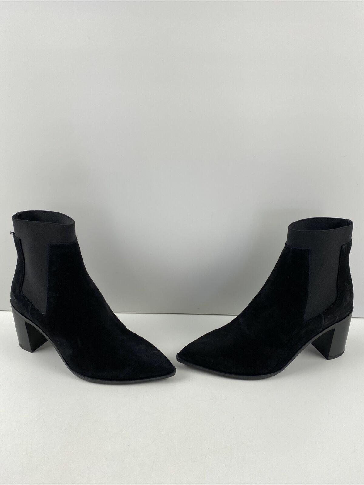 rag & bone BRYNN Black Suede Pointed Toe Pull On Block Heel Ankle Boots Size 35 - Very Good