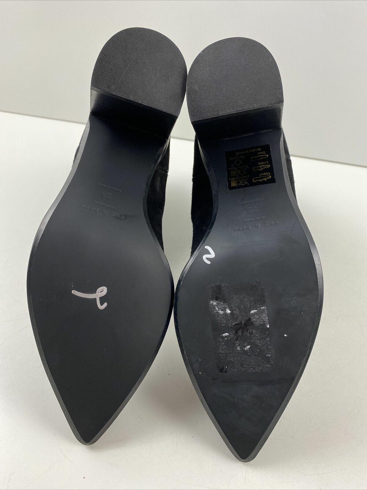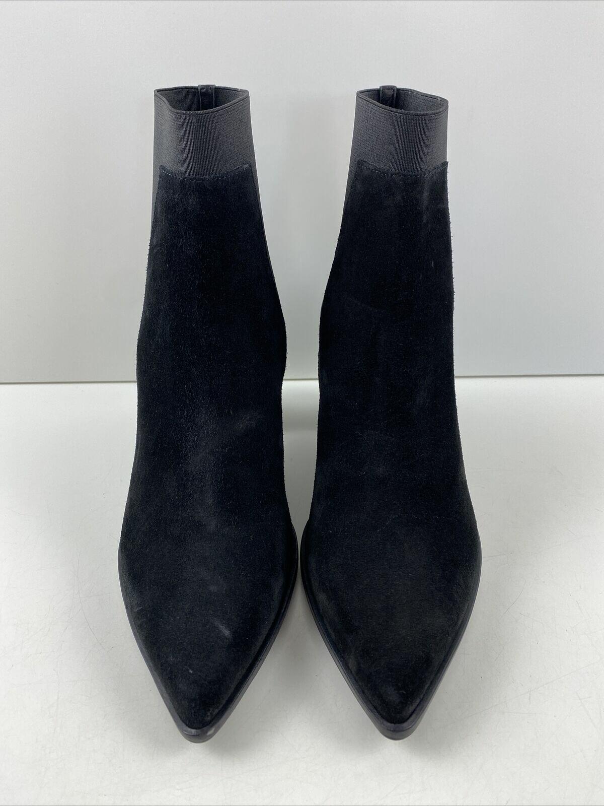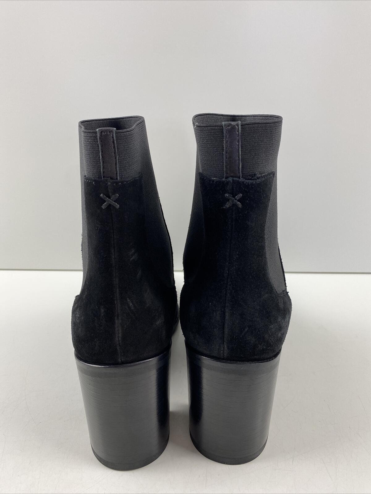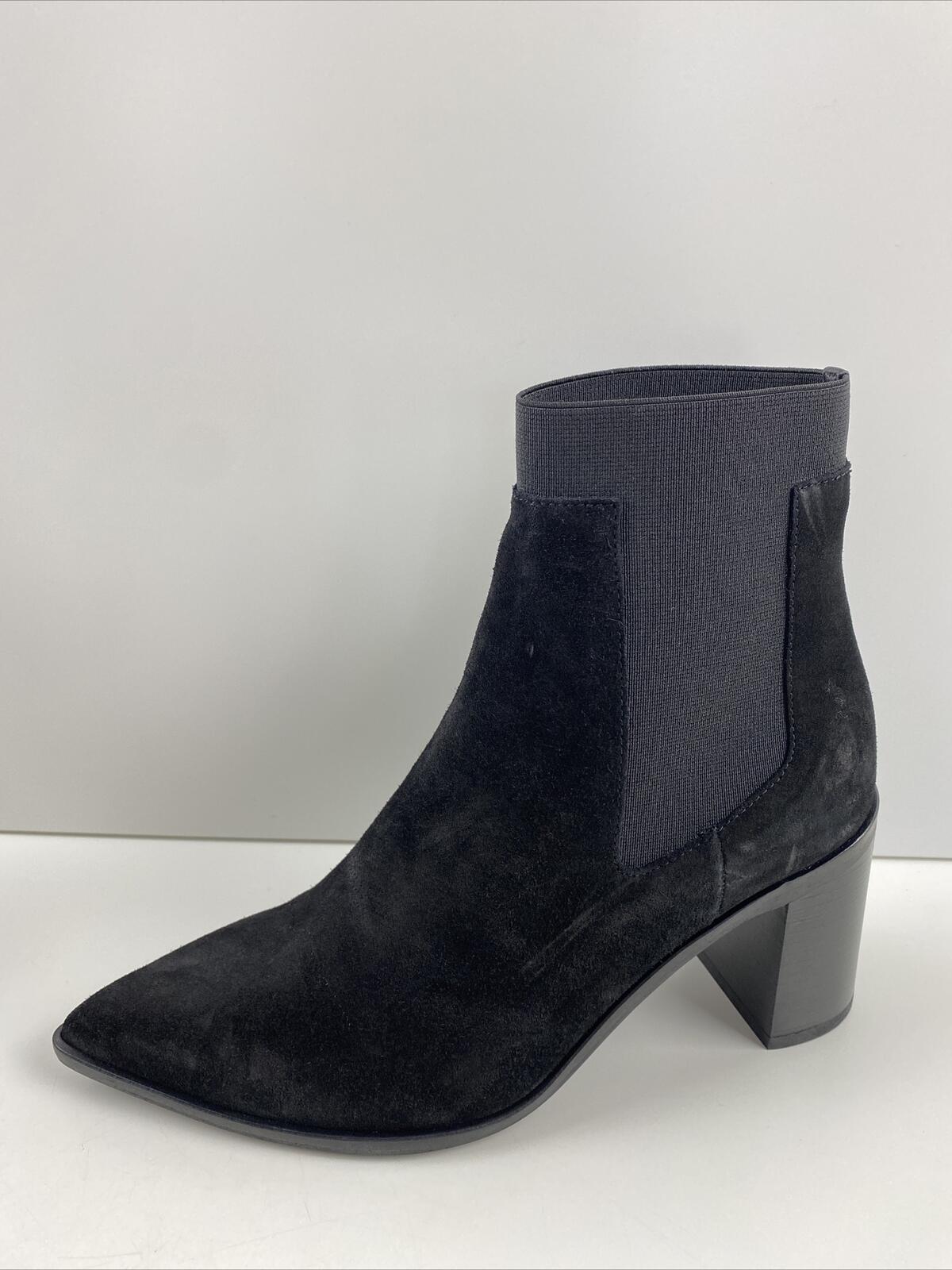 rag & bone BRYNN Black Suede Pointed Toe Pull On Block Heel Ankle Boots Size 35 - Very Good