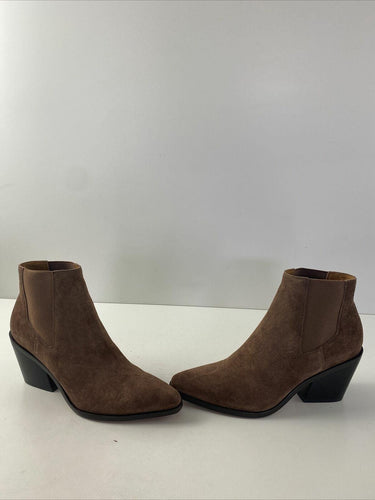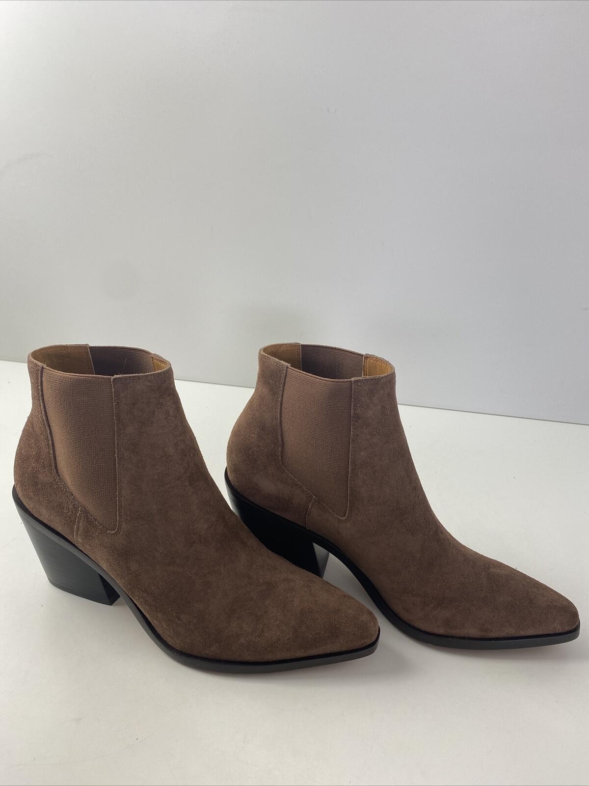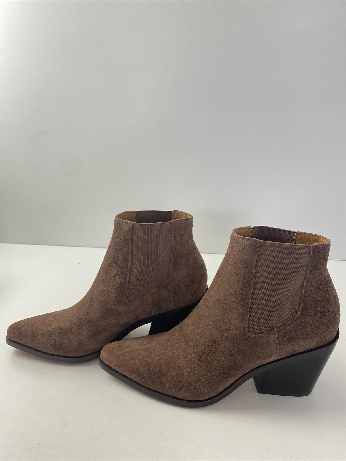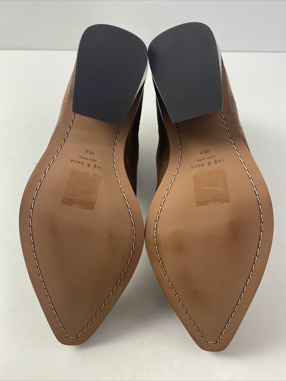 rag & bone RAZOR Brown Suede Pointed Toe Block Heel Chelsea Boots Women’s 39.5