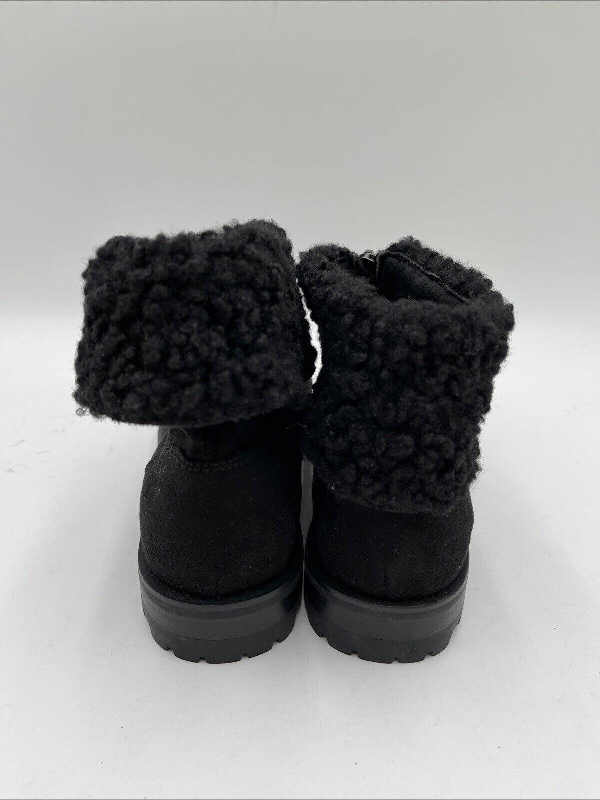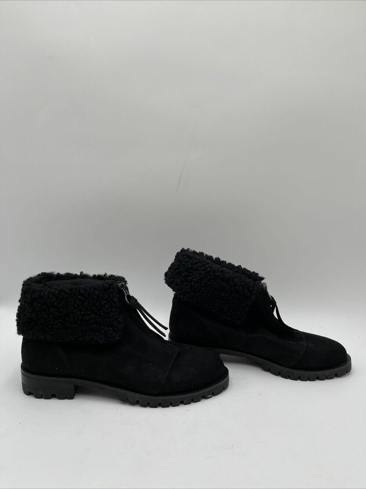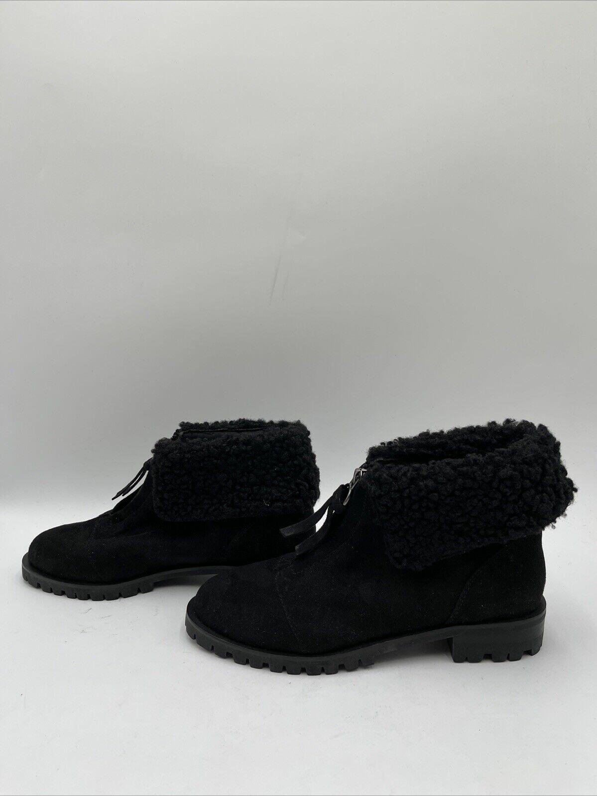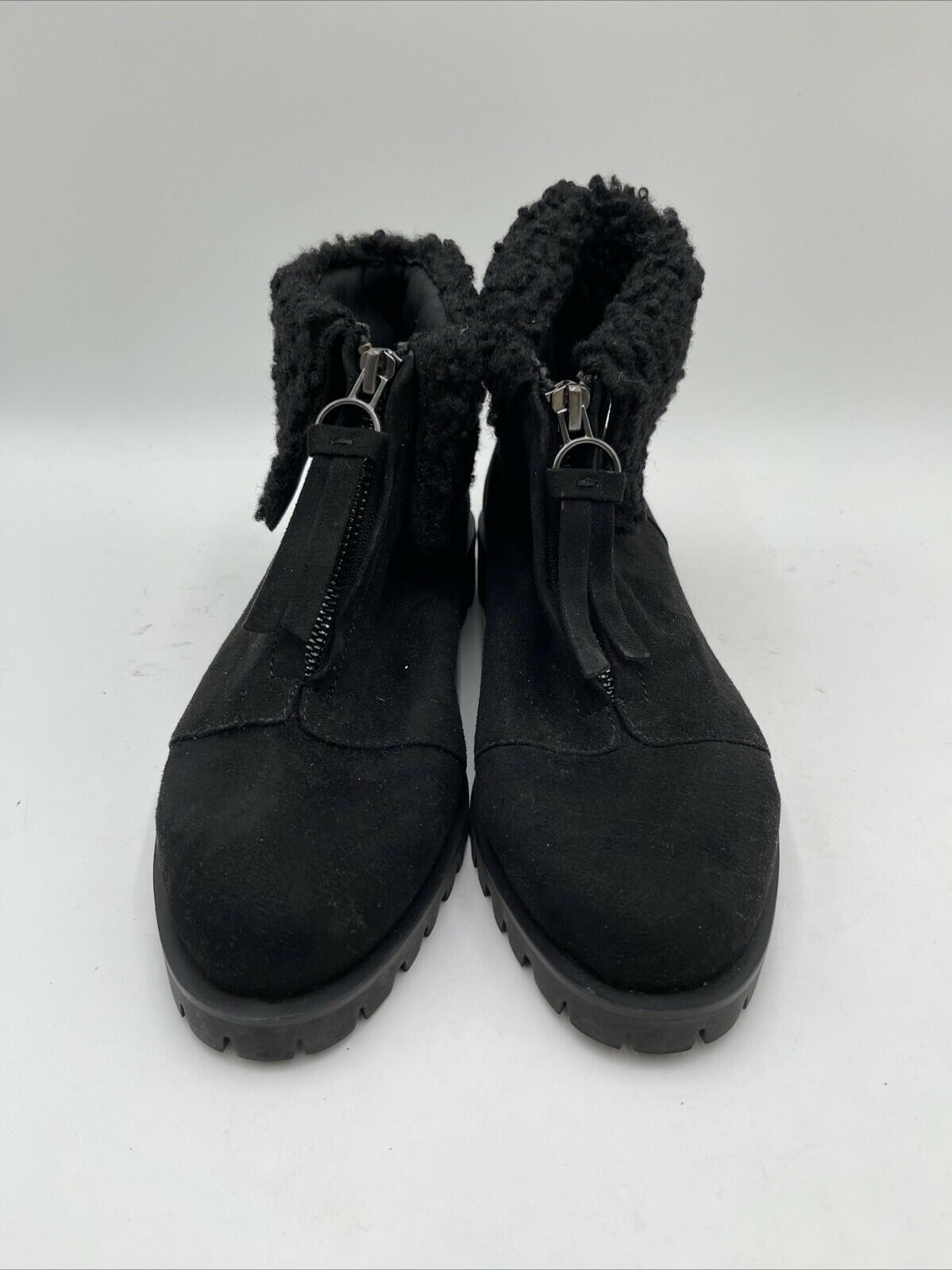 Saks Fifth Avenue Black Fabric/Faux Fur Round Toe Front Zip Ankle Boots Sz 6.5M - Very Good