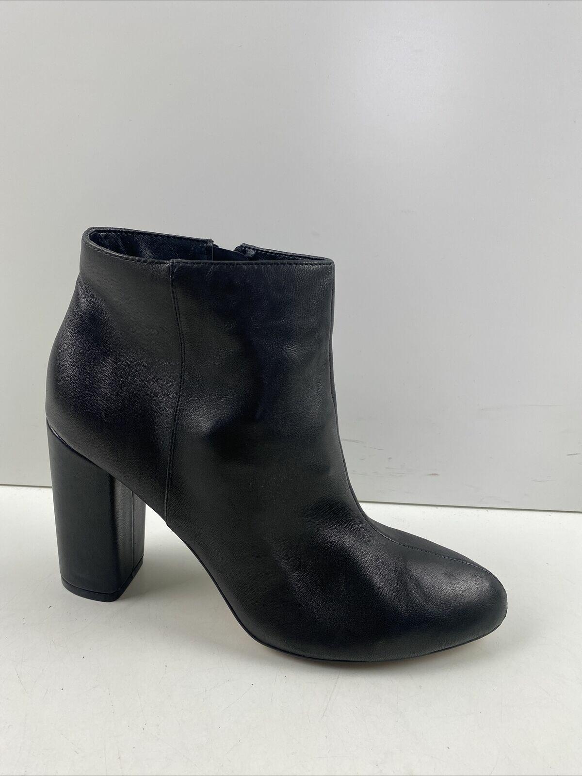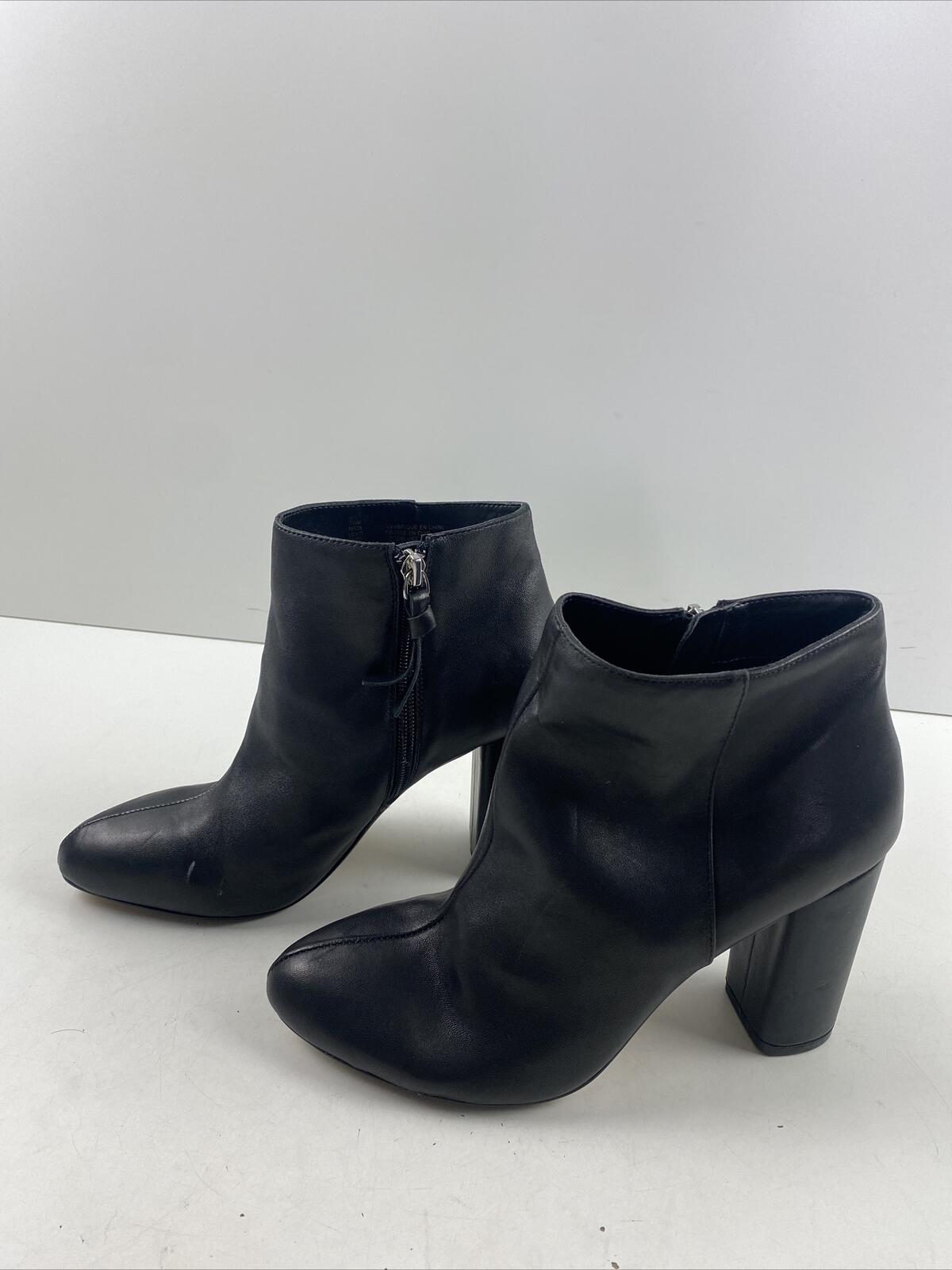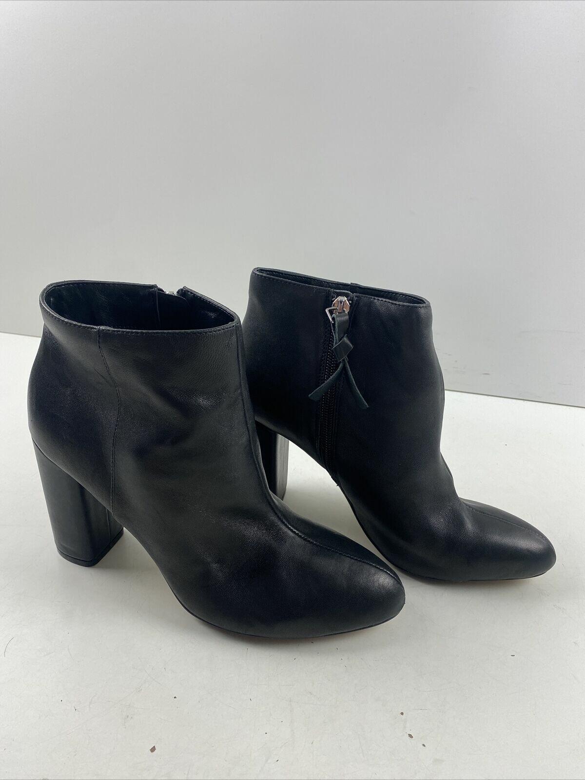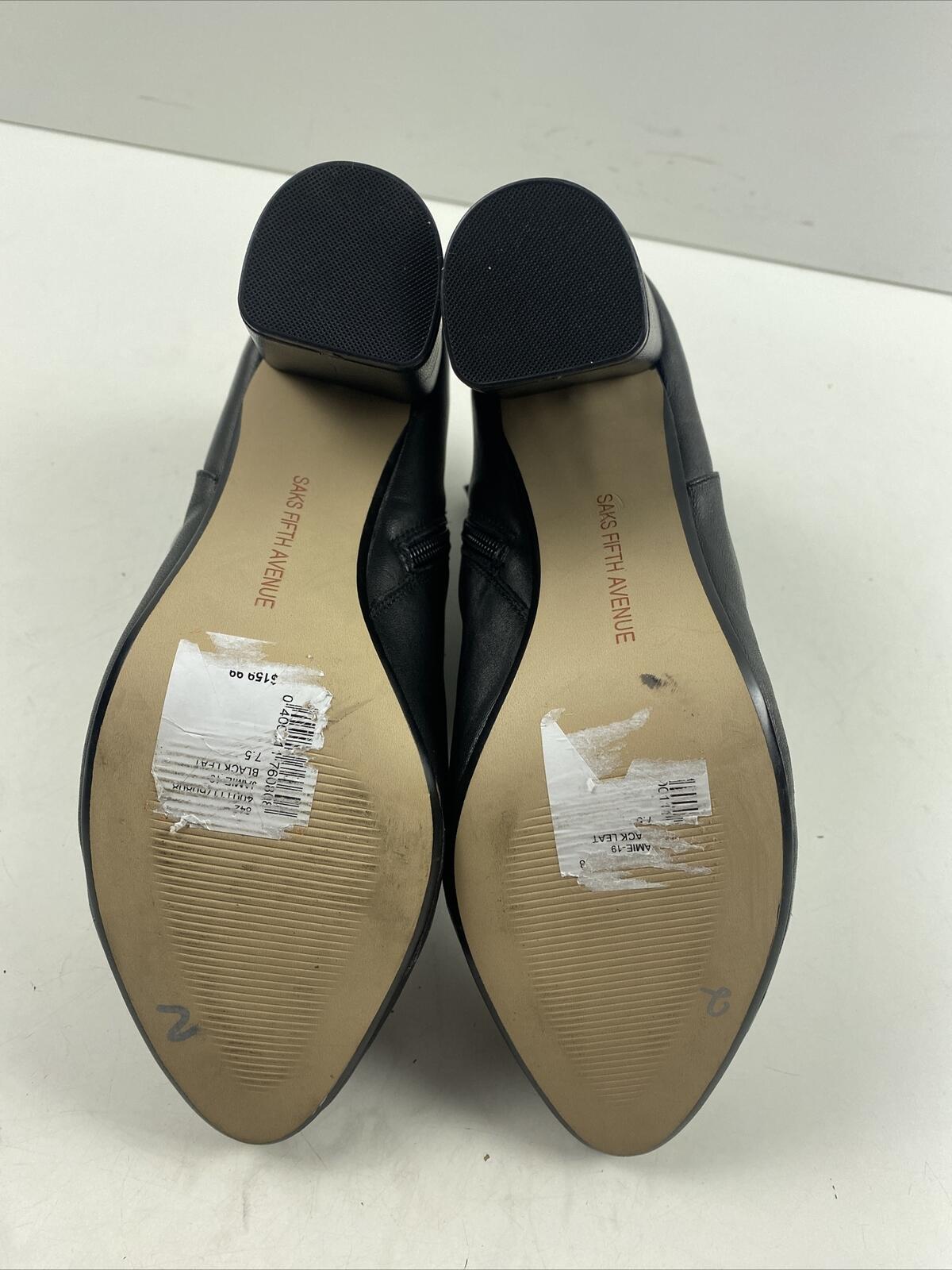 Saks Fifth Avenue JAMIE Black Leather Side Zip Block Heel Ankle Boots Size 7.5 M