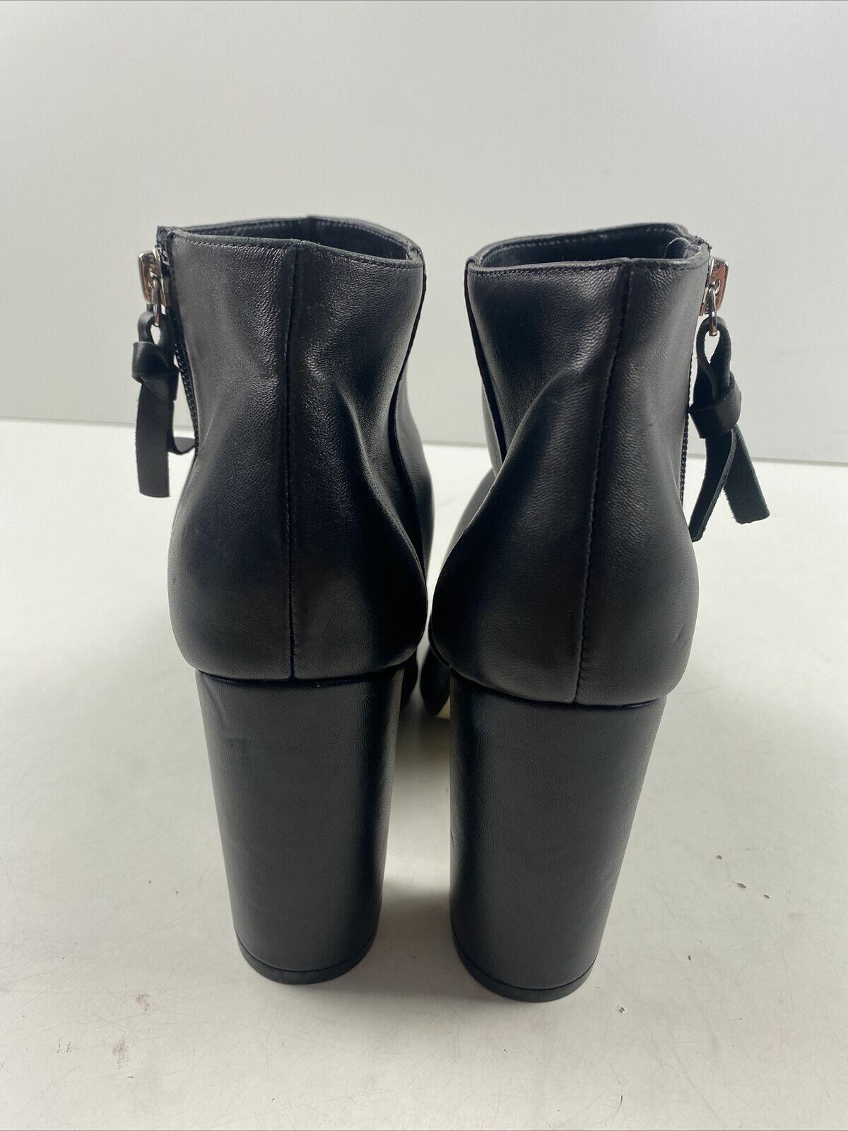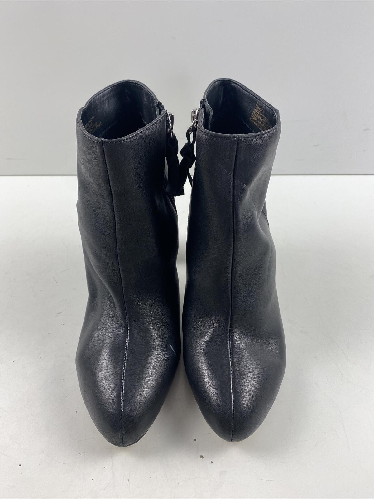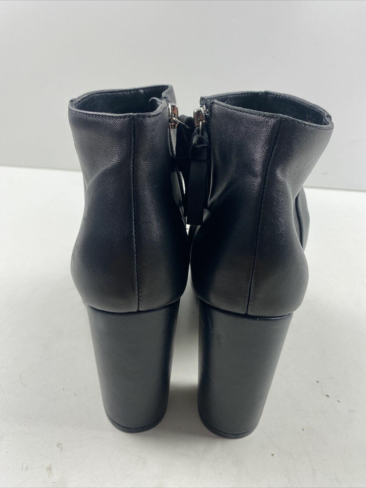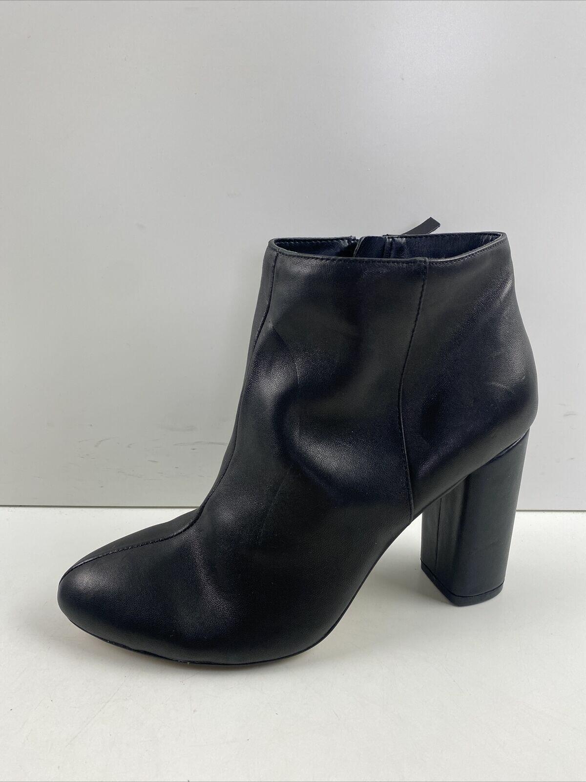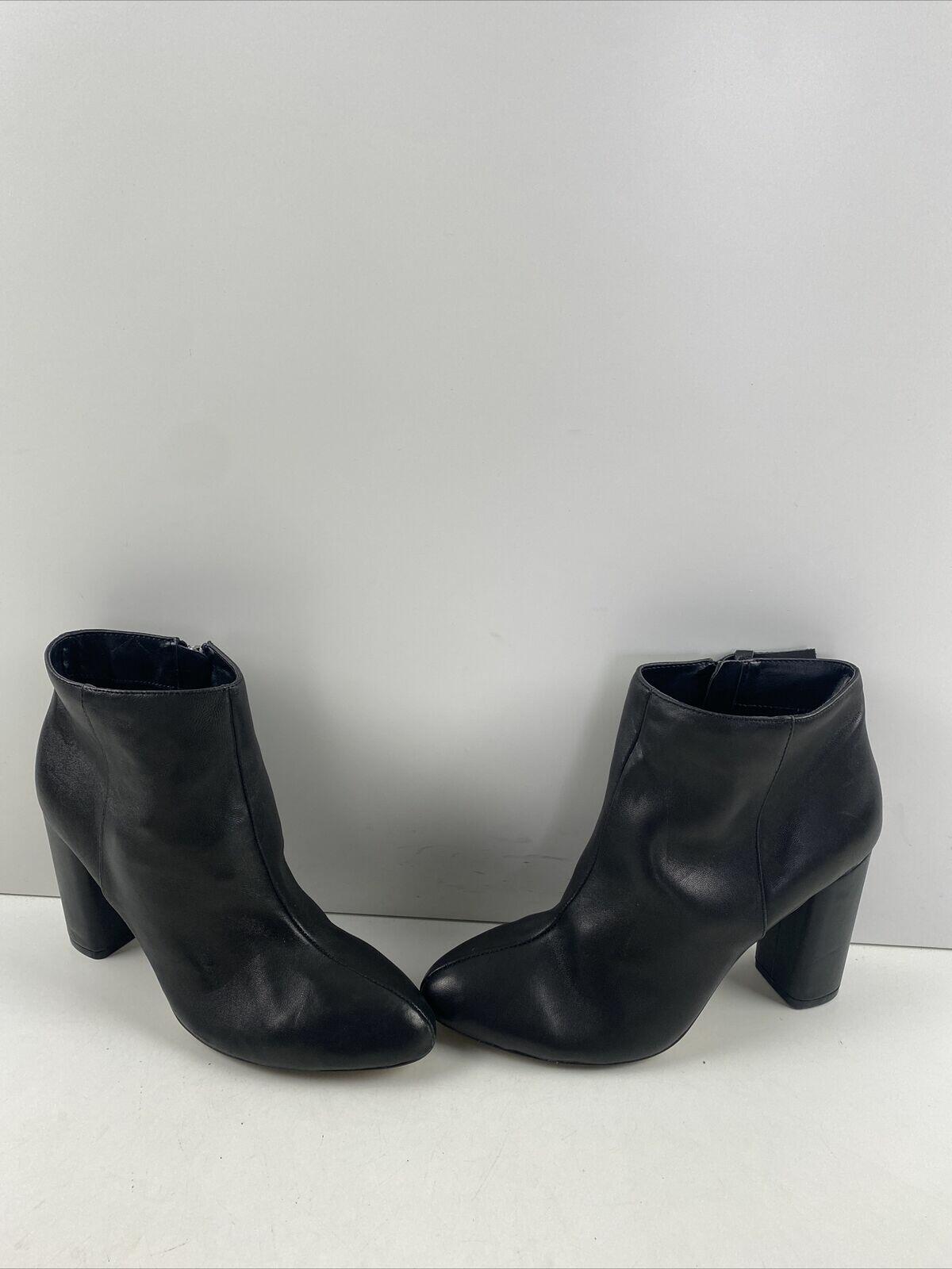 Saks Fifth Avenue JAMIE Black Leather Side Zip Block Heel Ankle Boots Size 7.5 M