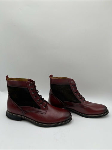 SAKS FIFTH AVENUE Mixed Media Leather & Suede Ankle Boots Red Size 10.5M - Very Good - Ufashion