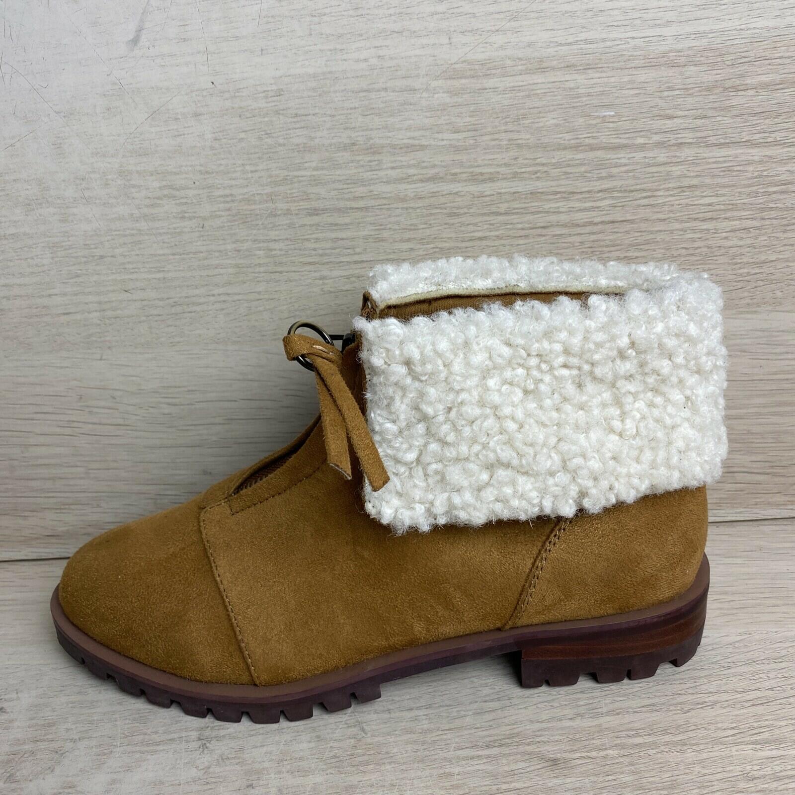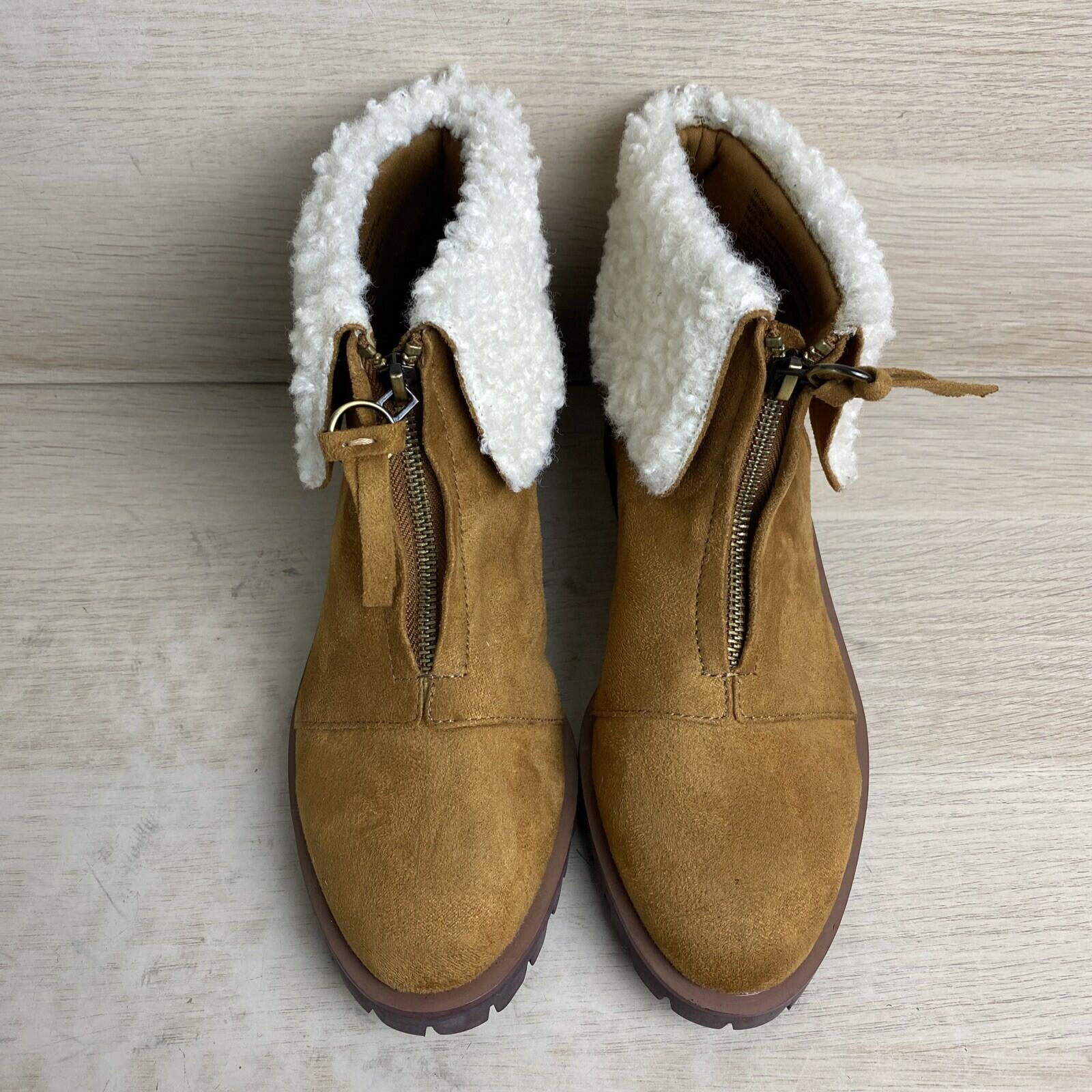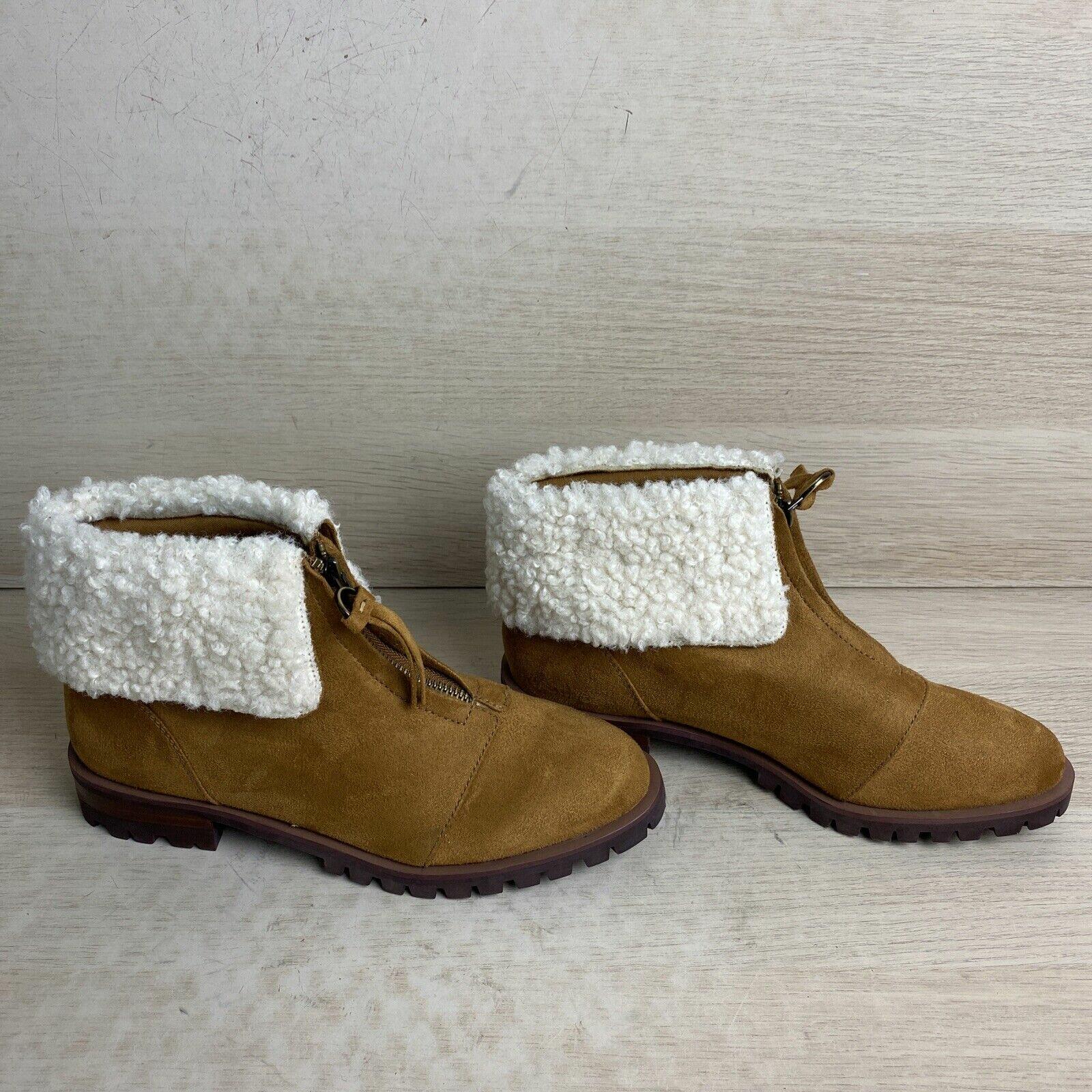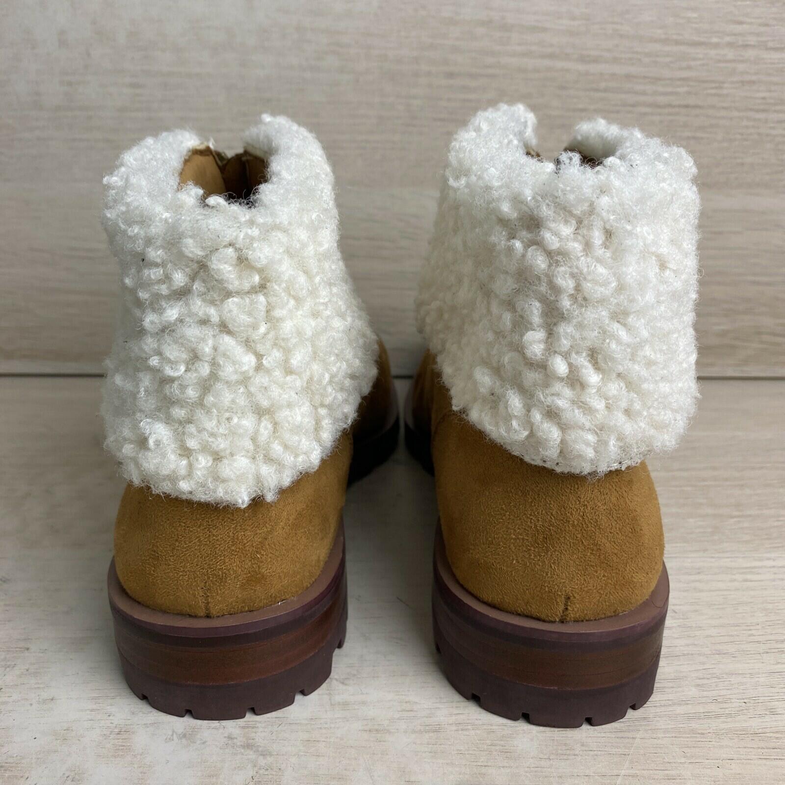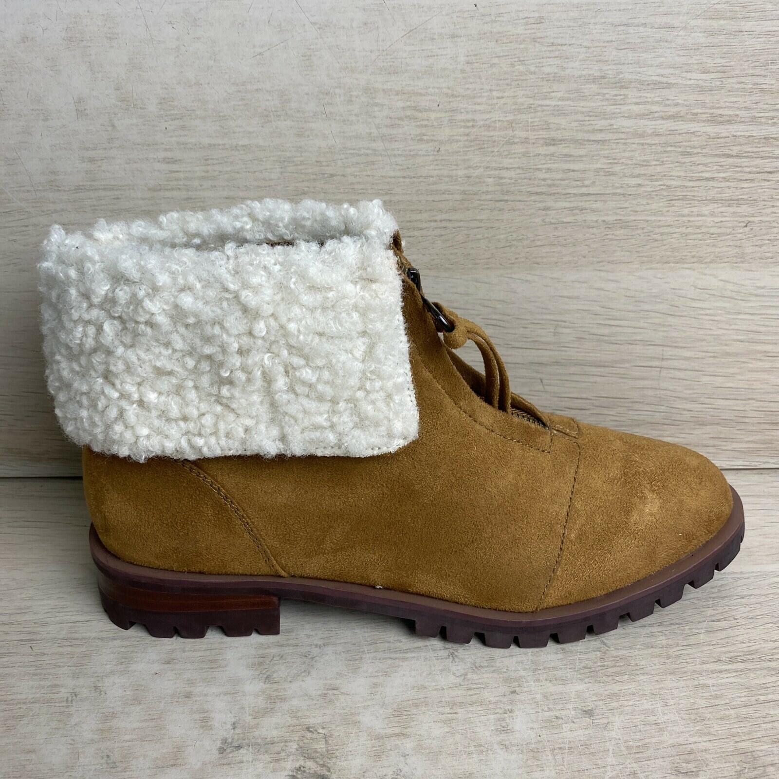 Saks Fifth Avenue Tan Fabric/Faux Fur Round Toe Front Zip Ankle Boots, Size 8.5M - Ufashion Saks Fifth Avenue Tan Fabric/Faux Fur Round Toe Front Zip Ankle Boots, Size 8.5M - Ufashion