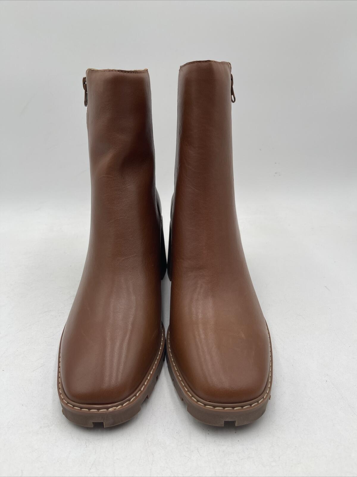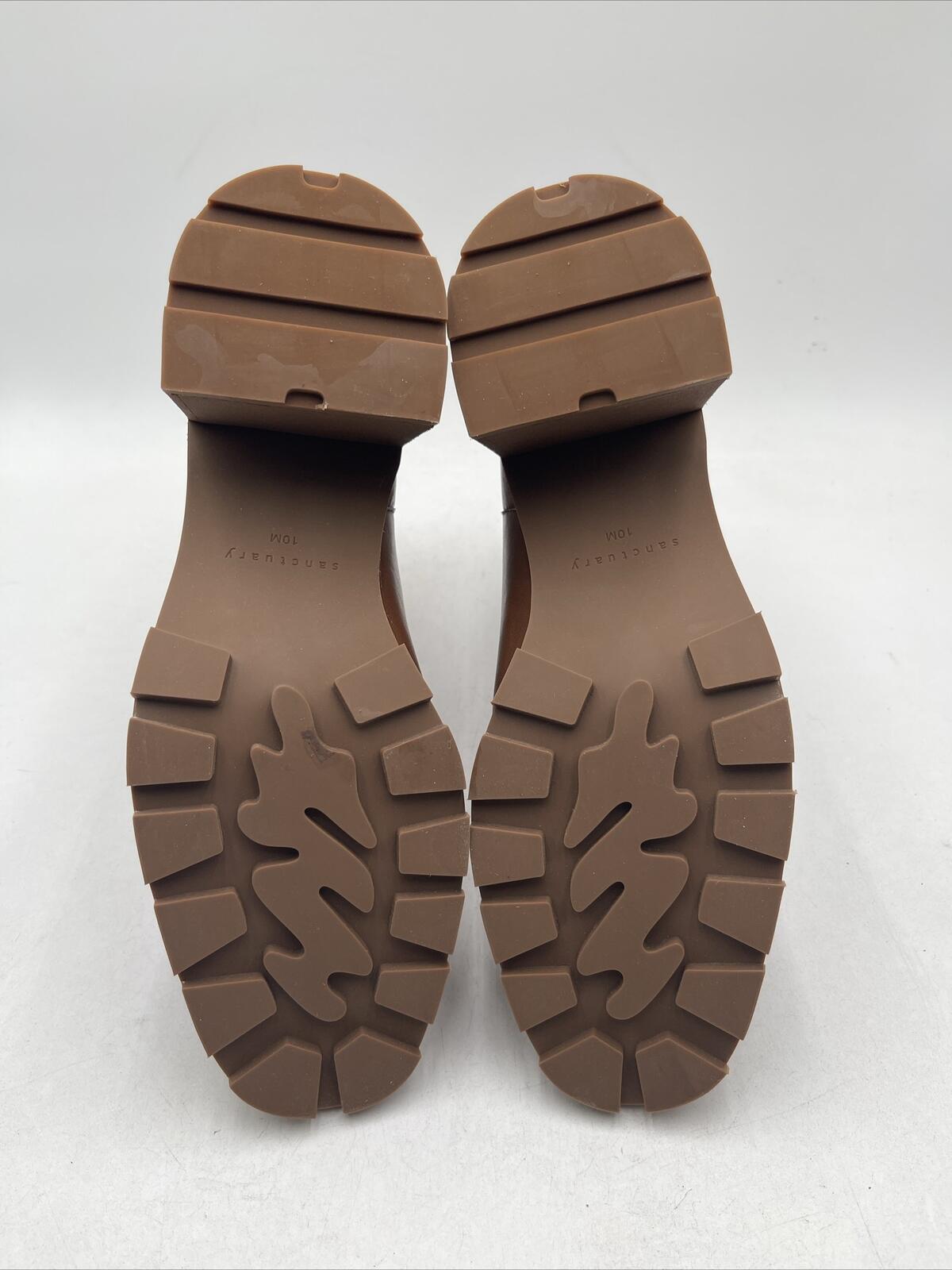 -Light creases on upperThese stylish Sanctuary Primetime leather booties are a must-have addition to any fashion-forward woman's wardrobe. The square toe and ankle shaft style offer a versatile look that is perfect for both casual and business occasions. The mid-height block heel provides comfort and support, making them suitable for all-day wear. The brown color adds a touch of sophistication to any outfit, while the quality leather upper material ensures durability and longevity. These booties are available in size 10 and are not customized.