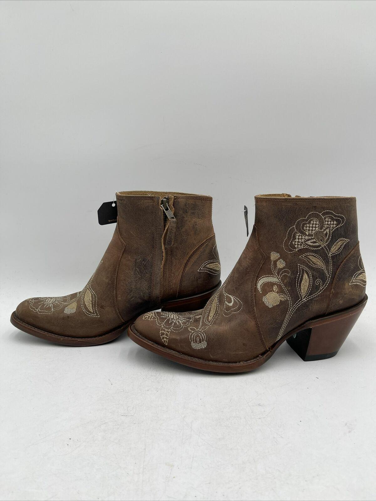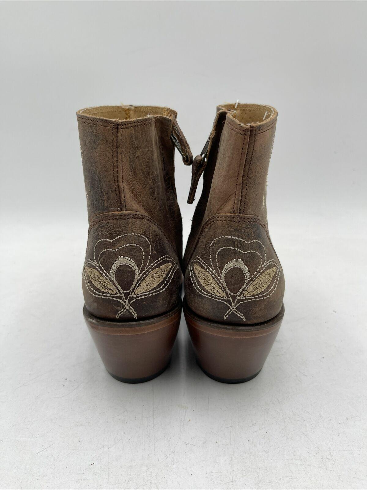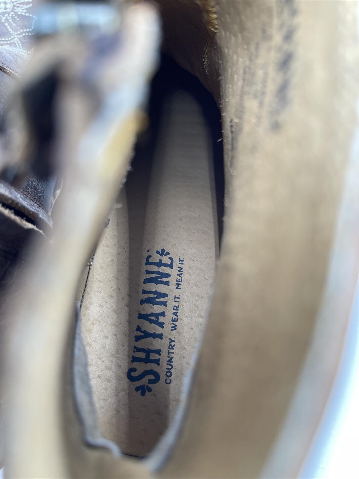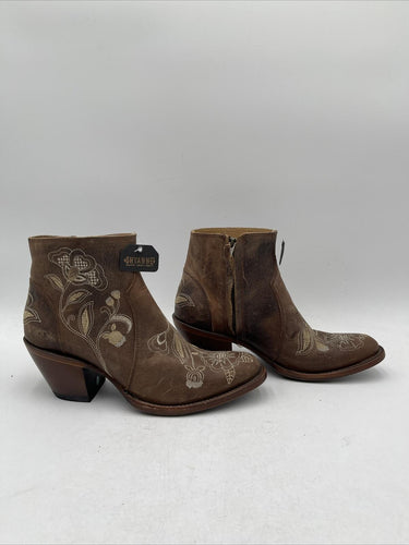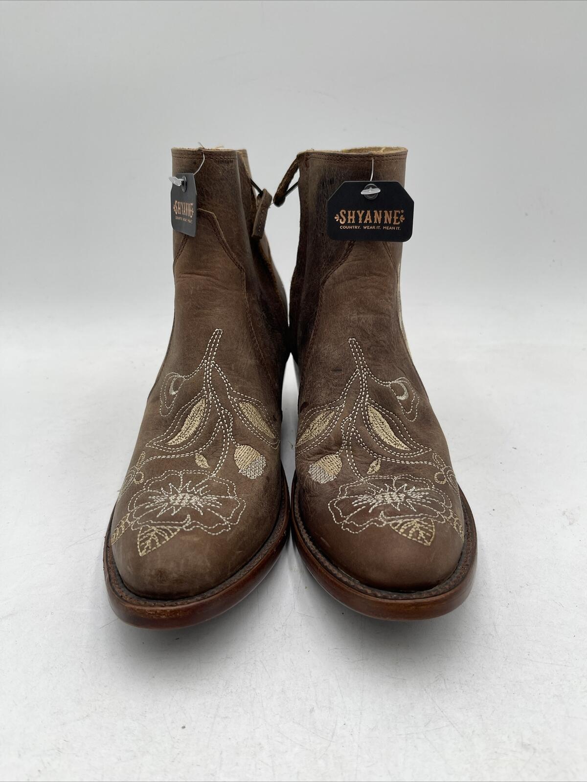 Shyanne Women's Summer Arena Western Booties are a comfortable and stylish choice for summer travel and parties. These ankle boots feature a medium toe shape, mid-height block heel, and embroidered floral pattern on brown leather. The leather lining and insole provide added comfort. The Western-style booties have a leather outsole and are designed for women with medium calf width and shoe size 7.5M. The Summer Arena model is perfect for those who love the cowboy/cowgirl theme.