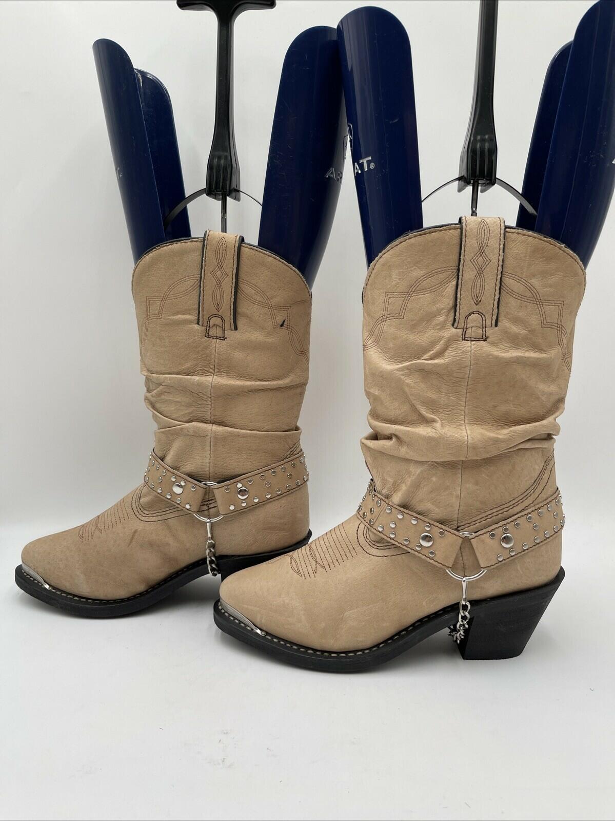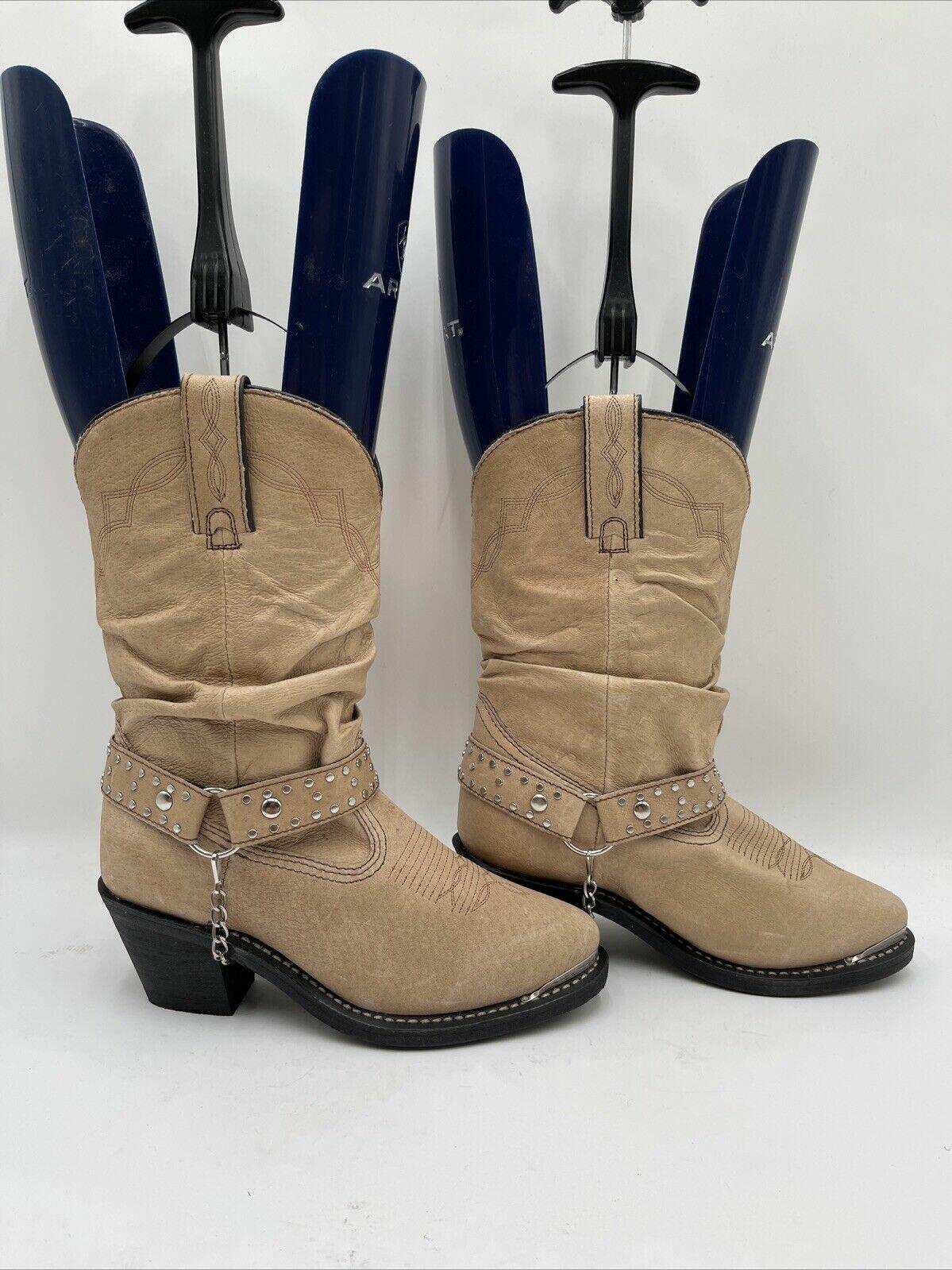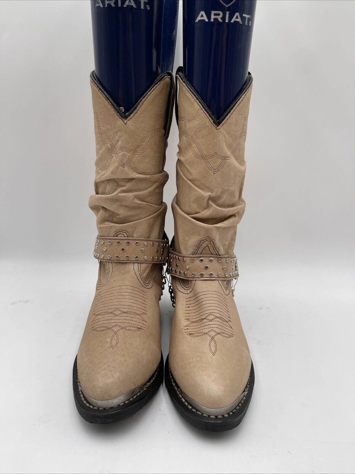 Shyanne Women's Tanya Slouch Harness Fashion Boots Beige Size 6 - Very Good