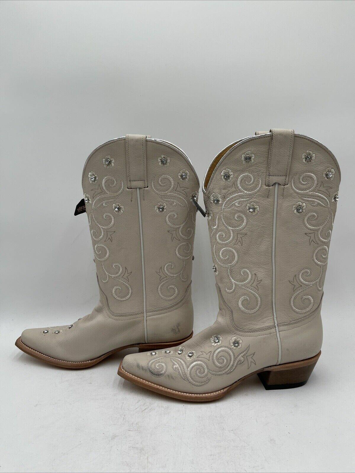 Shyanne Women's Victoria Hueso Studded Stitched Western Boots White Size 6M - Very Good - Ufashion