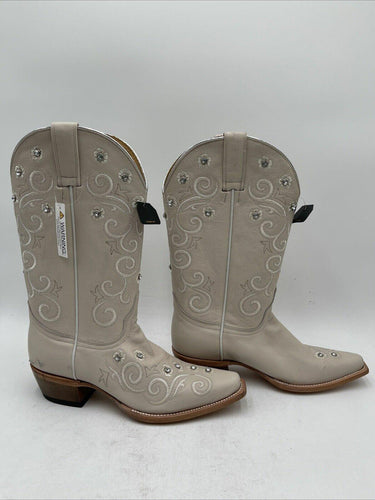 Shyanne Women's Victoria Hueso Studded Stitched Western Boots White Size 6M - Very Good
