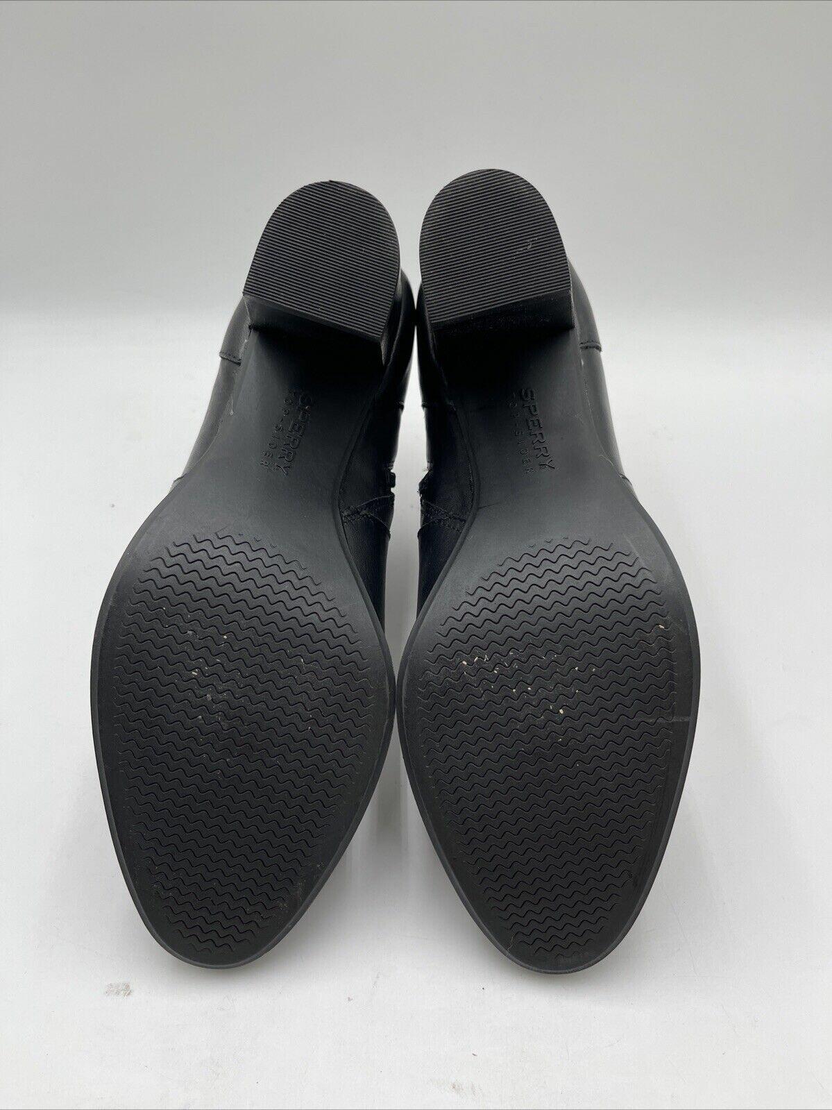 -Bottoms are barely wornElevate your casual style with these black Sperry Top-Sider Dasher Belle boots. Featuring a round toe and high block heel, these ankle boots are perfect for any occasion. The leather upper material is durable and the bootie style is trendy.