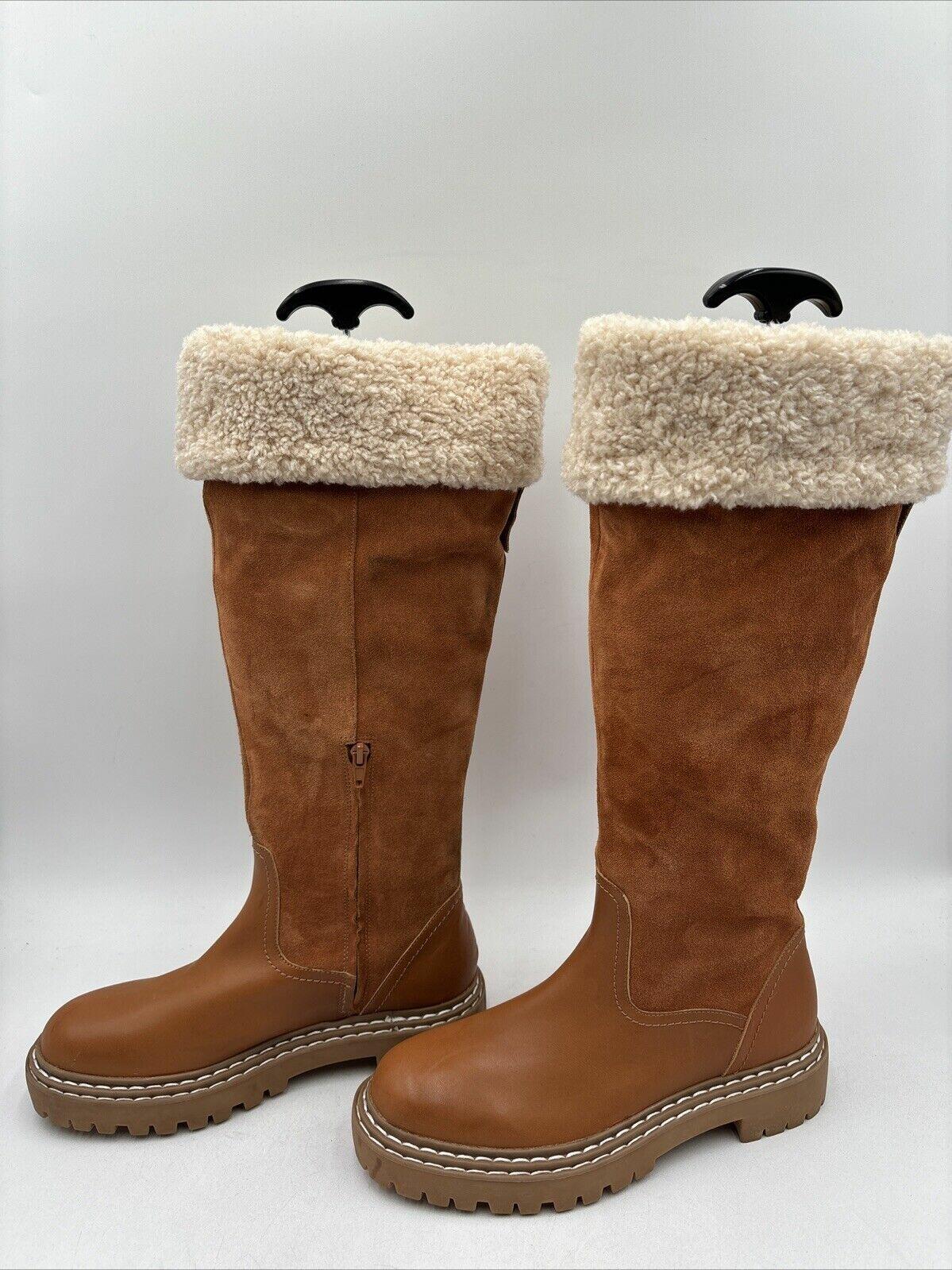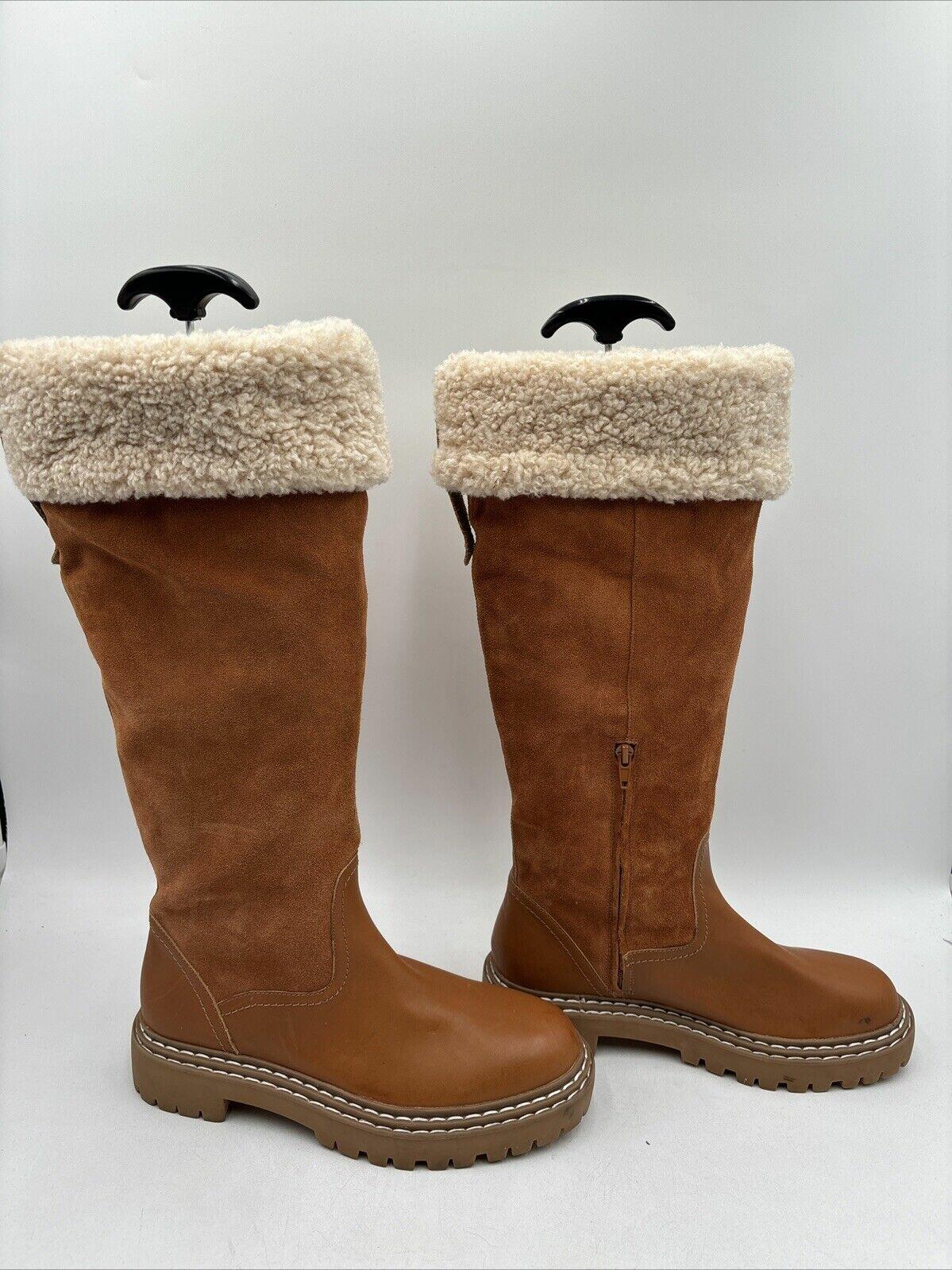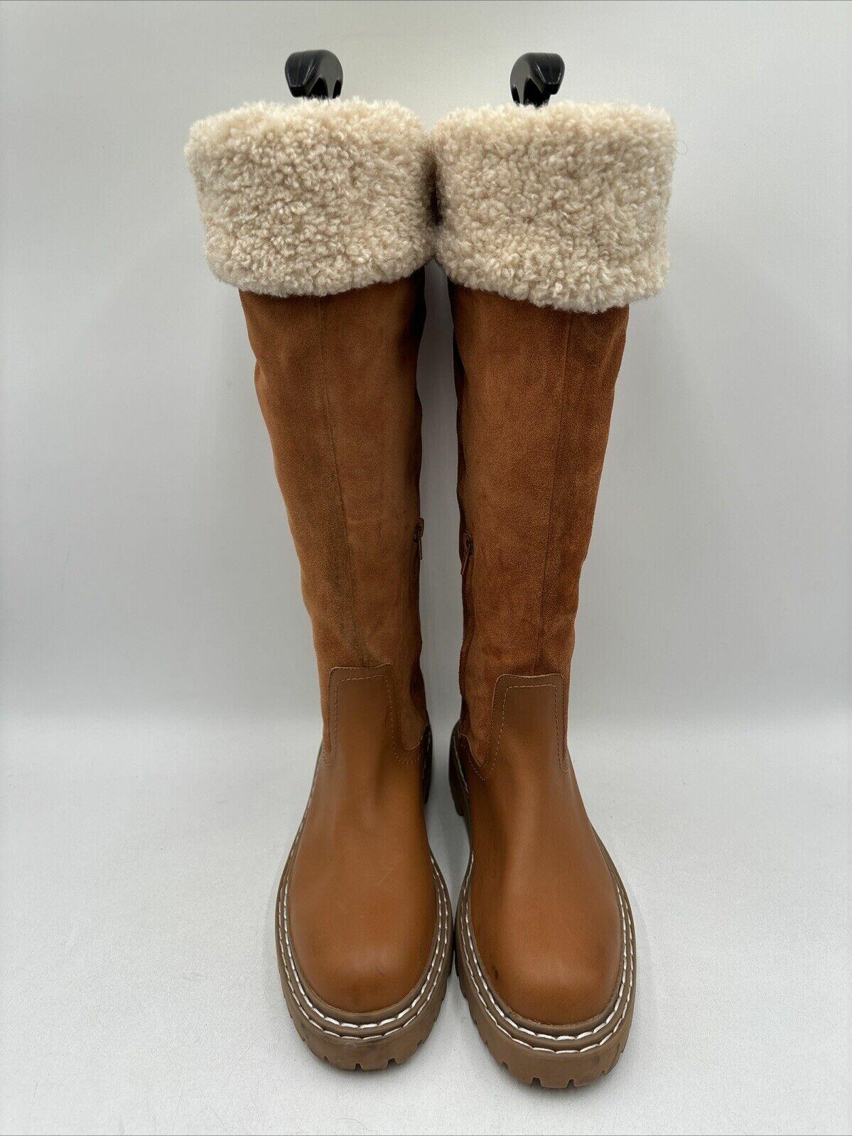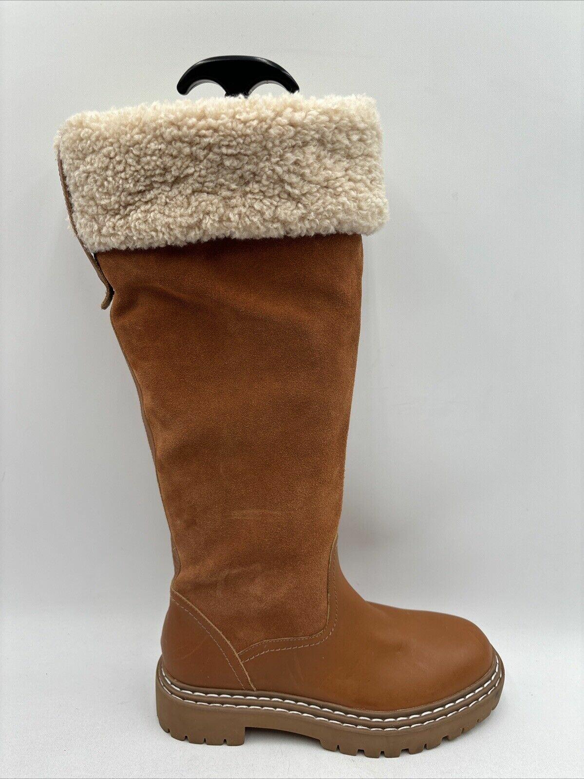 SPLENDID Antonia Brown Suede/Faux Shearling-Trim Round Toe Pull On Boot Size 9M - Very Good - Ufashion