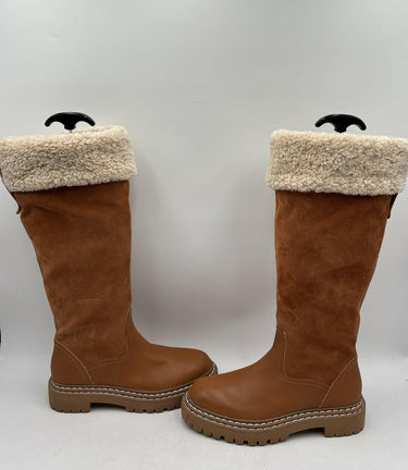 SPLENDID Antonia Brown Suede/Faux Shearling-Trim Round Toe Pull On Boot Size 9M - Very Good