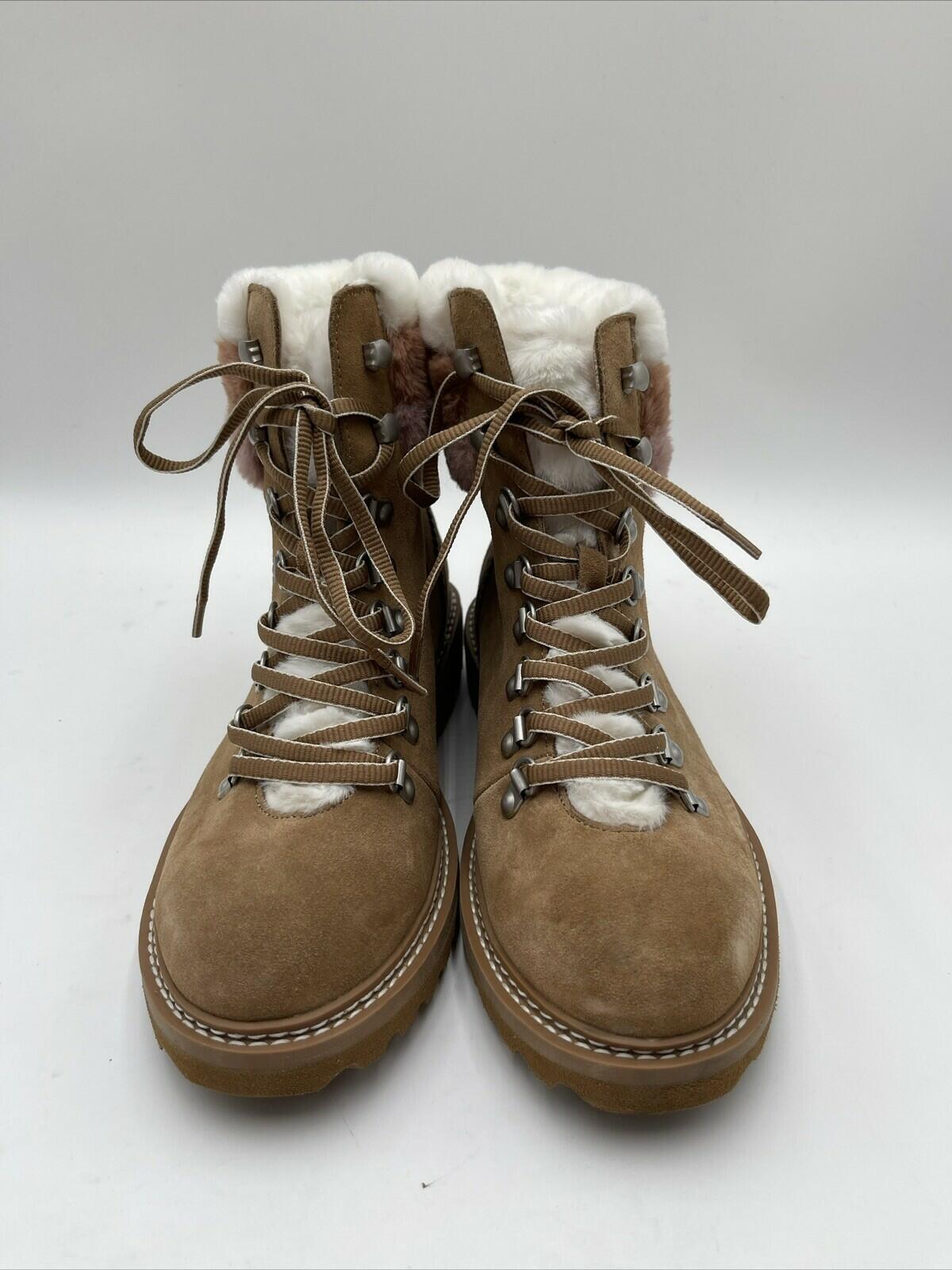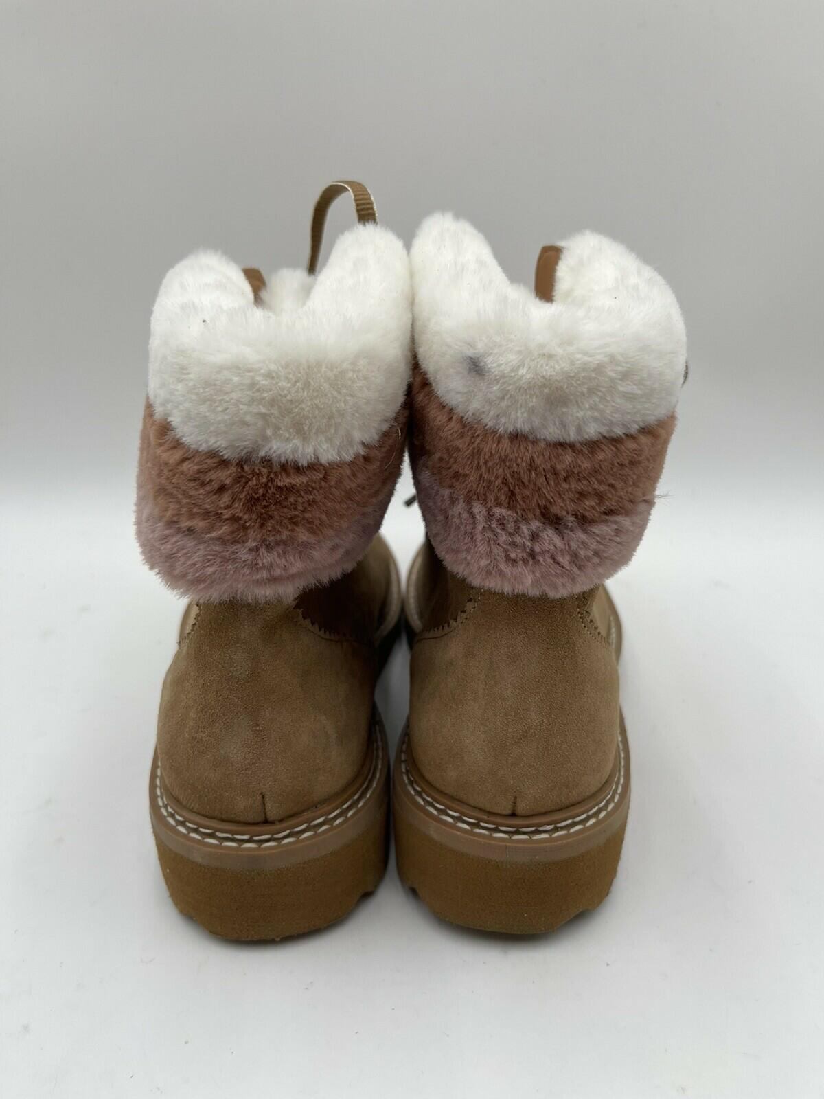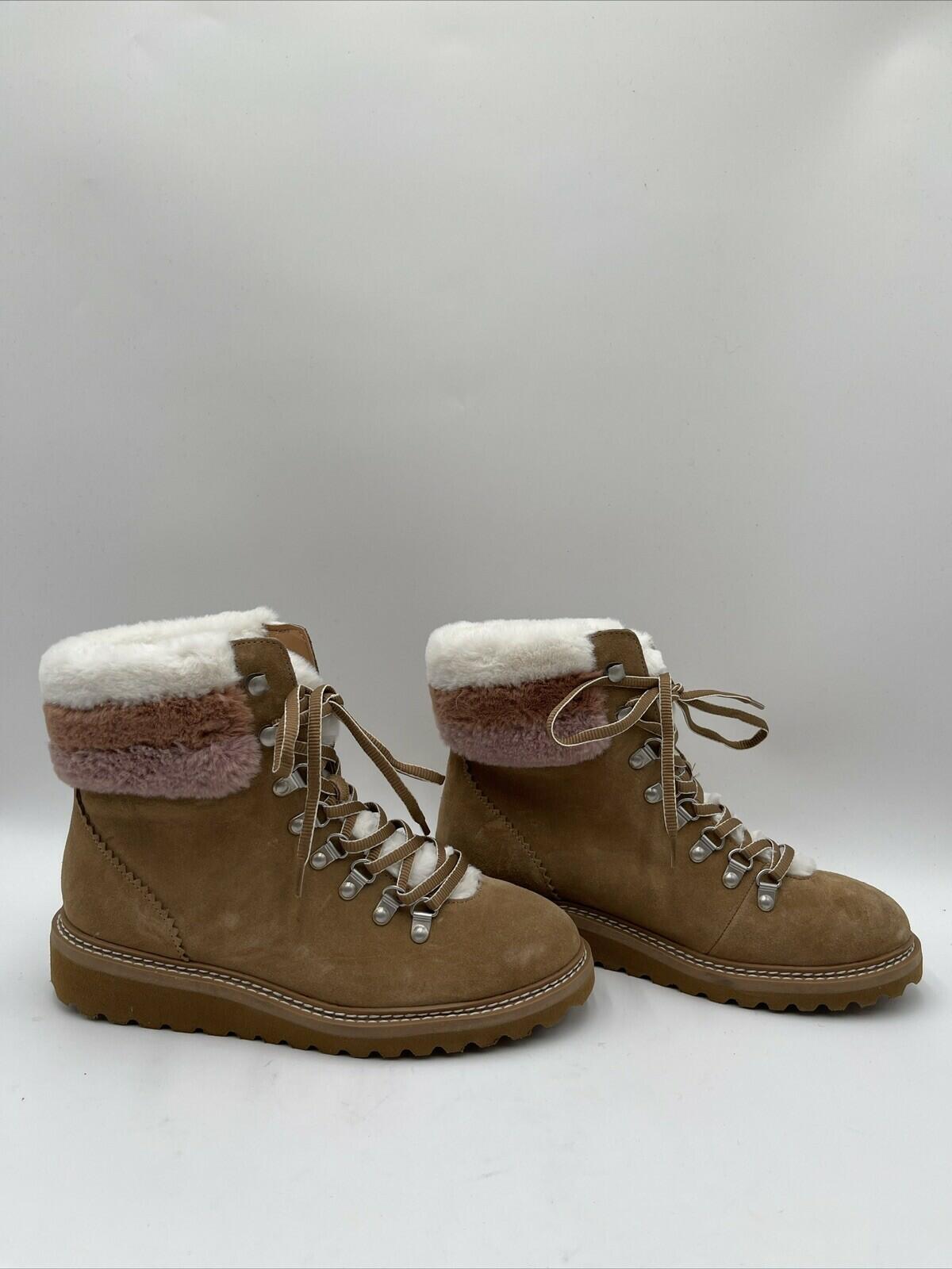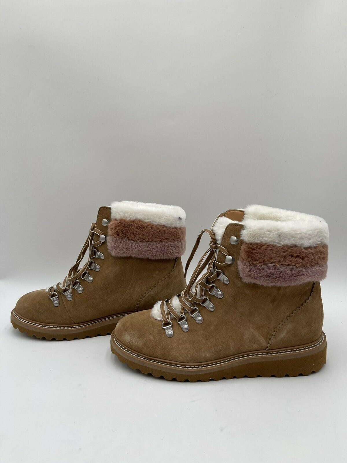 Splendid EVITA Brown Suede/Faux Fur Lined Lace Up Hiker Boots, Size 8M - Very Good