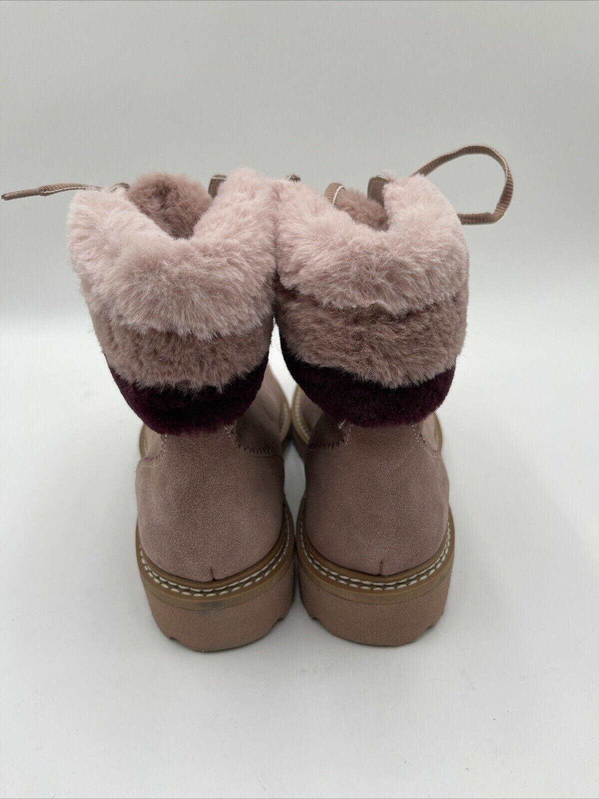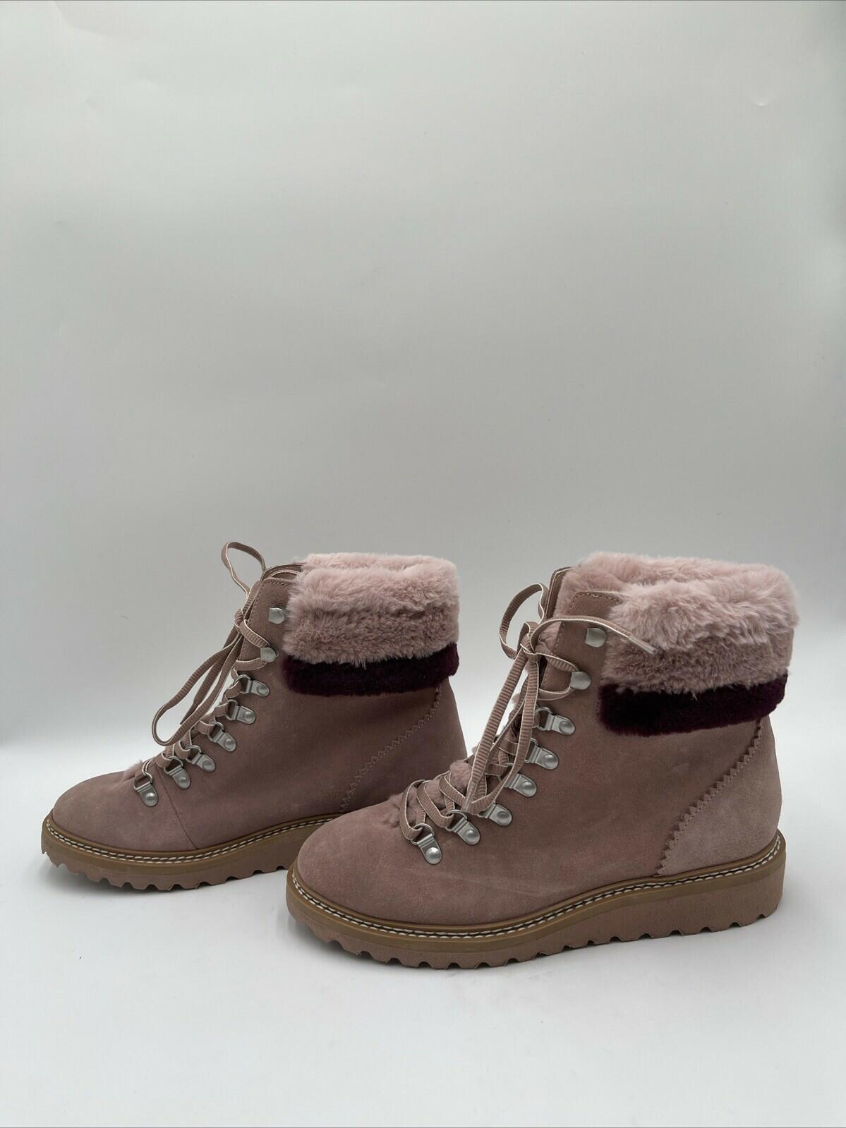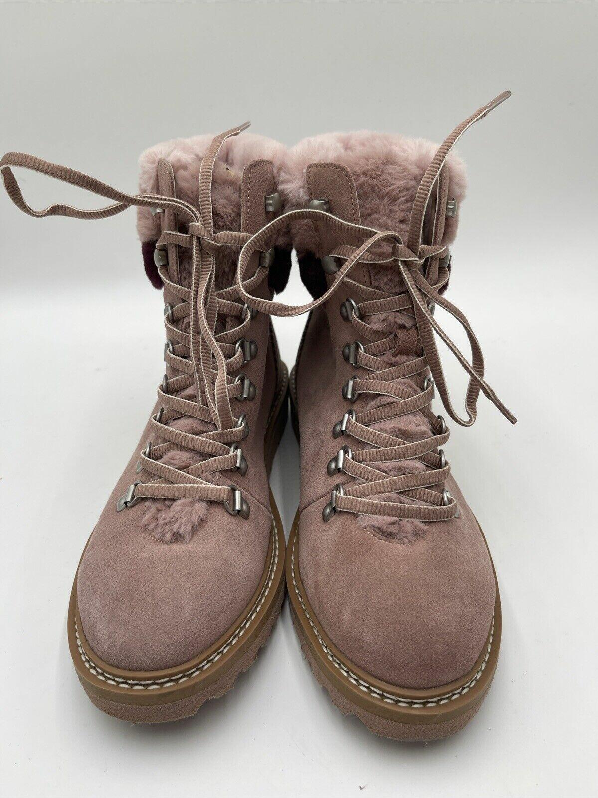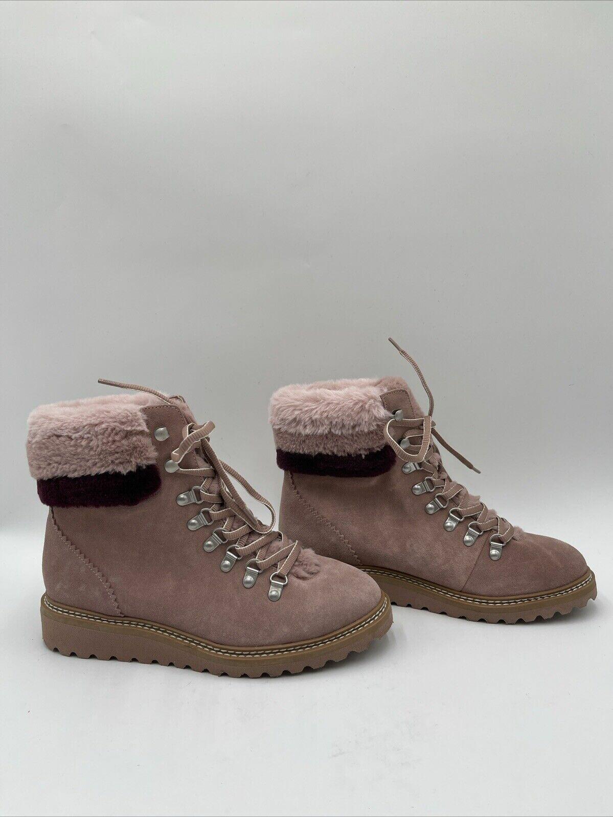 Splendid EVITA Pink Suede/Faux Fur Lined Lace Up Hiker Boots, Size 8M - Very Good
