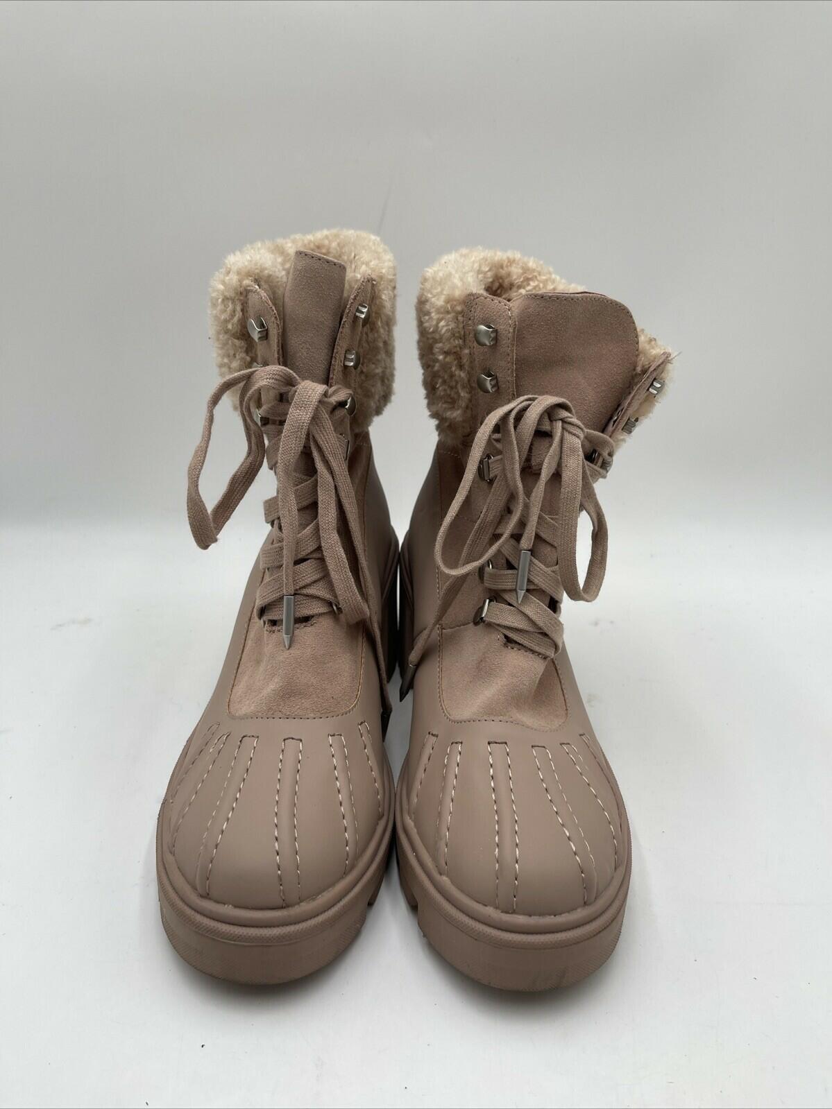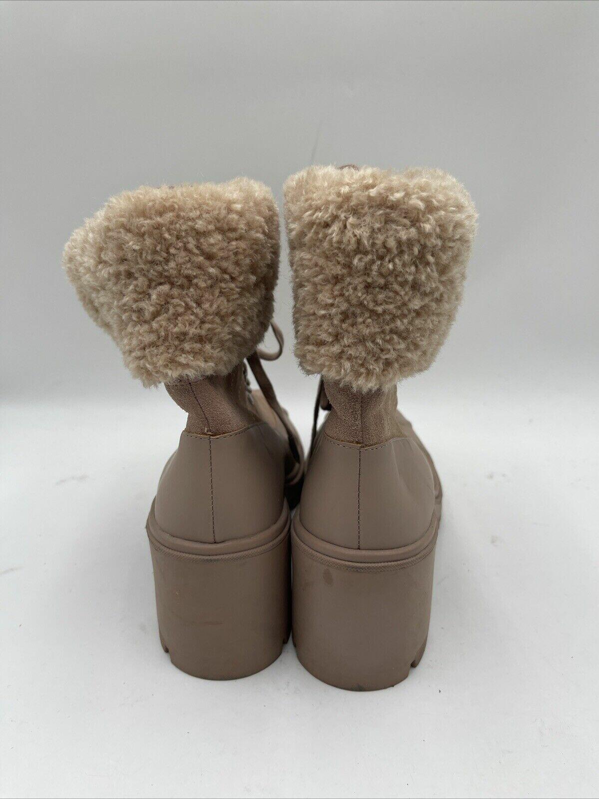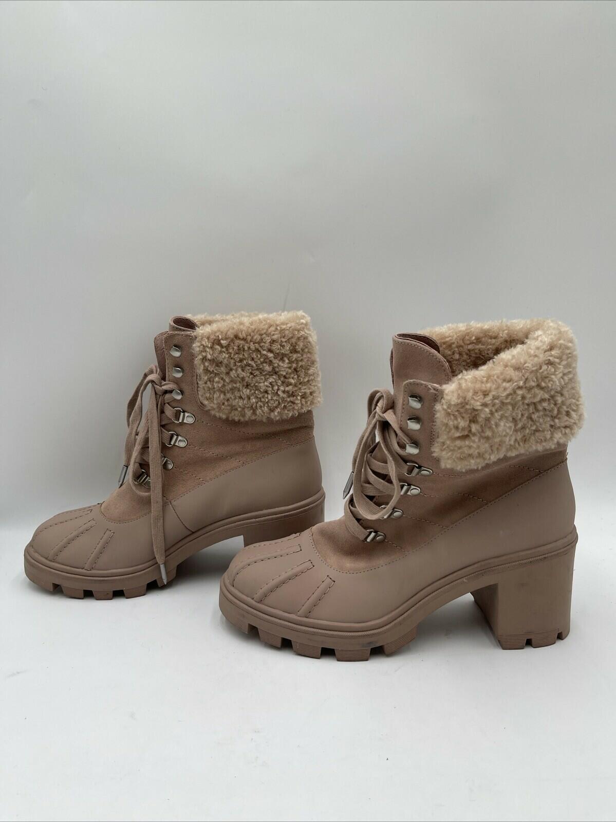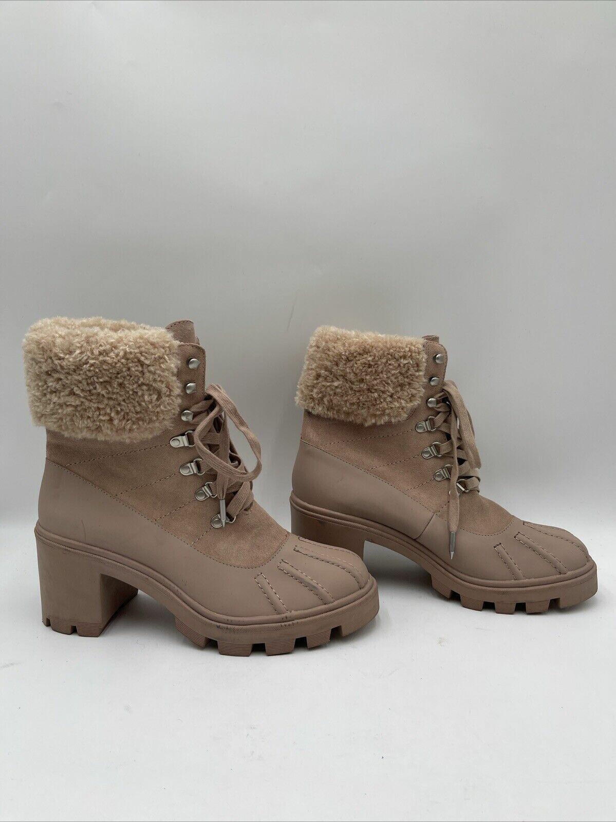 Splendid Mikayla Womens Leather Block Heel Combat & Lace-up Boots Beige Sz 9.5M - Very Good