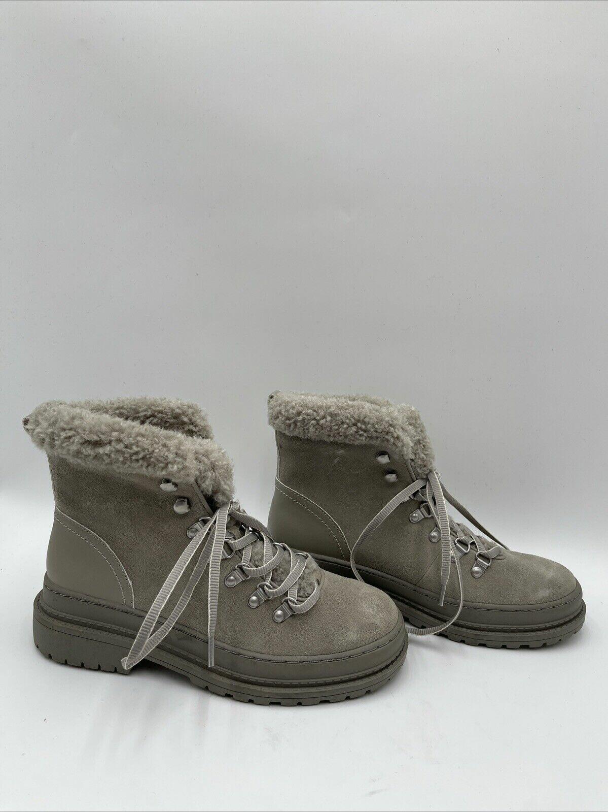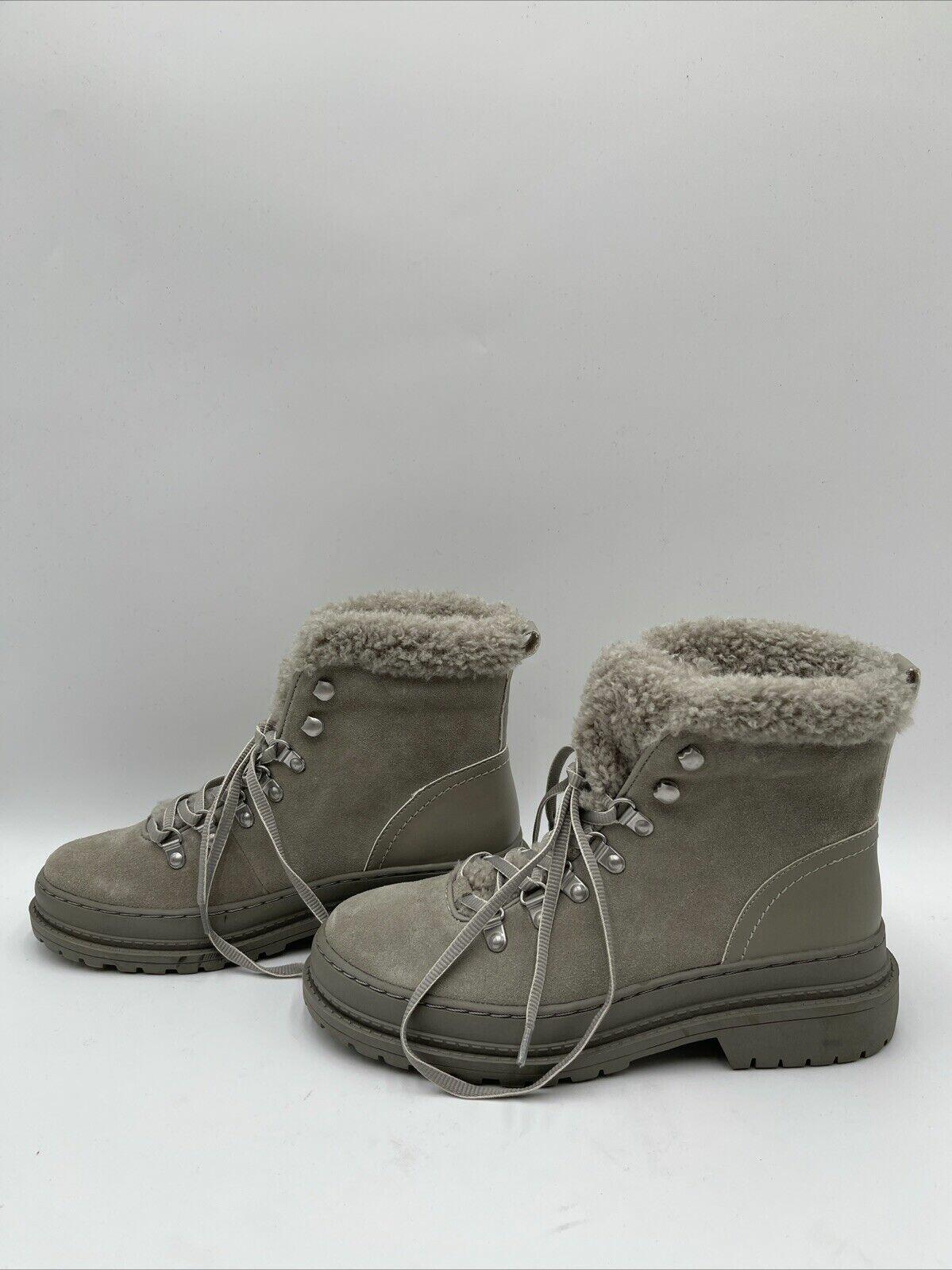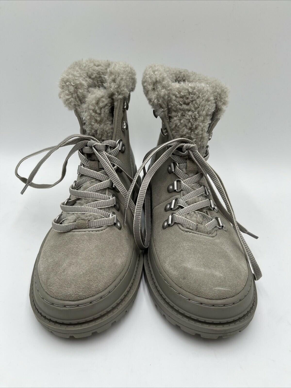 Splendid Yvonne Women’s Suede Faux Fur Trim Hiking Boots Beige Size 6.5M - Very Good