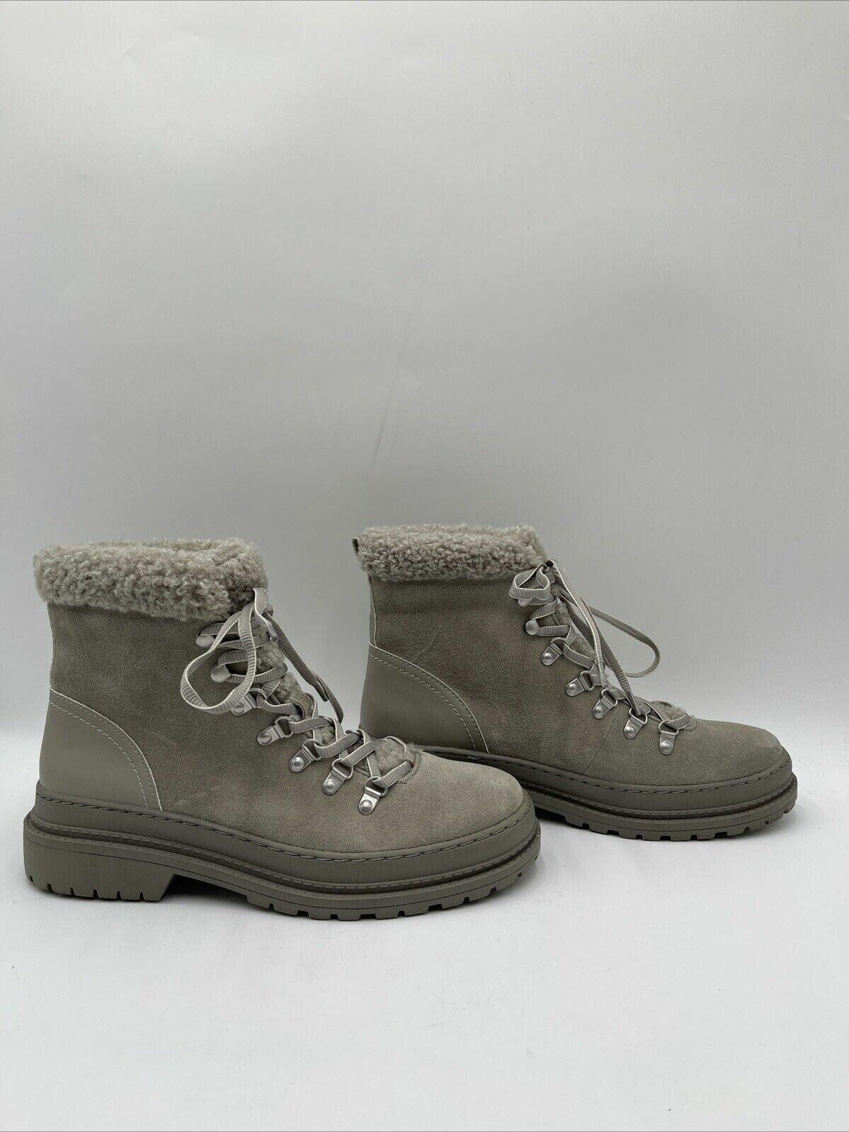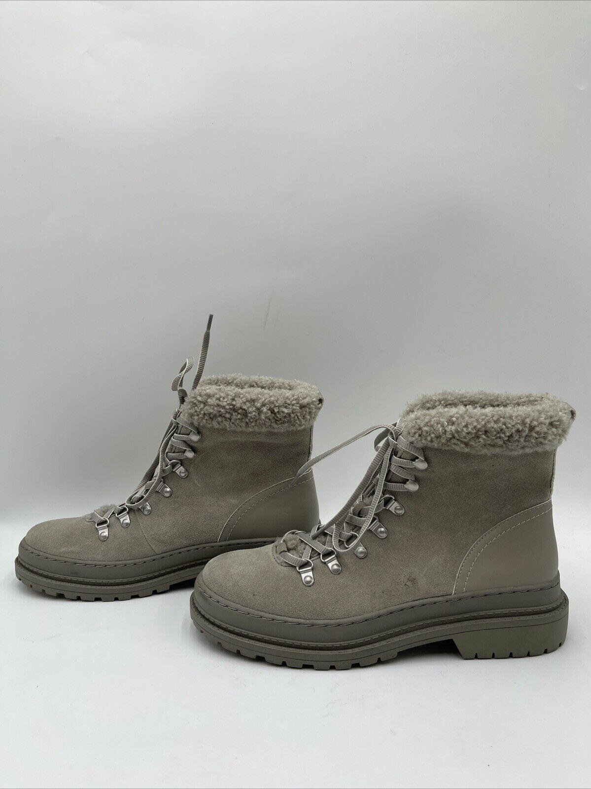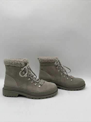 Splendid Yvonne Women’s Suede Faux Fur Trim Hiking Boots Grey Size 10M - Very Good