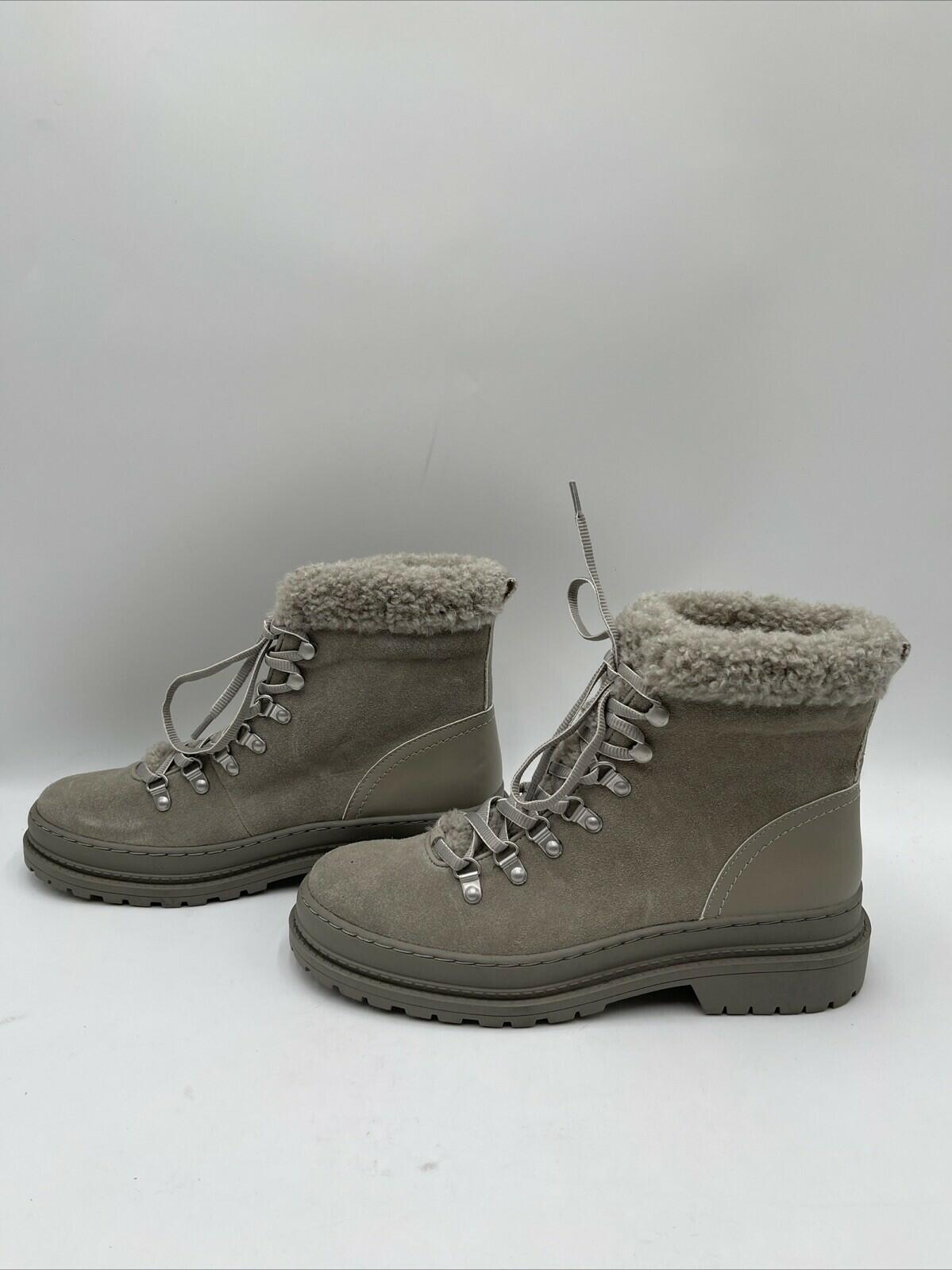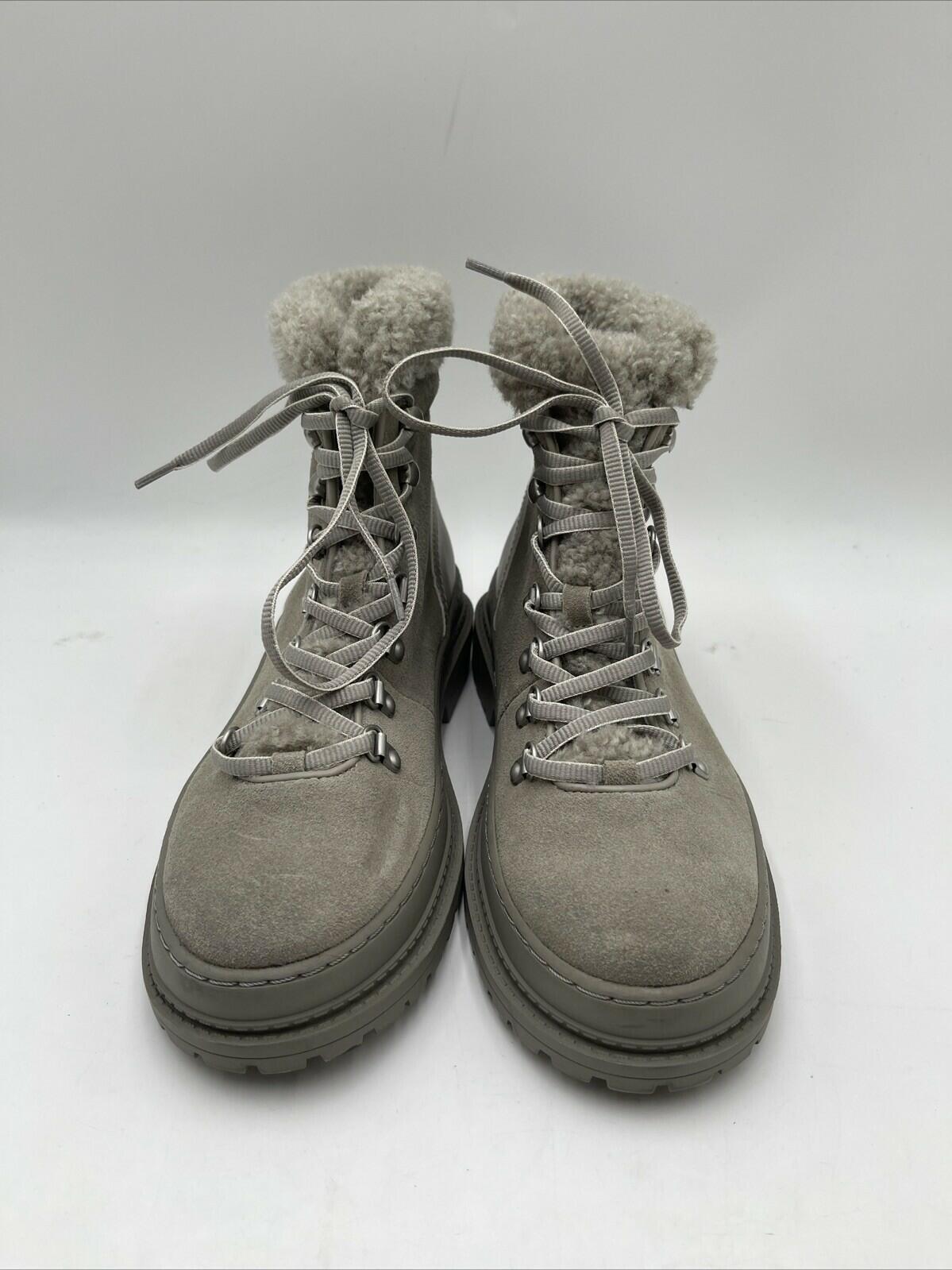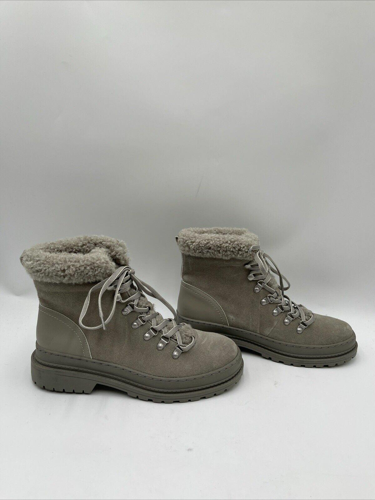 Splendid Yvonne Women's Suede Faux Fur Trim Hiking Boots Grey Size 8.5M - Very Good