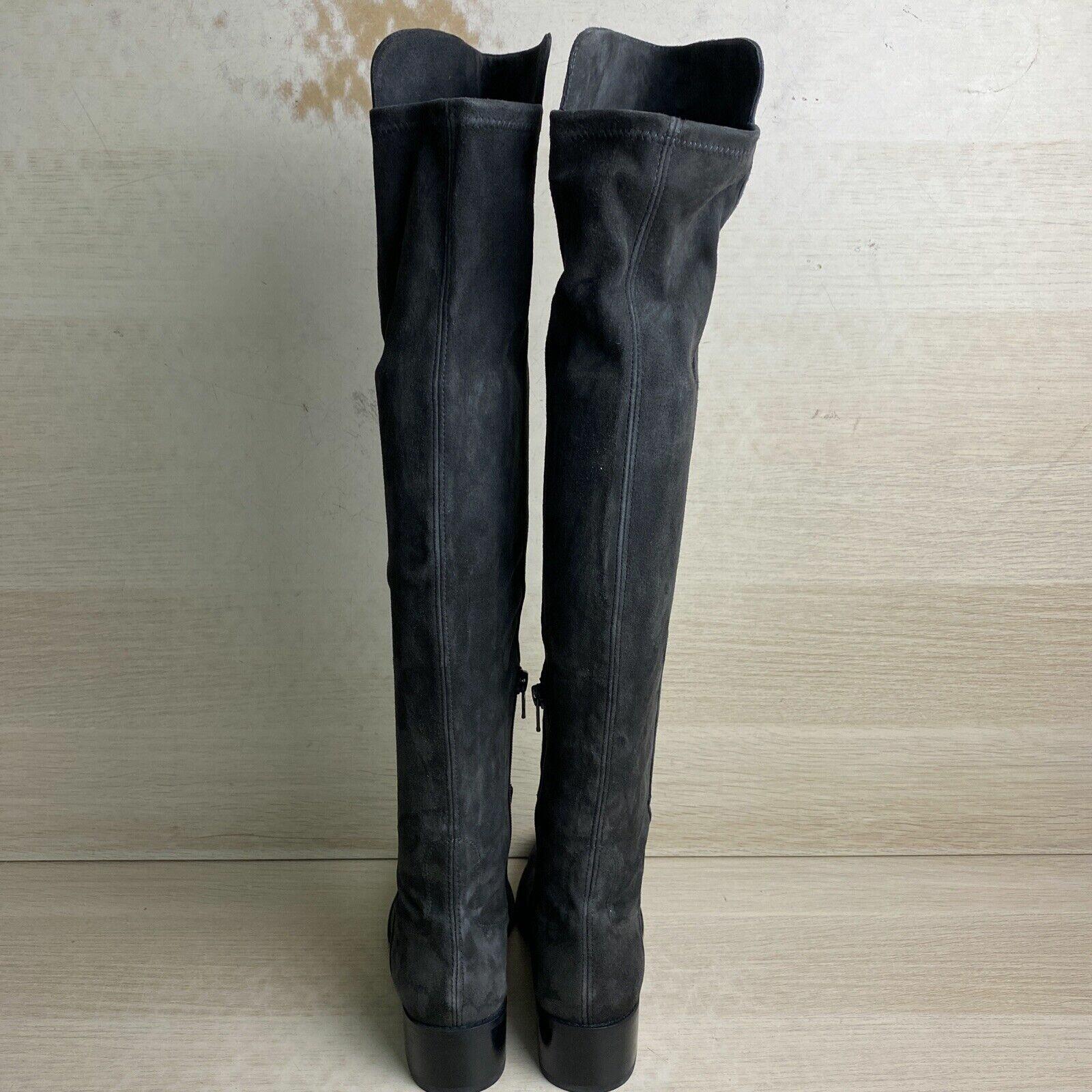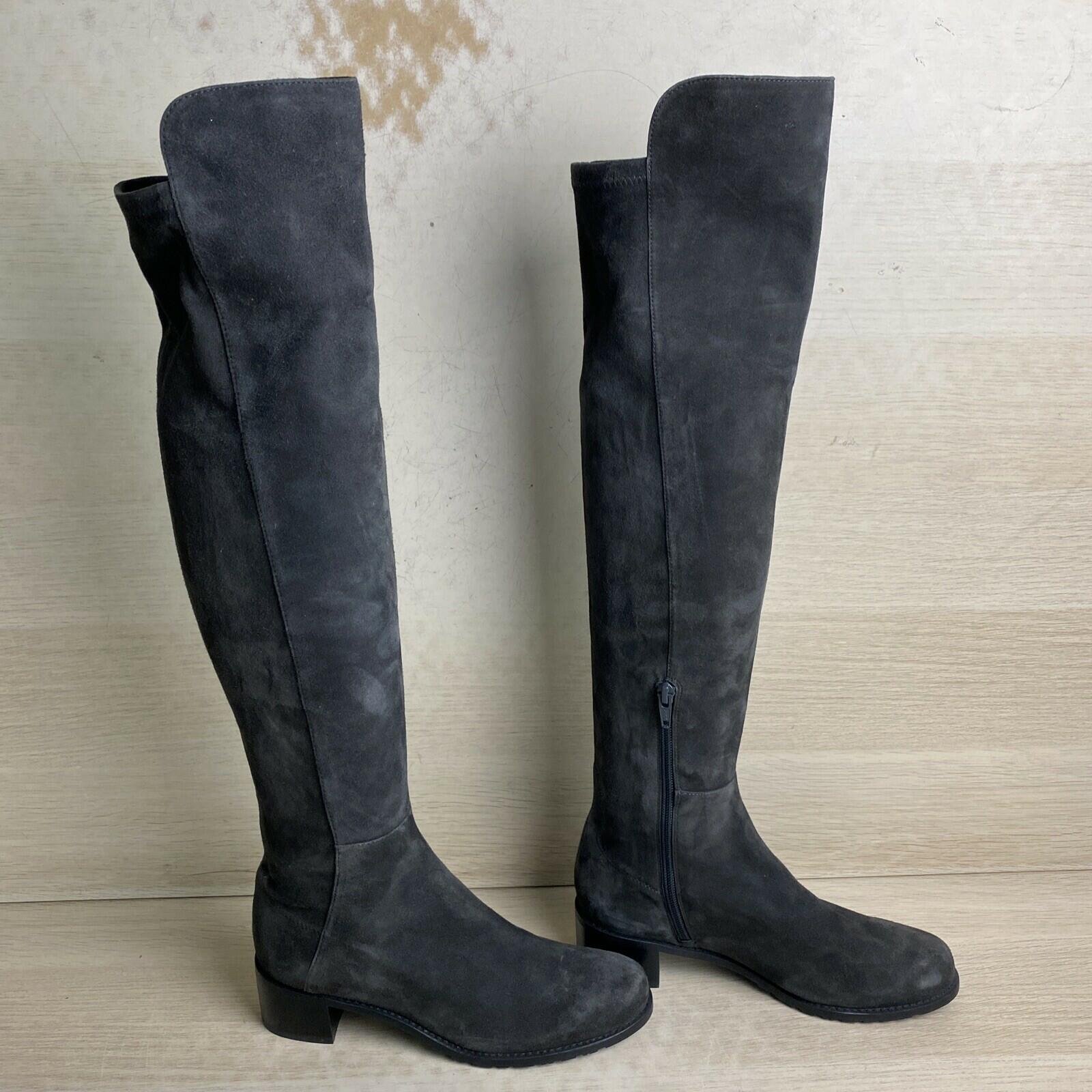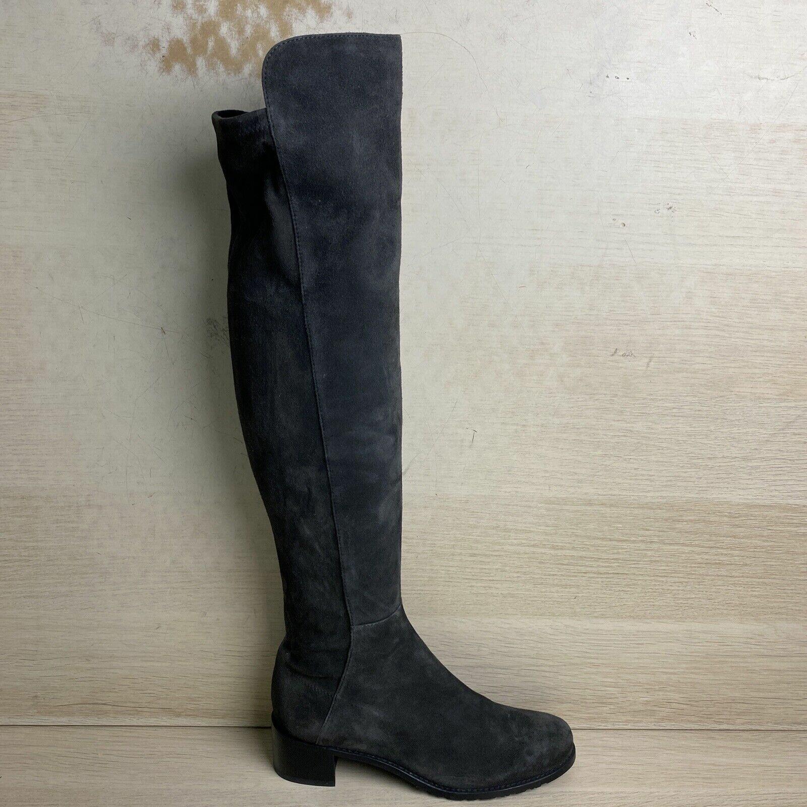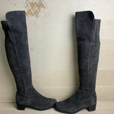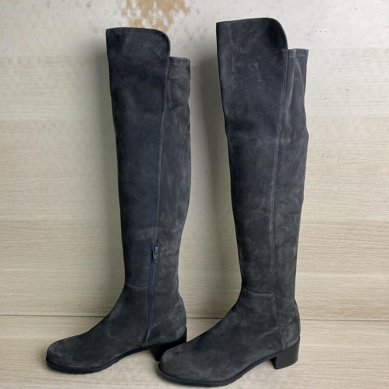 Stuart Weitzman “ALLSERVE” Charcoal Suede Round Toe Side Zip Knee High Boots, 6B
