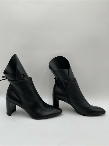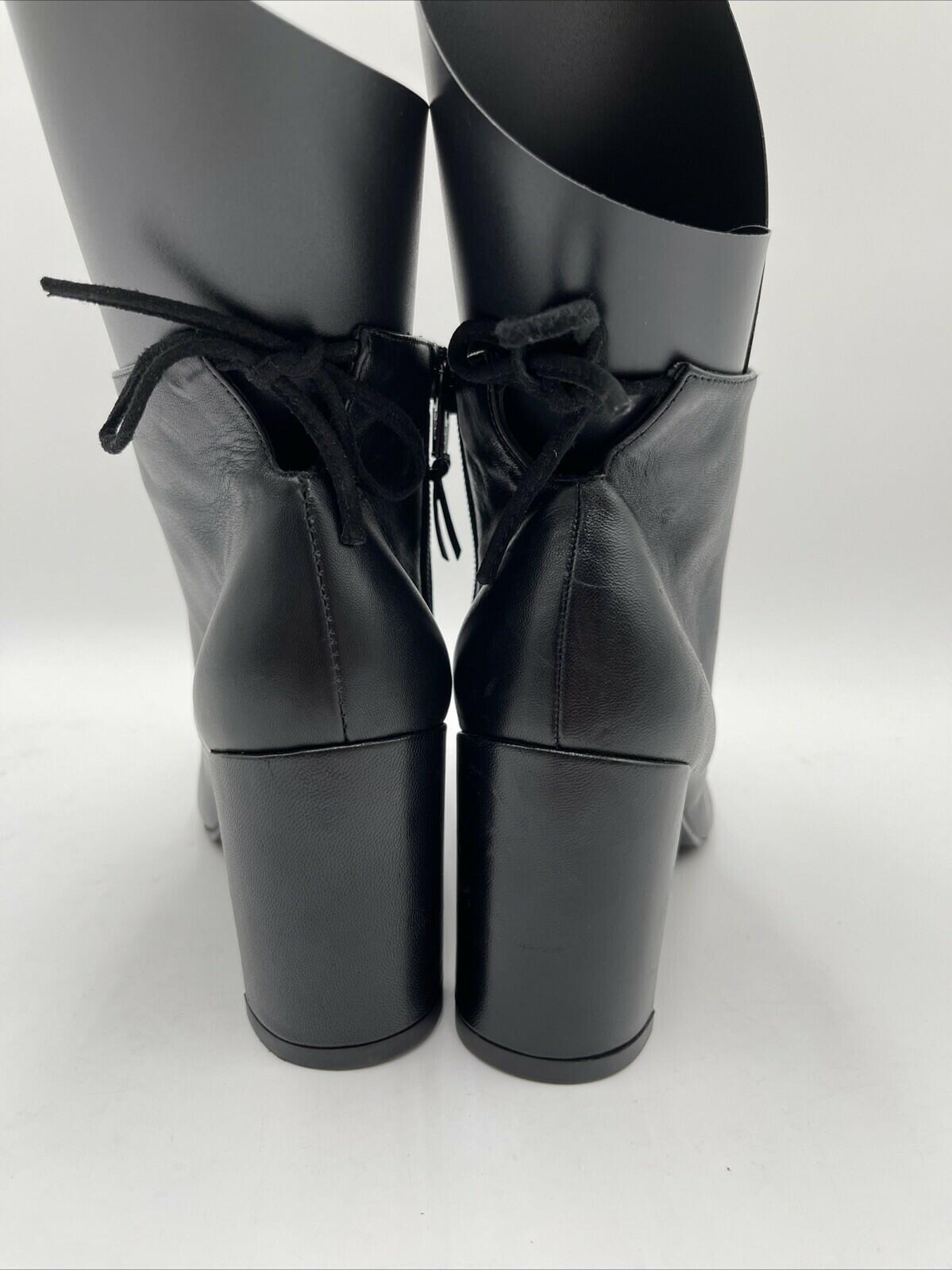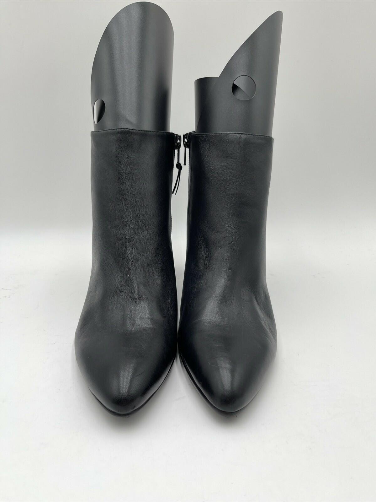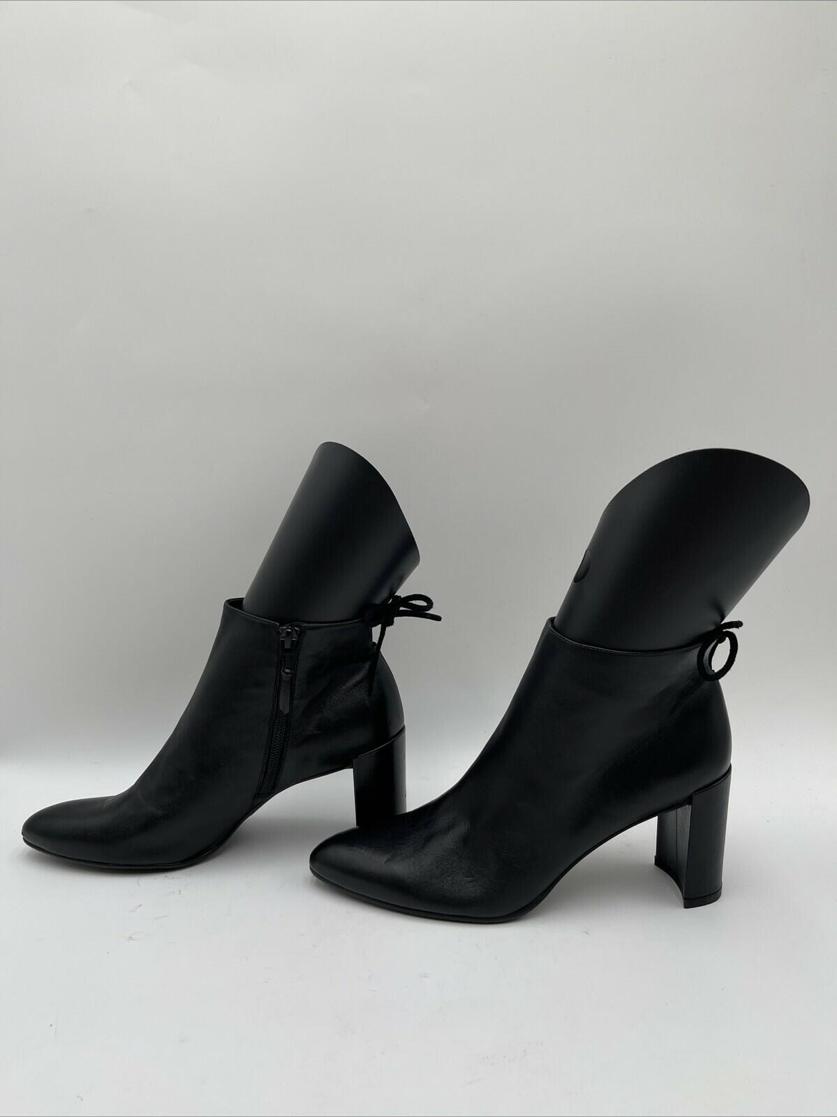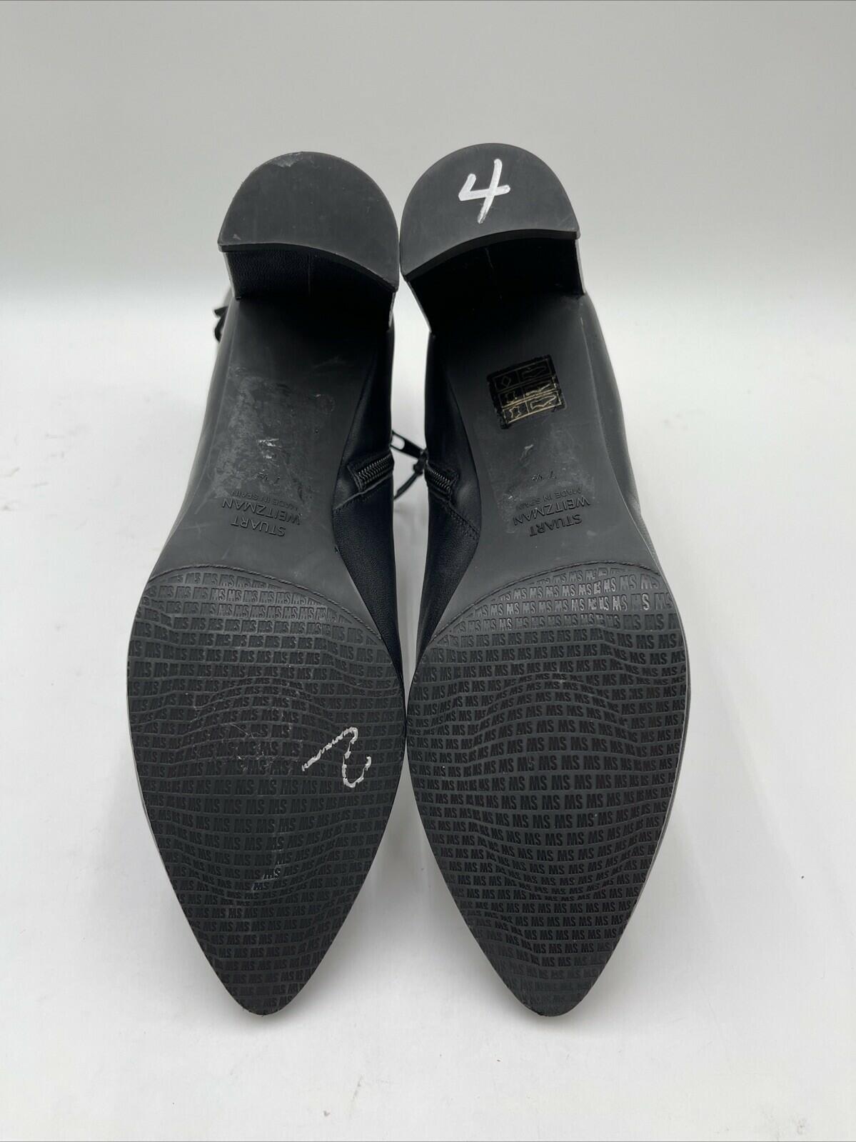 Stuart Weitzman Black Leather Pointed Toe Side Zip Block Heel Ankle Boots 7.5 - Very Good