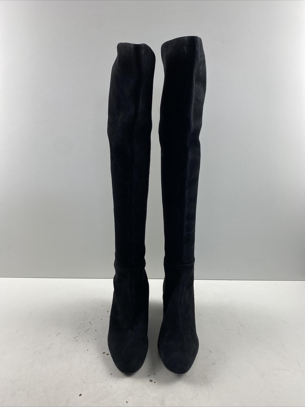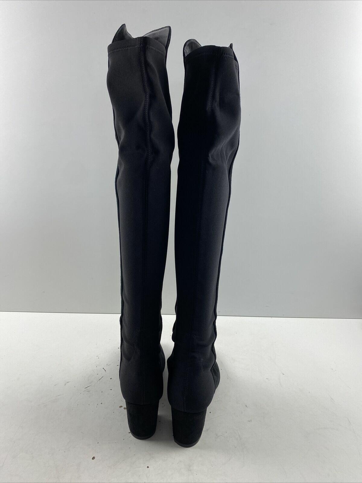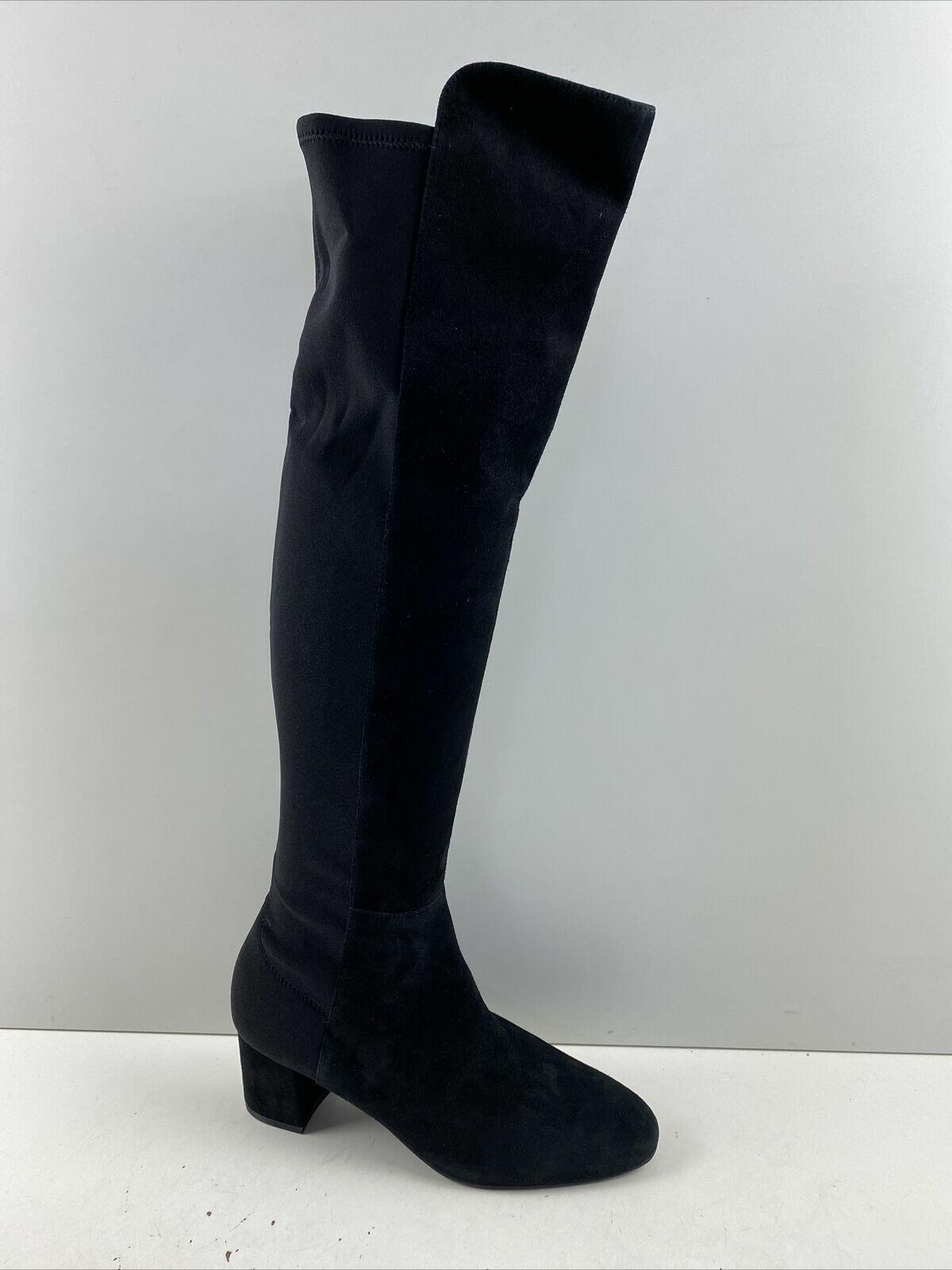 Stuart Weitzman Black Suede/Fabric Pull On Block Heel Knee High Boots Womens 8.5 - Very Good