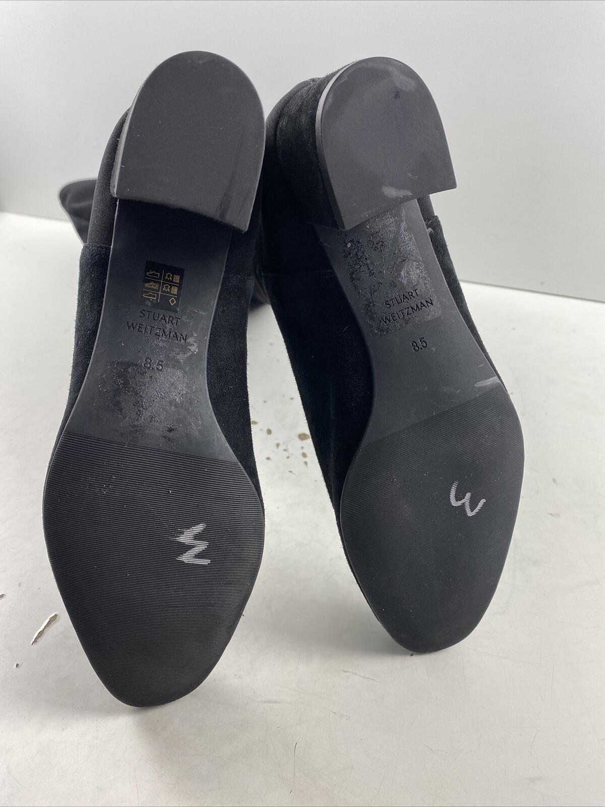 Stuart Weitzman Black Suede/Fabric Pull On Block Heel Knee High Boots Womens 8.5The boots are in good condition