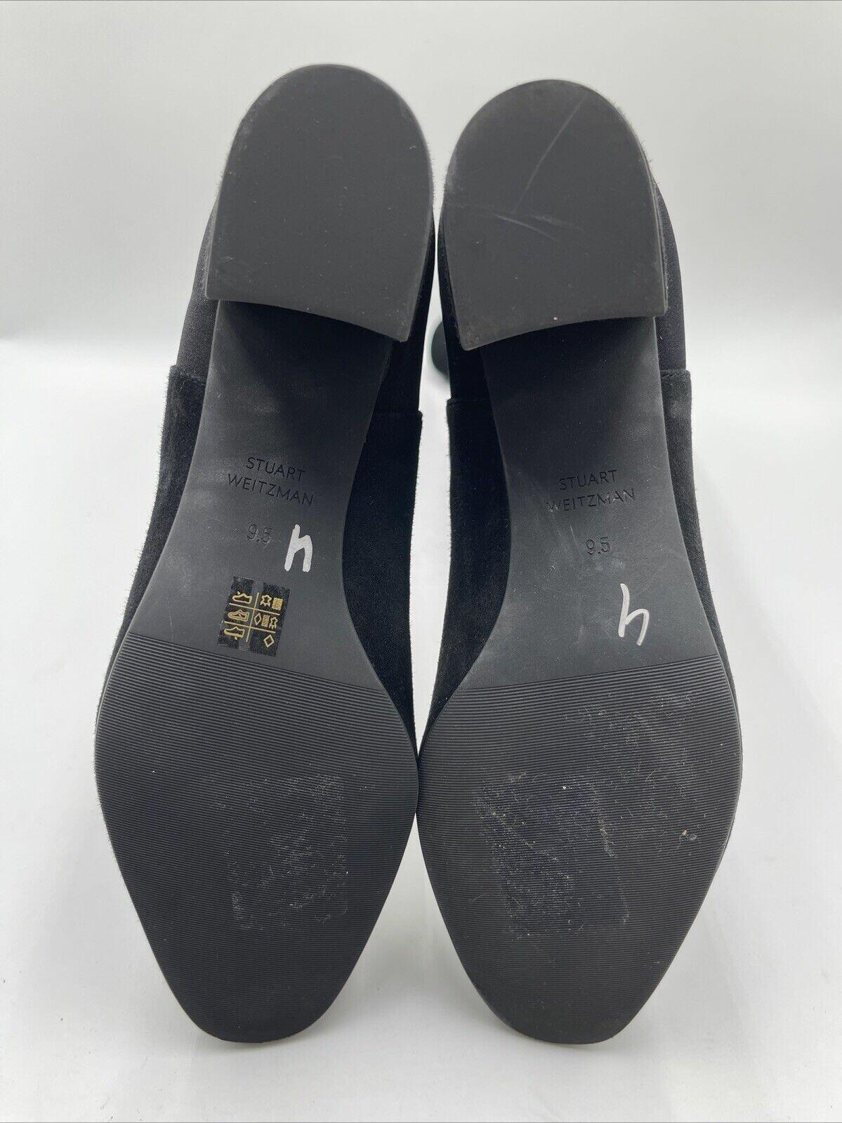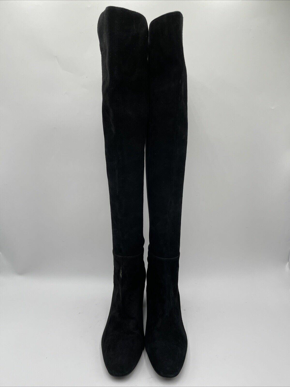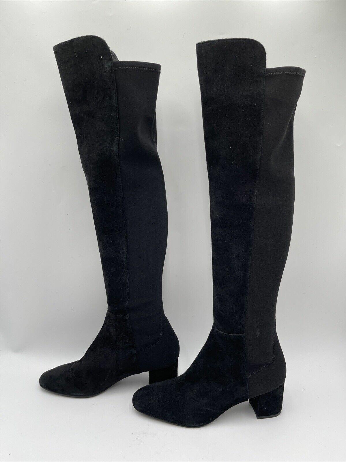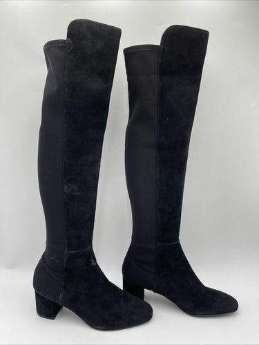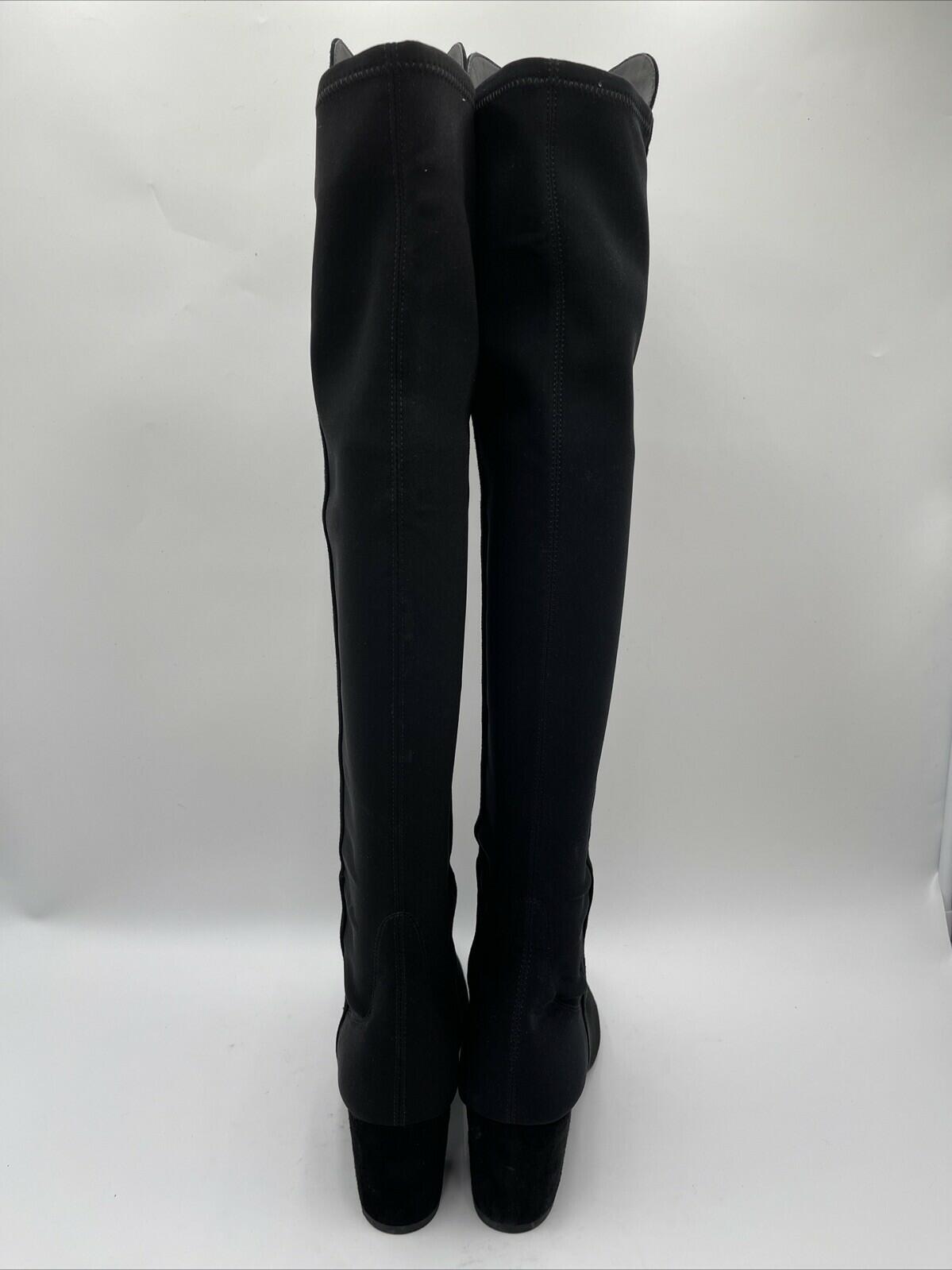 Stuart Weitzman Black Suede/Fabric Pull On Block Heel Knee High Boots Womens 9.5 - Very Good