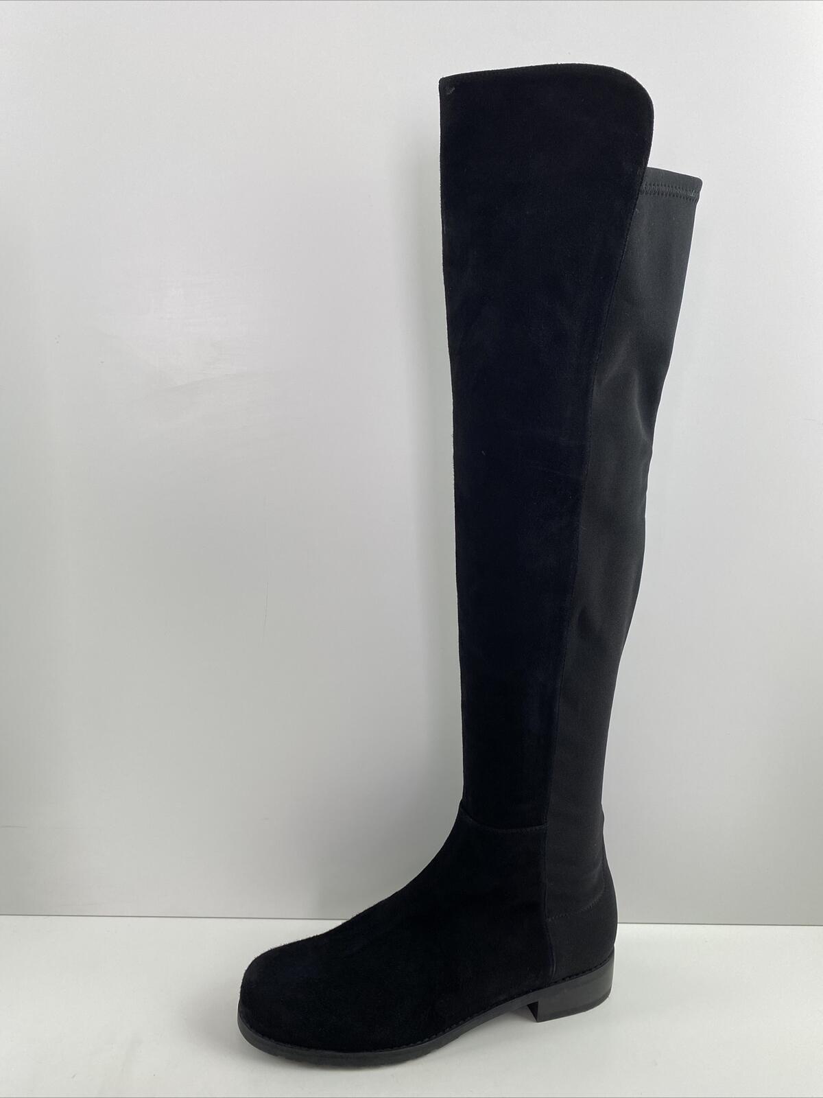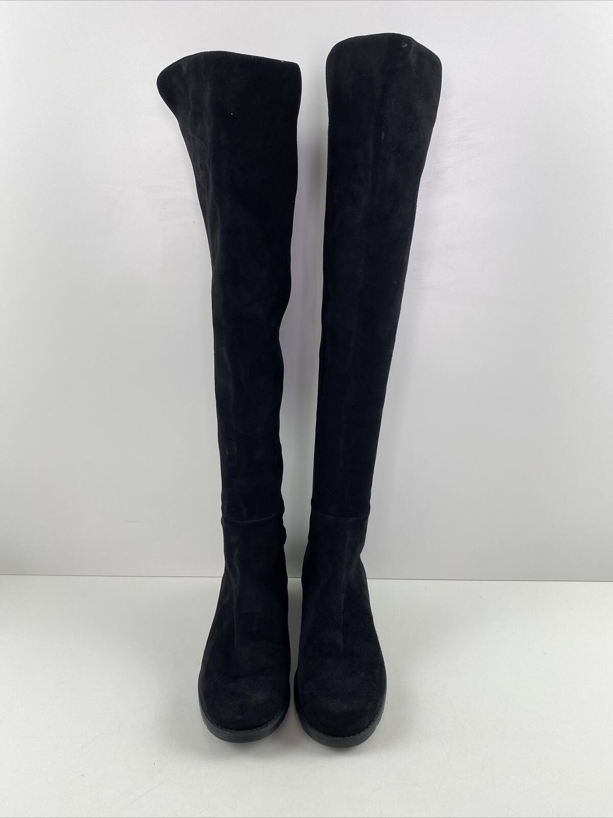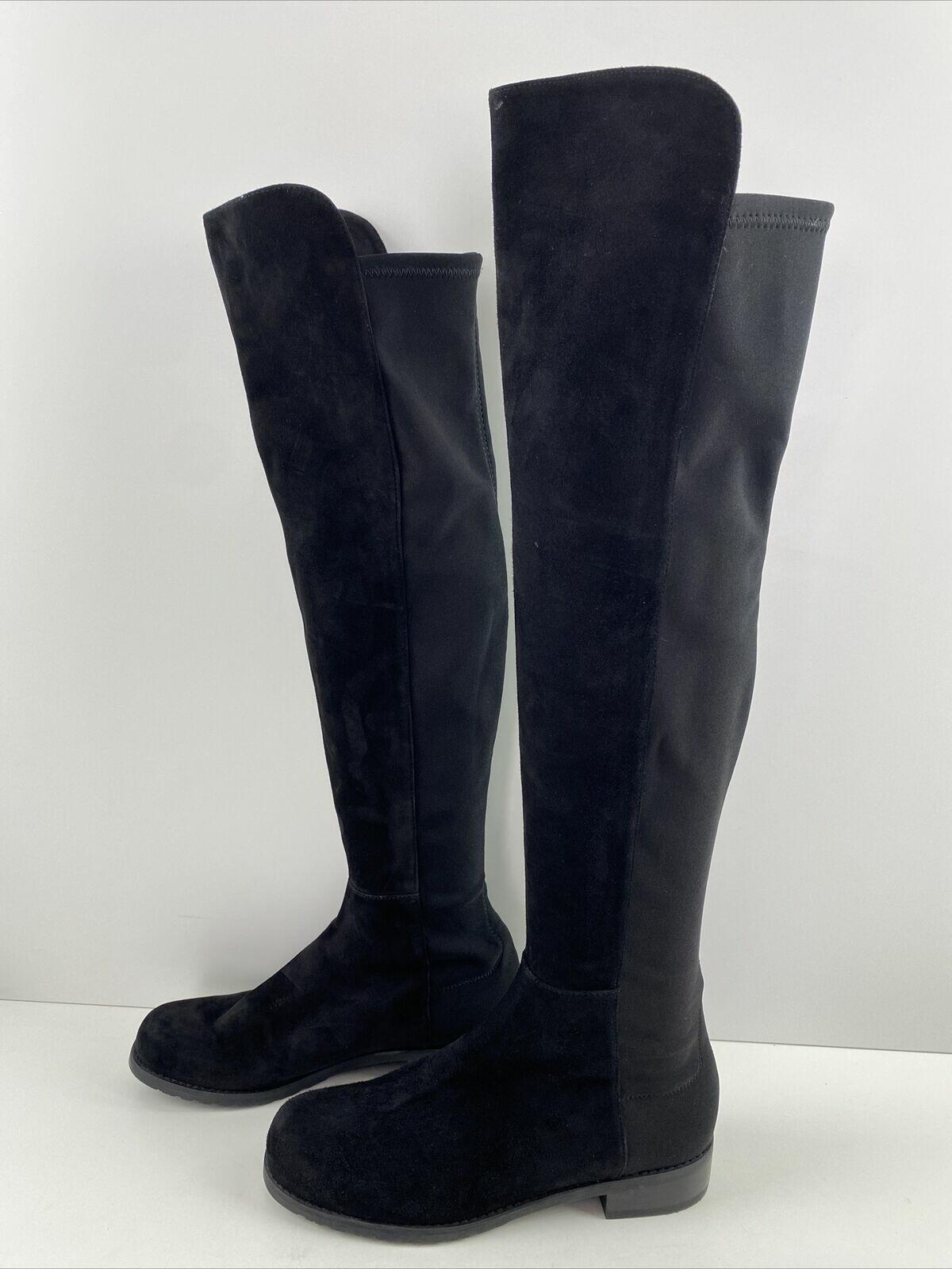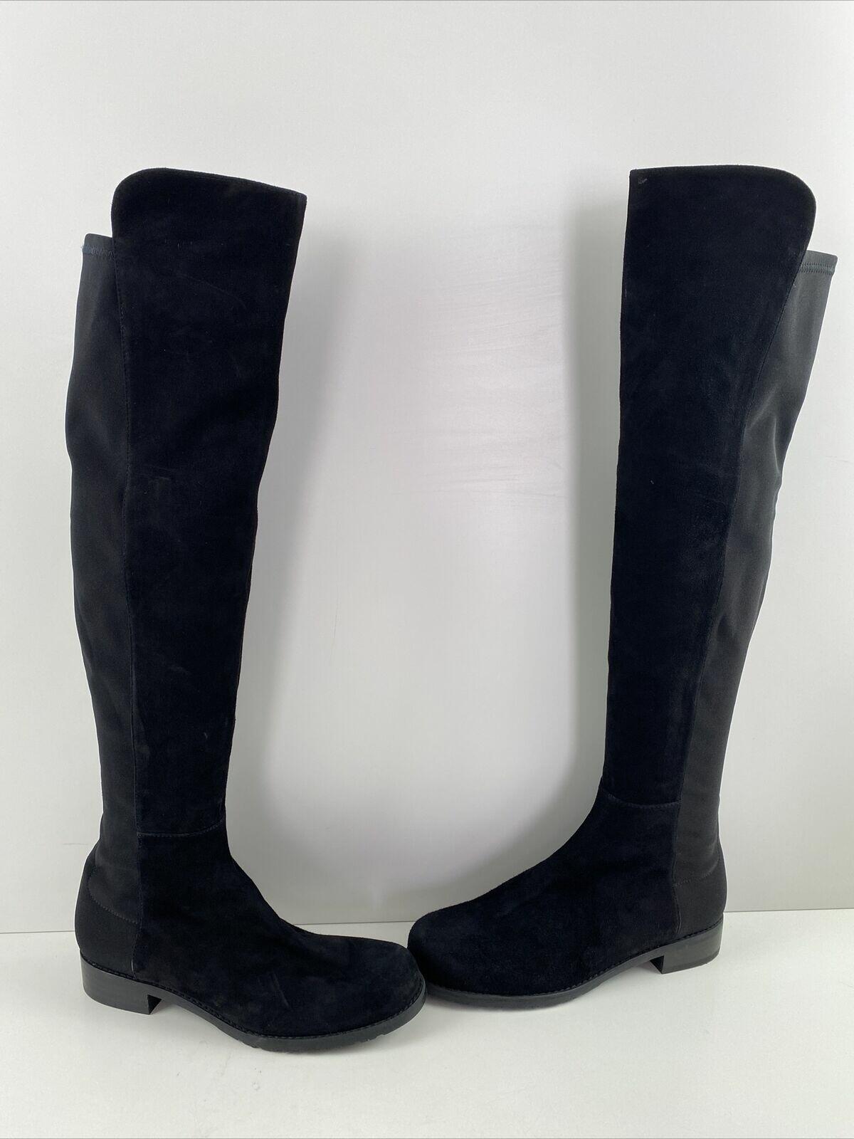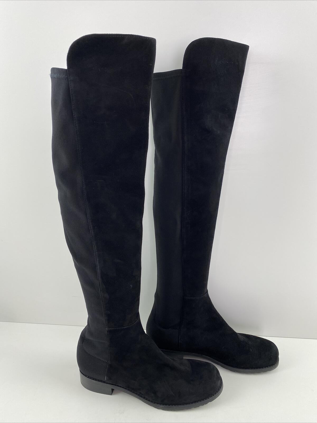 Stuart Weitzman Black Suede/Fabric Pull On Knee High Boots Women’s Size 6.5 M
