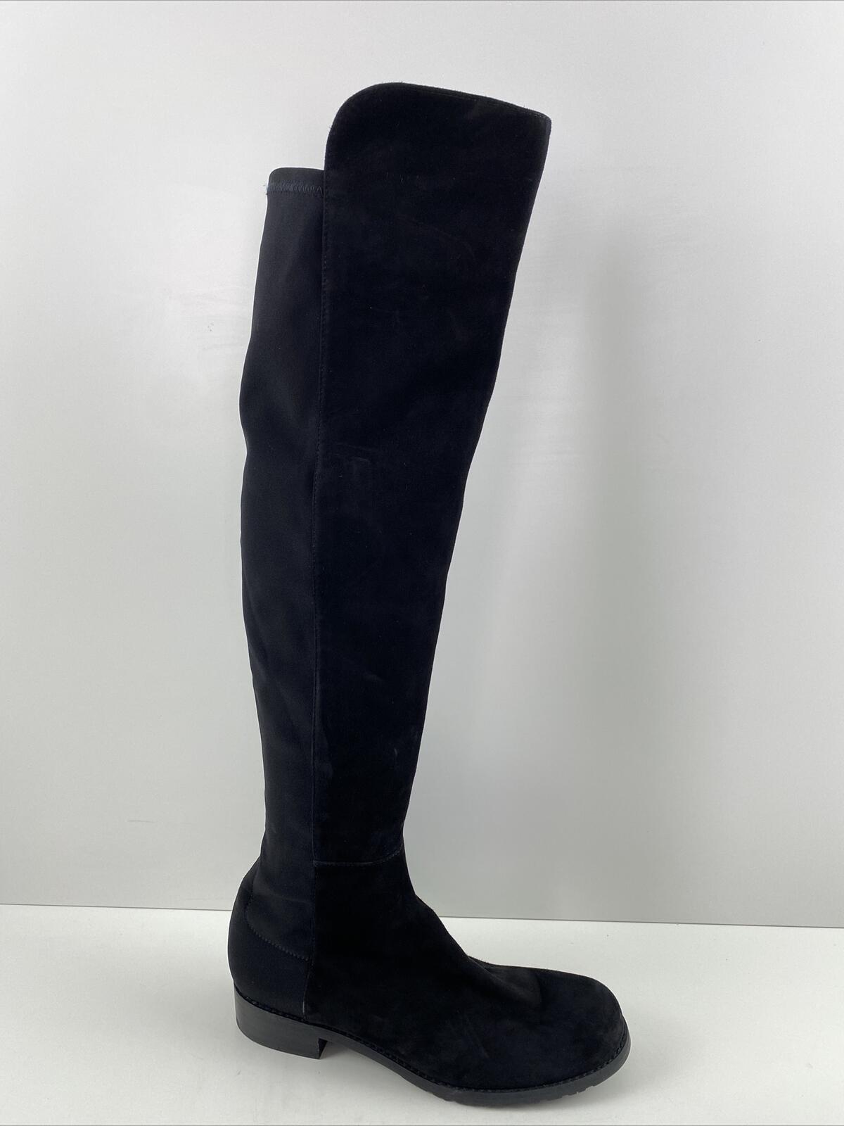 Stuart Weitzman Black Suede/Fabric Pull On Knee High Boots Womens Size 6.5 MThe boots are in good condition