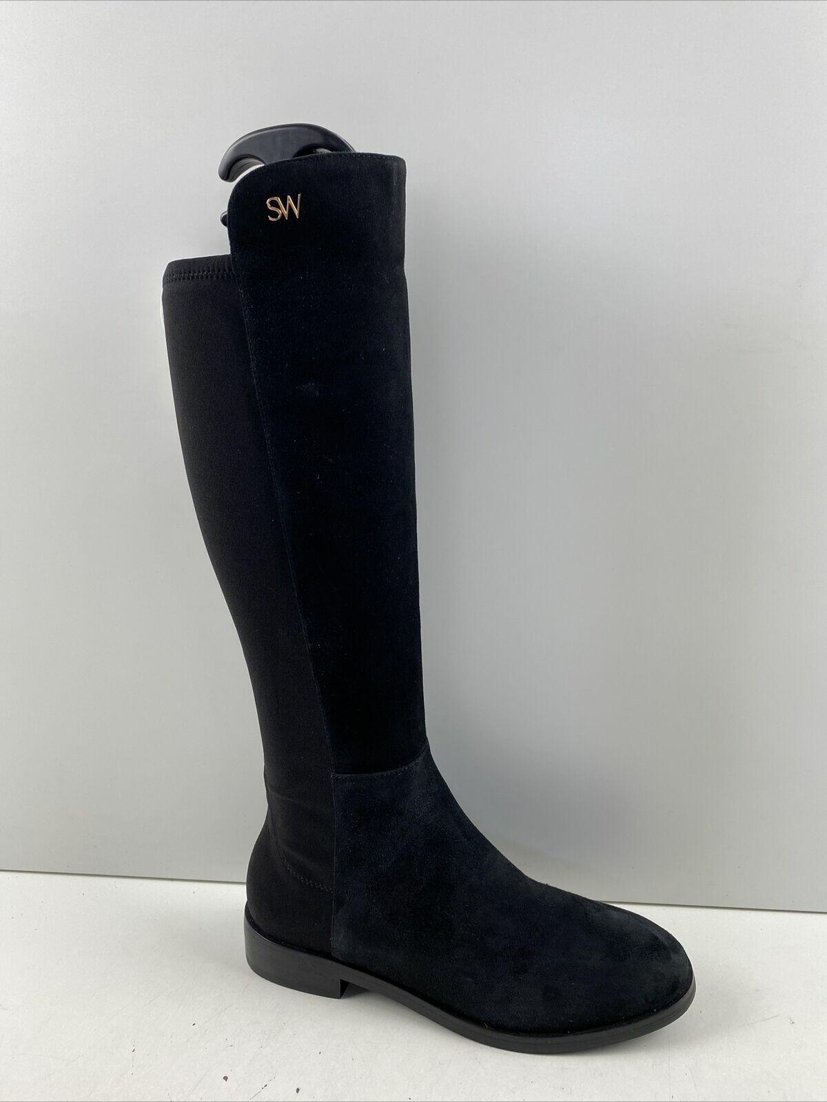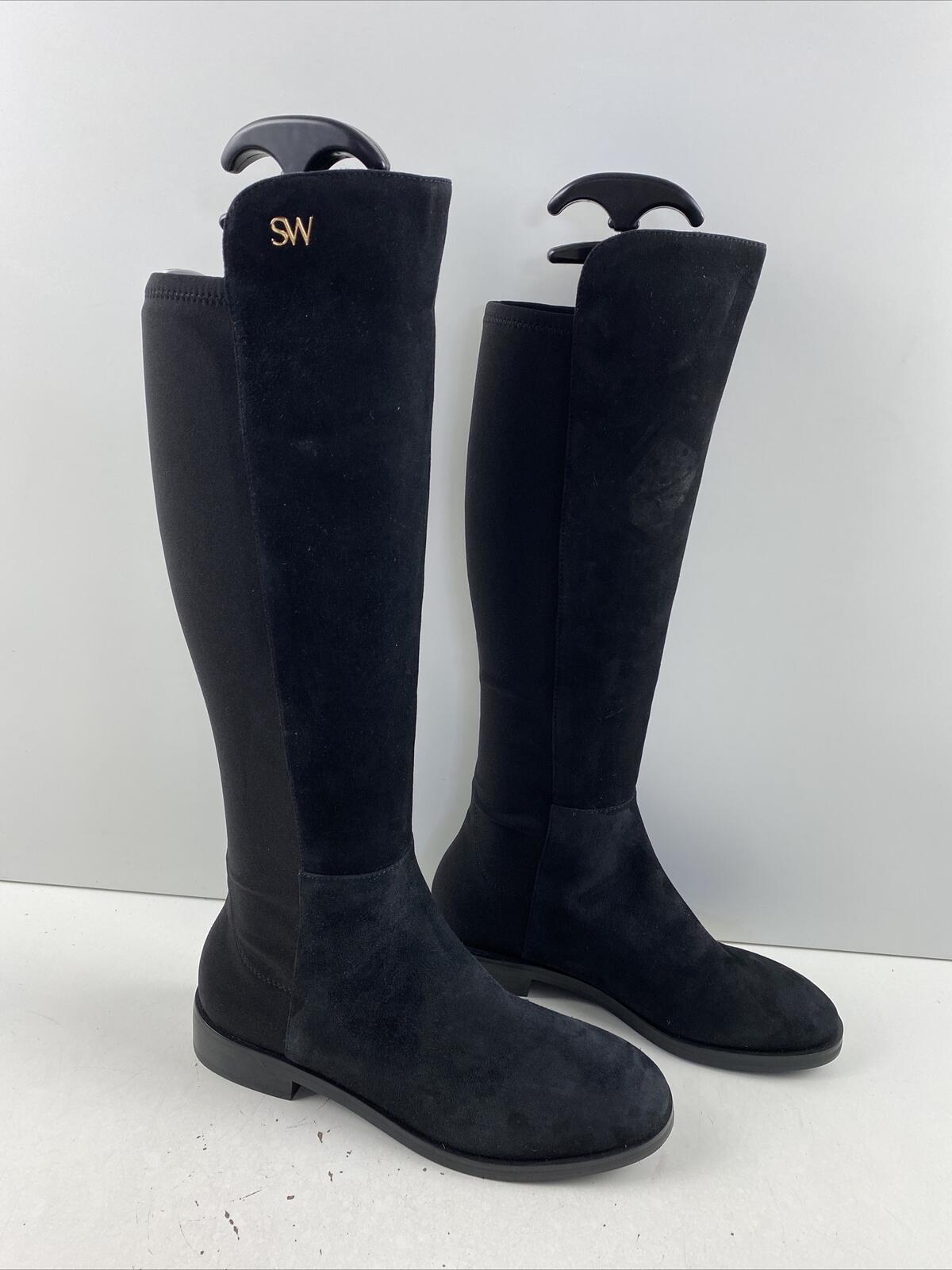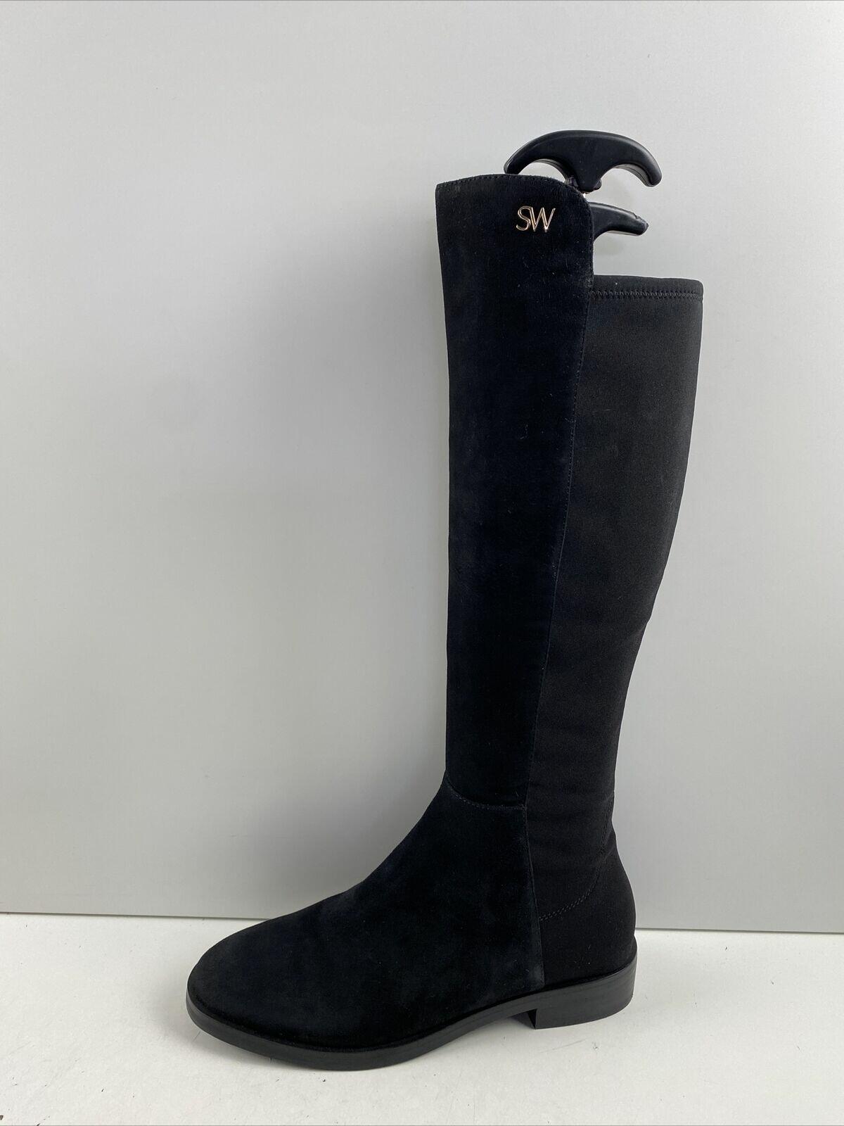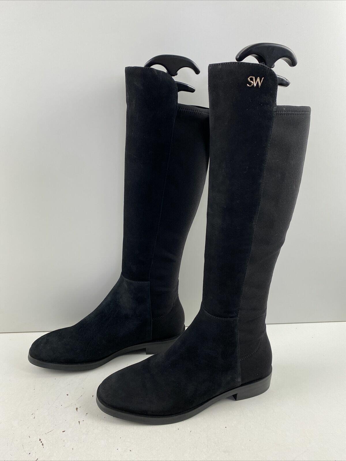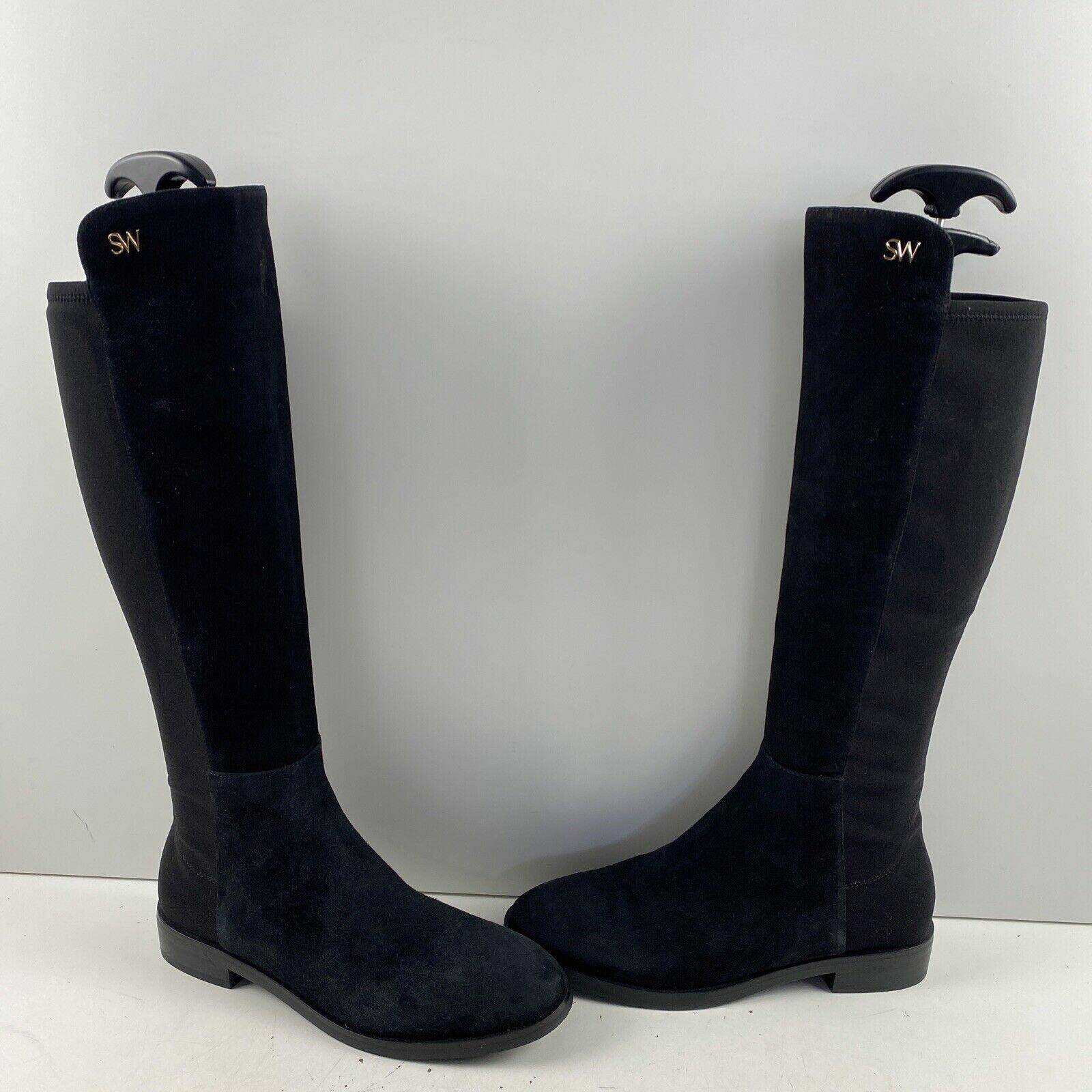 Stuart Weitzman Black Suede/Fabric Pull On Knee High Boots Womens Size 6 BThe boots are in good condition