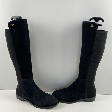 Stuart Weitzman Black Suede/Fabric Pull On Knee High Boots Women’s Size 6 B